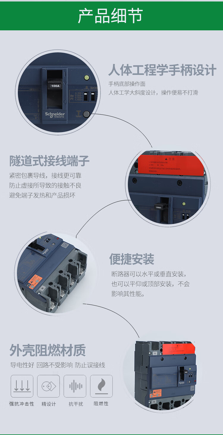 Schneider plastic case leakage 4P100A80A125A160A250A circuit breaker 100A 4p