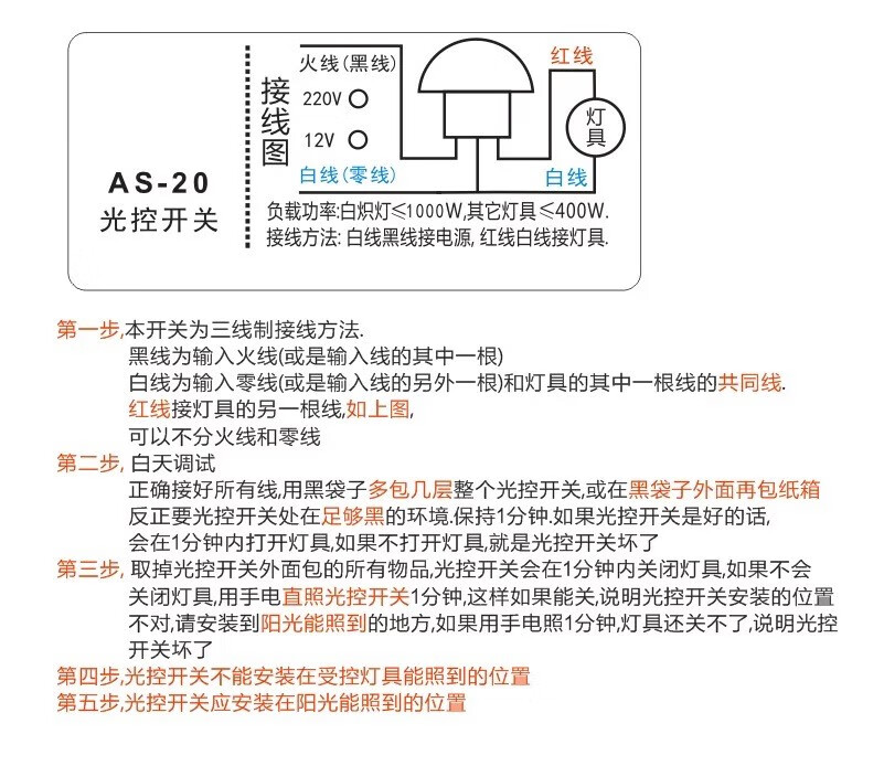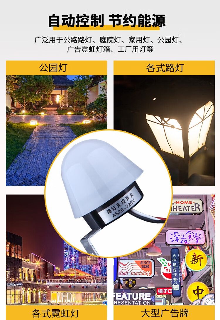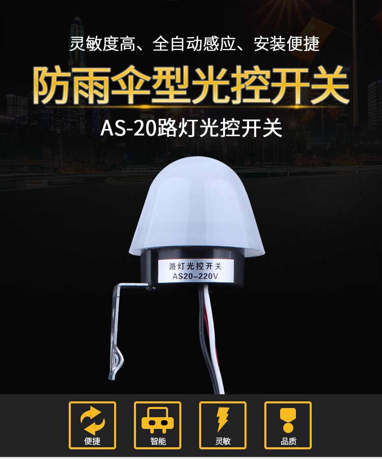 Suitable for street light control switch 220V rain-proof AS-20 adjustable light sensitivity in the dark automatic bright light sensitive light controller 12V AS23 (25A/220V) adjustable light sensitivity