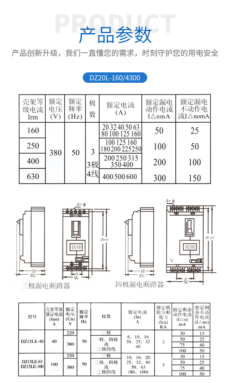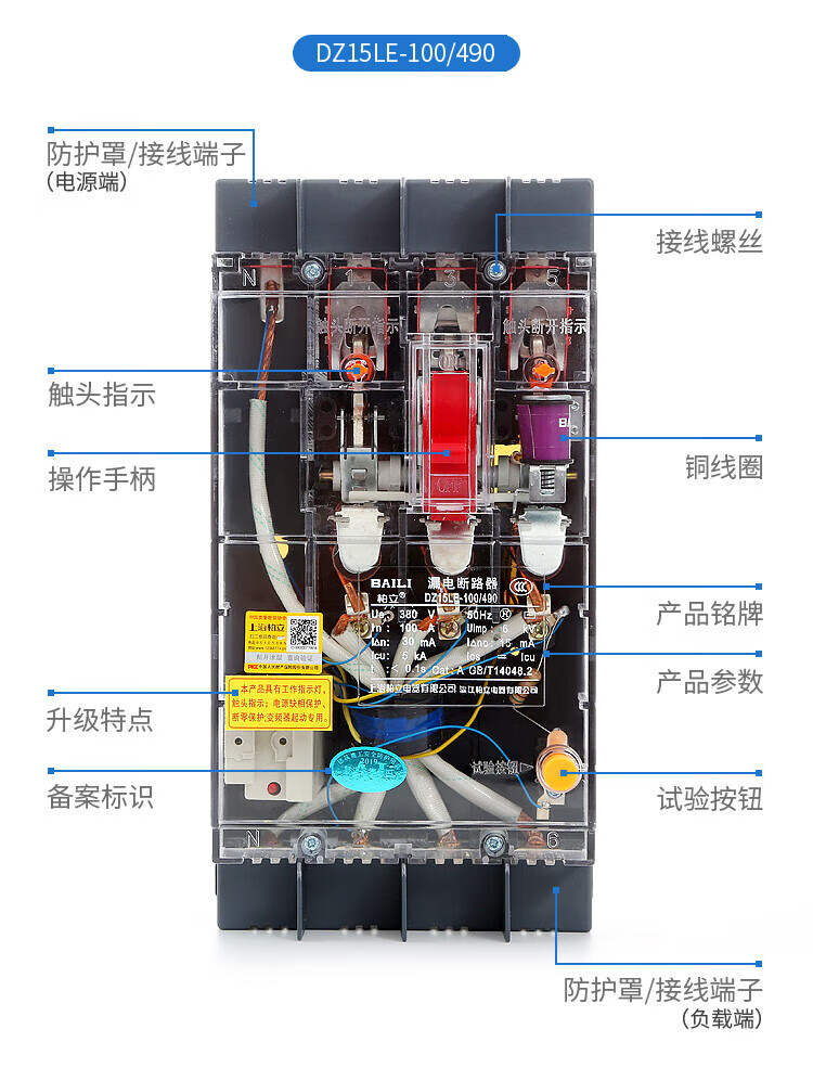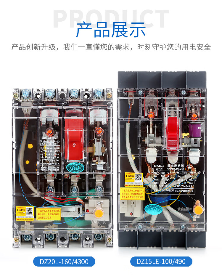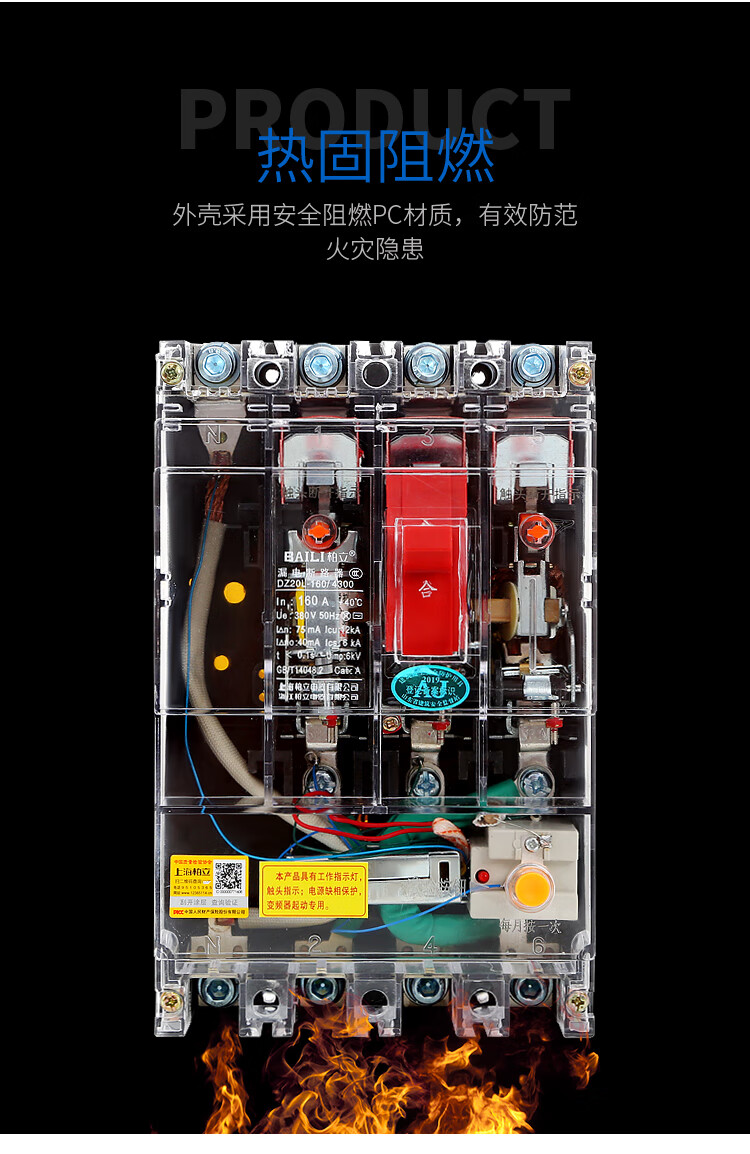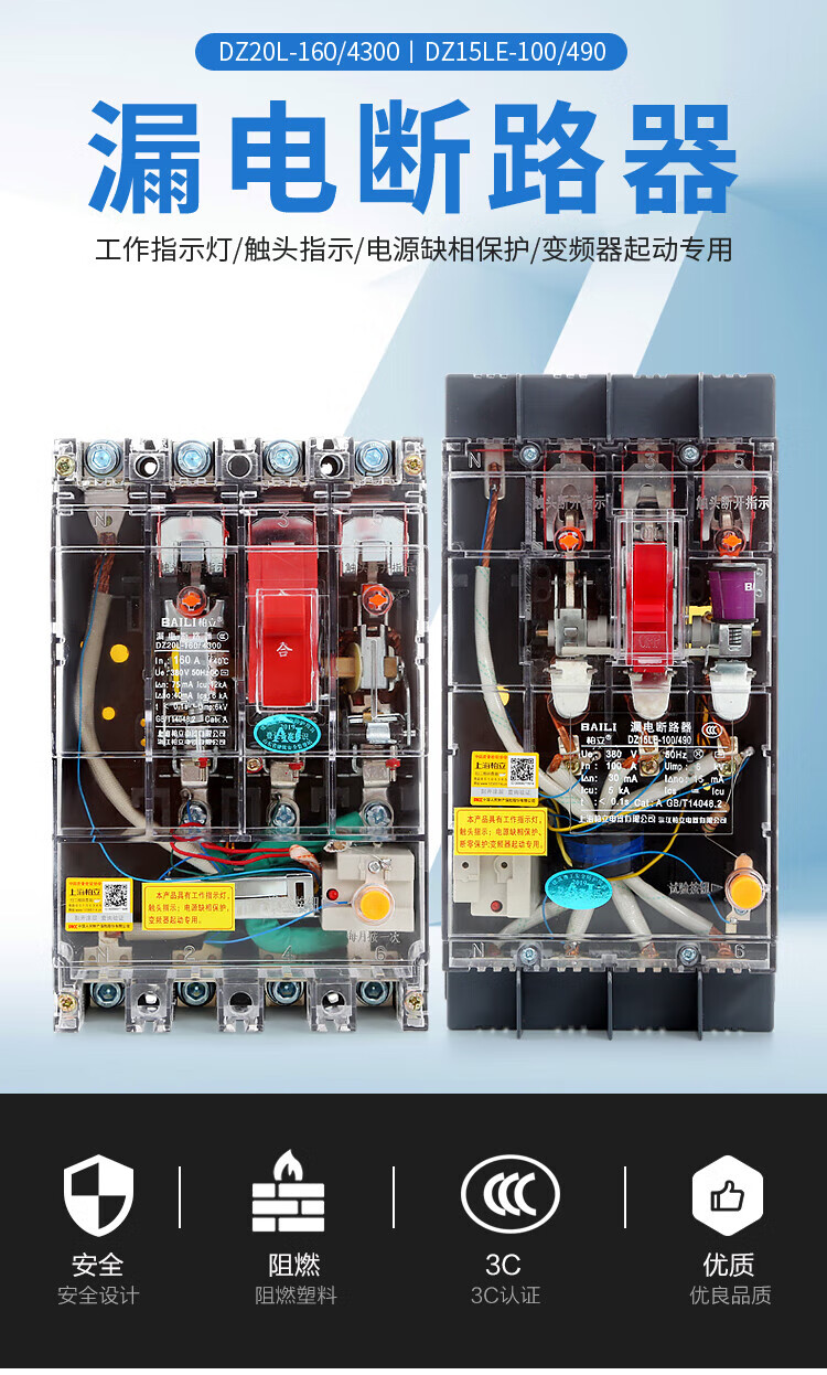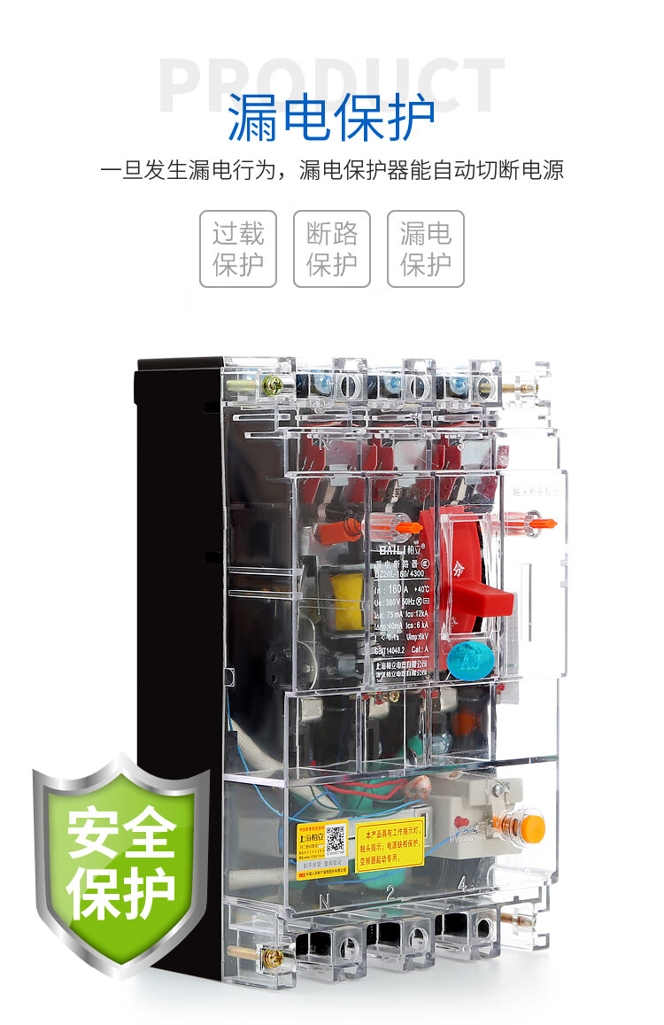 Transparent leakage circuit breaker DZ20LE160A250A400A630A tower crane anti-interference variable frequency leakage protector 315A 3P+N