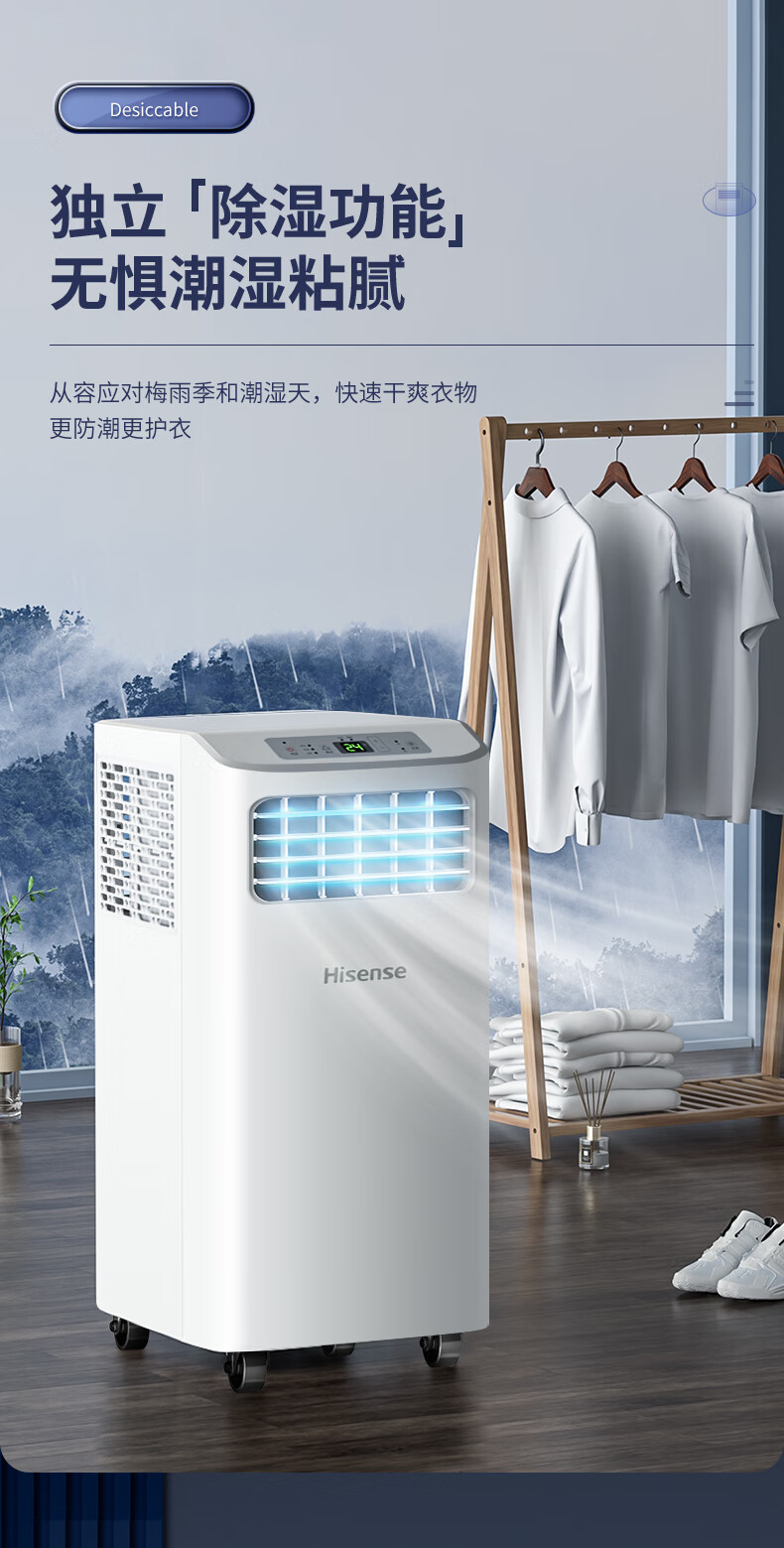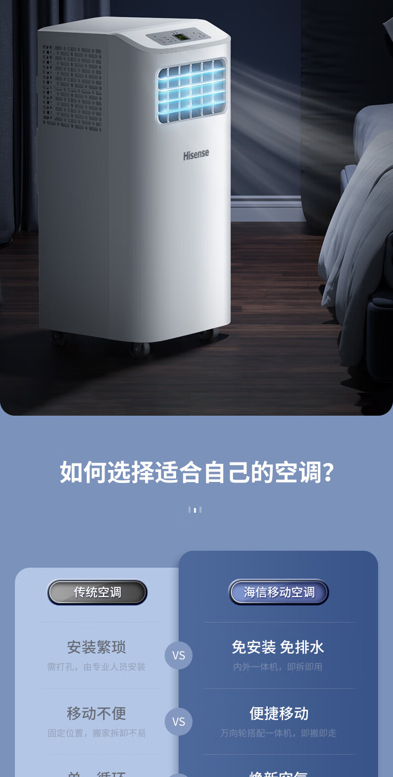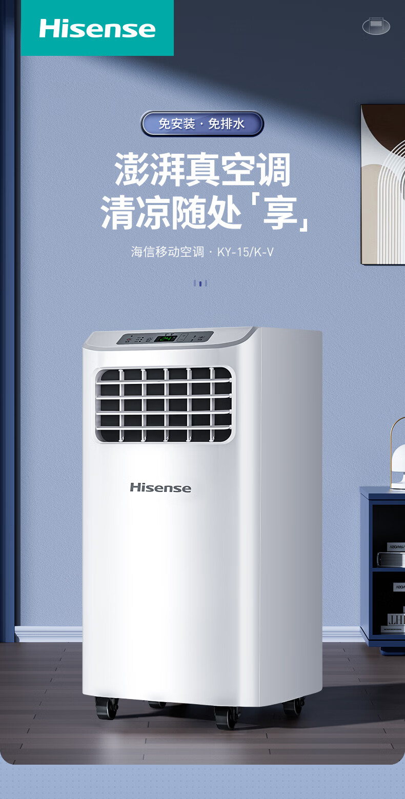 Hisense movable air conditioner single cooling Home kitchen convenient small outdoor unit no installation and no drainage living room bedroom air conditioner all-in-one intelligent remote control vertical small air conditioner 1.5 HP single cooling powerful cooling