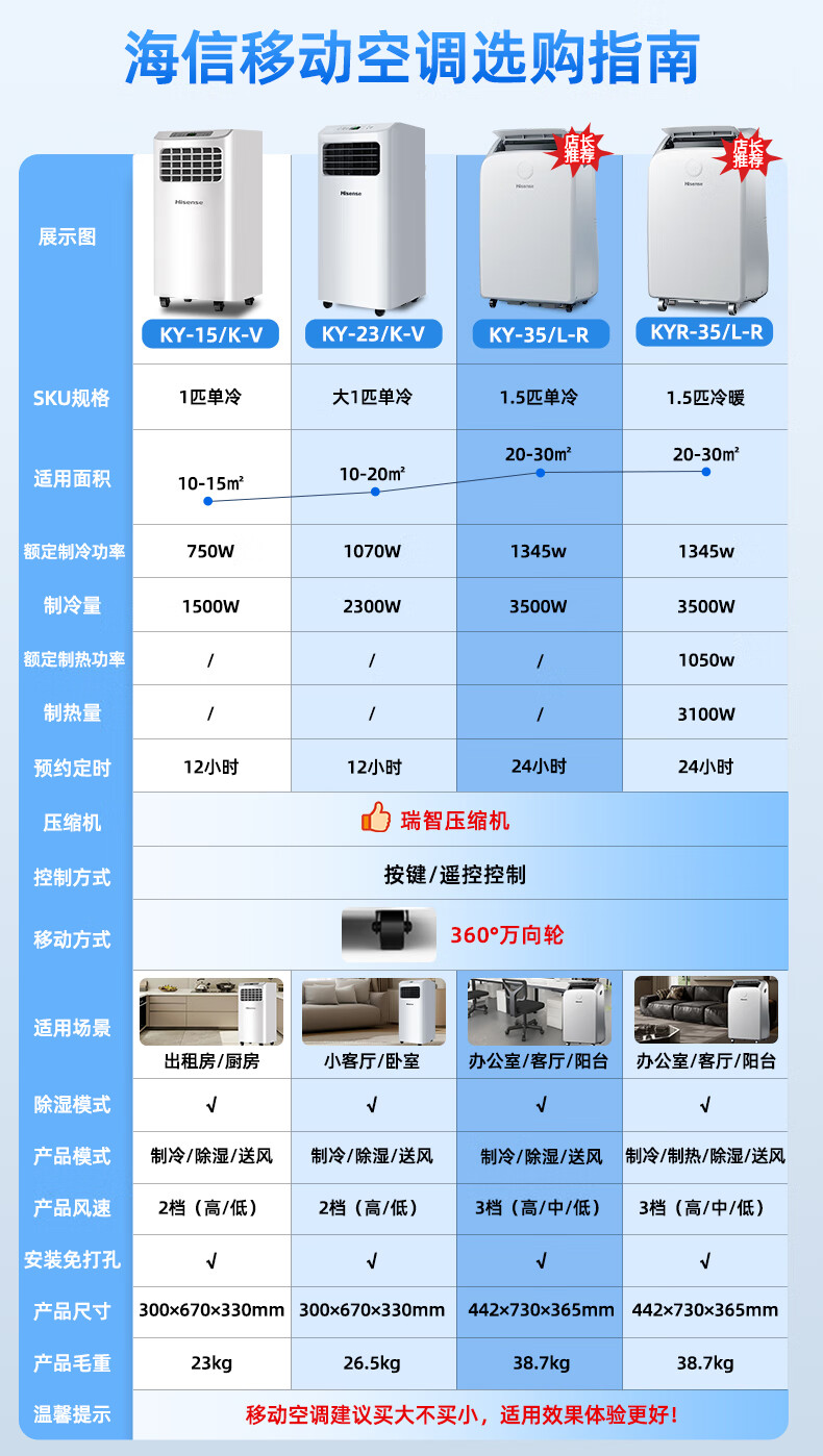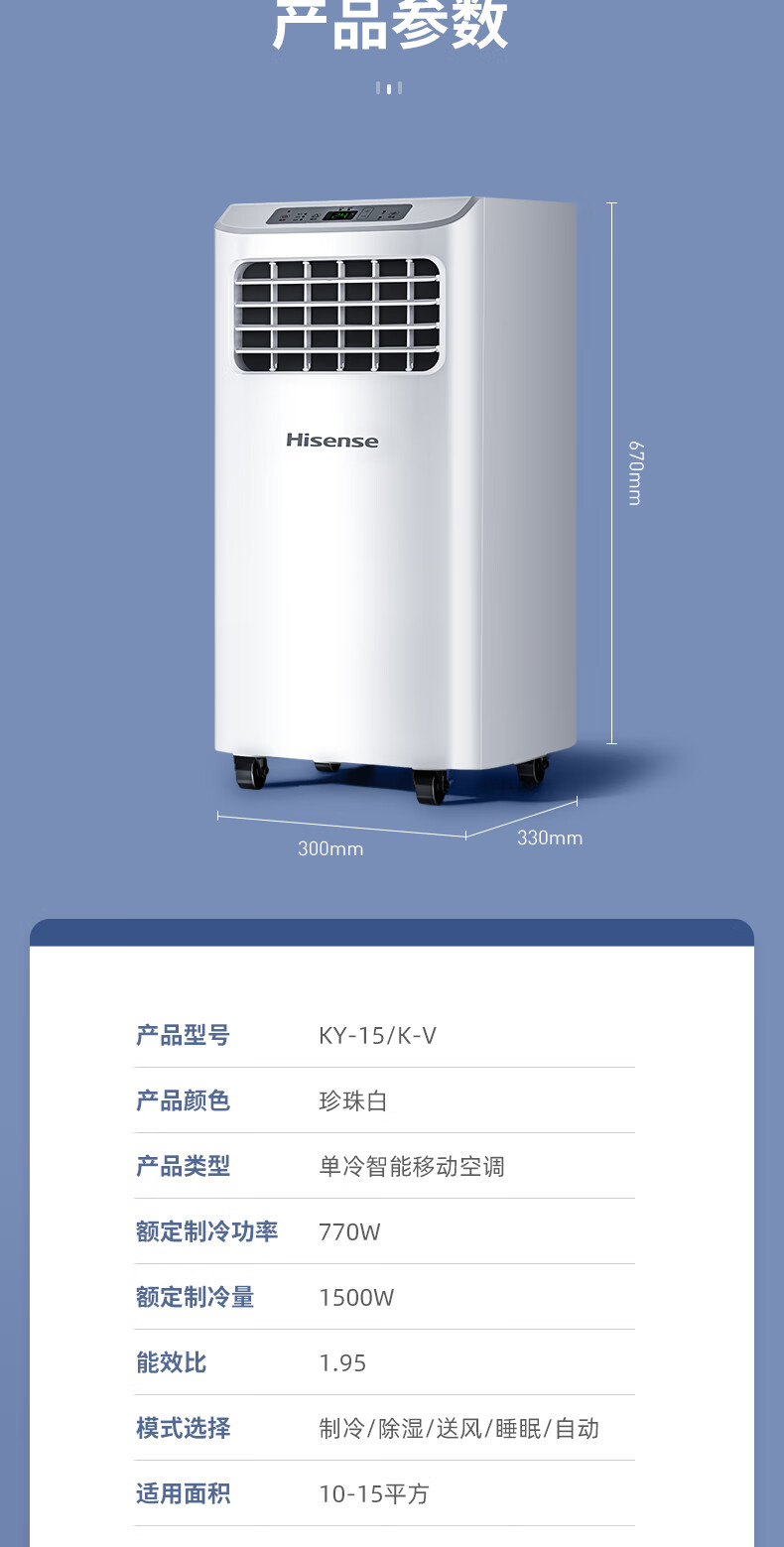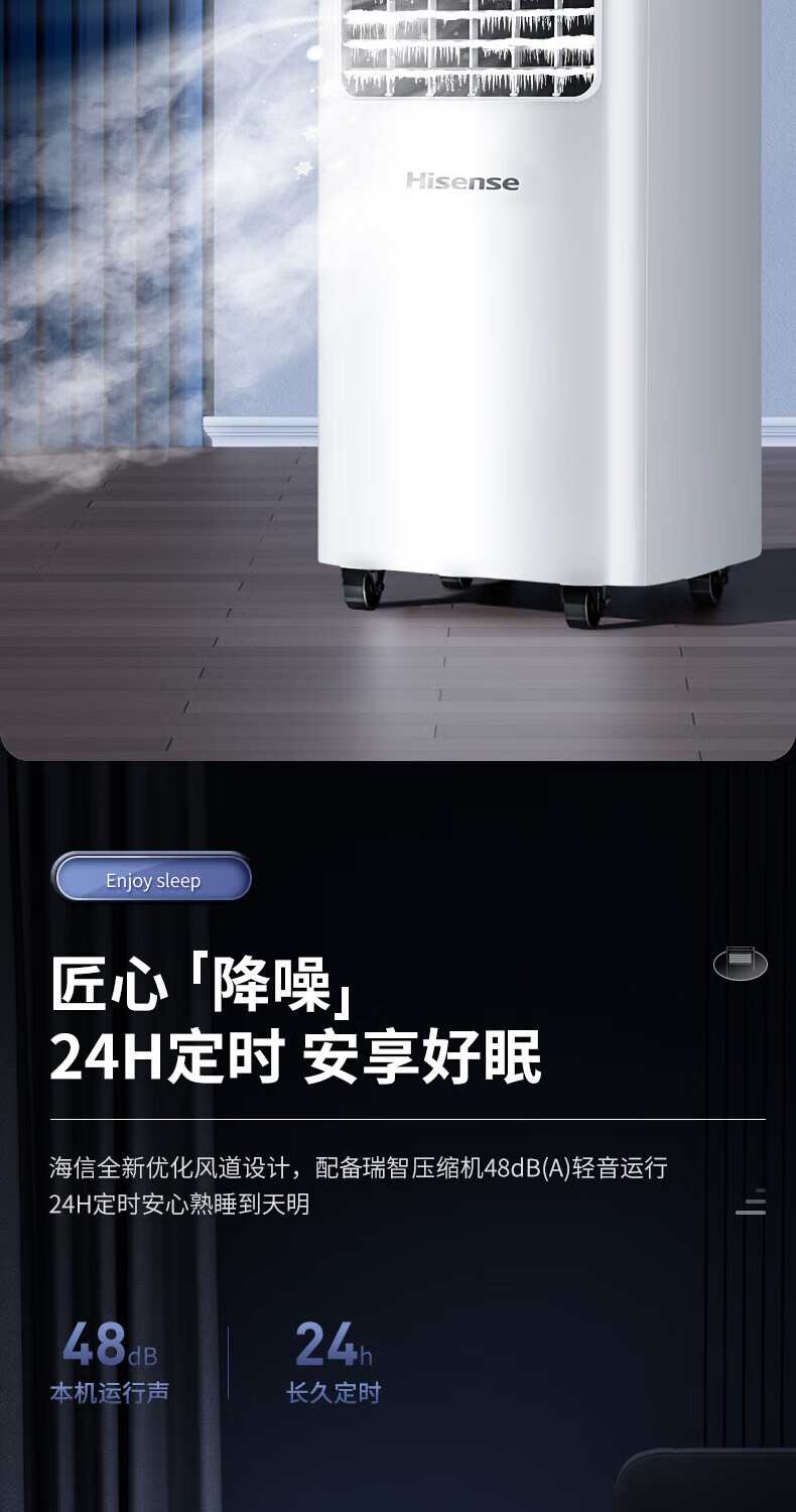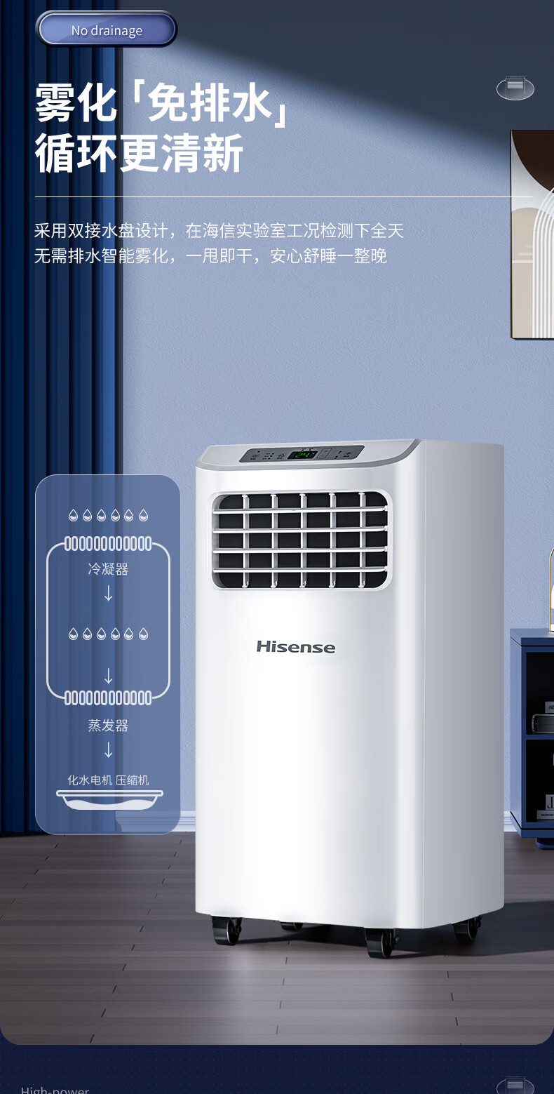 Hisense movable air conditioner single cooling Home kitchen convenient small outdoor unit no installation and no drainage living room bedroom air conditioner all-in-one intelligent remote control vertical small air conditioner 1.5 HP single cooling powerful cooling