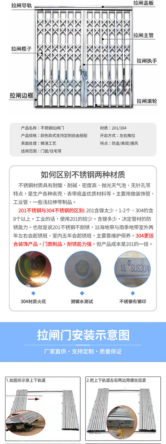 Vinoa 304 manual push and retract door, stainless steel sliding door, folding door, sliding door, anti-theft net, balcony protection, 304 stainless steel sliding door, customized according to door size, consult customer service for customization