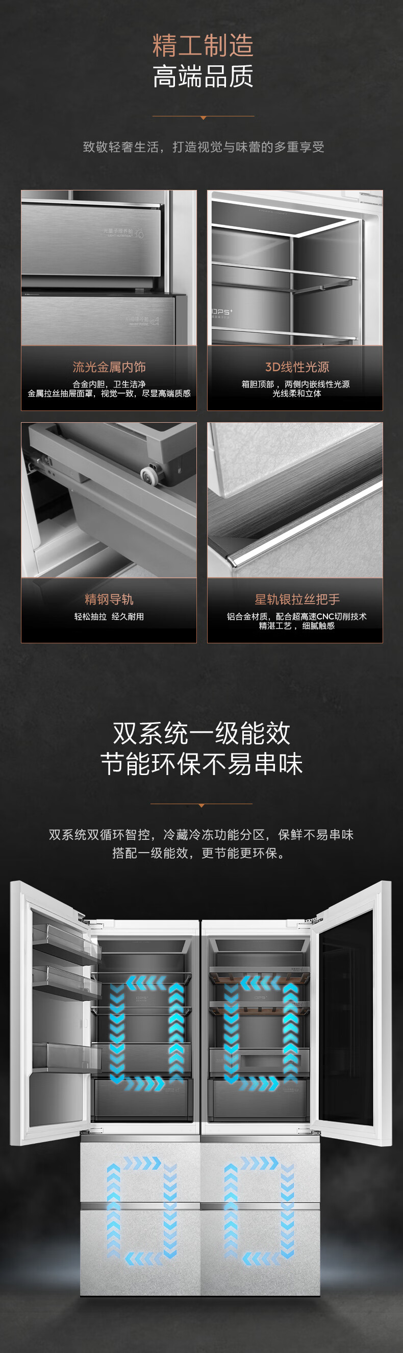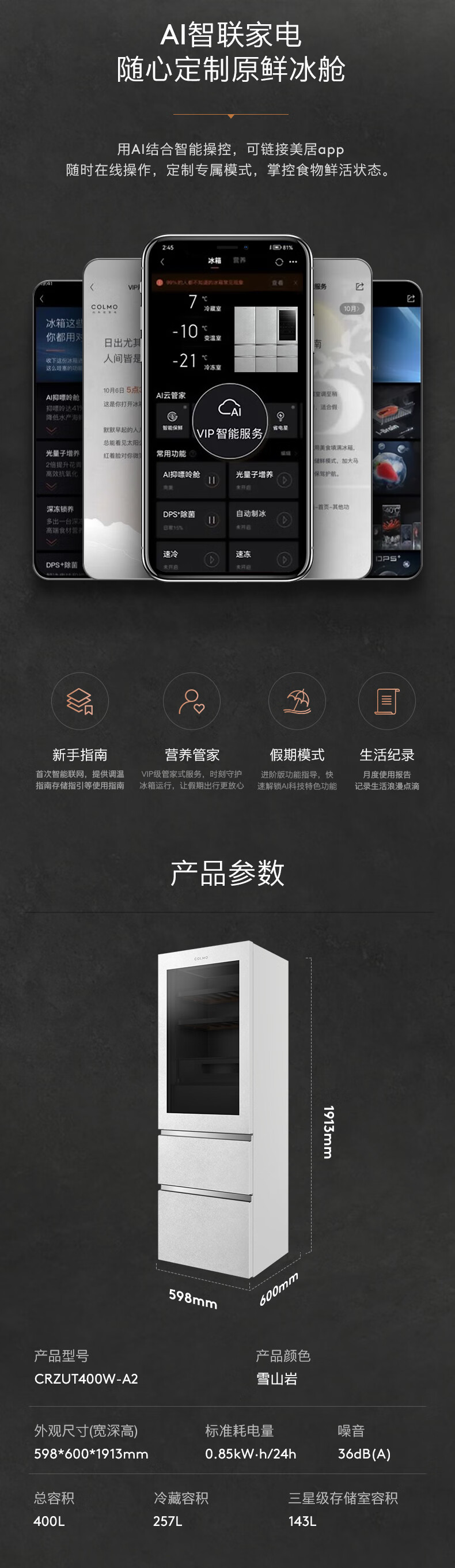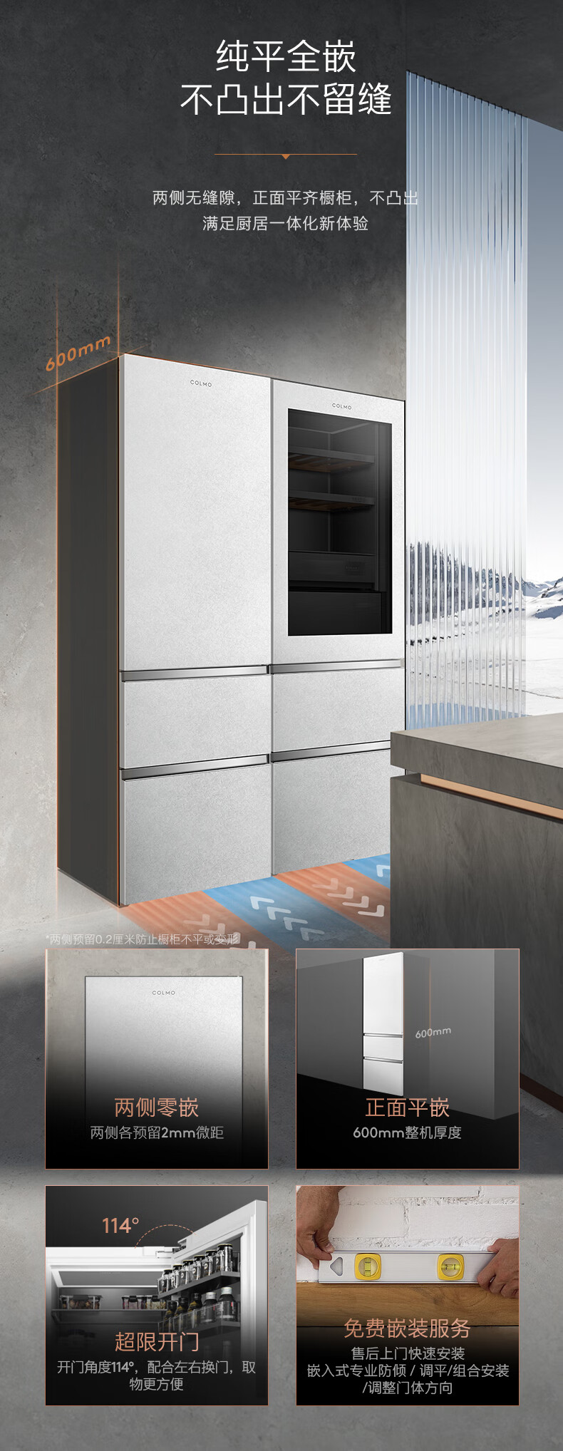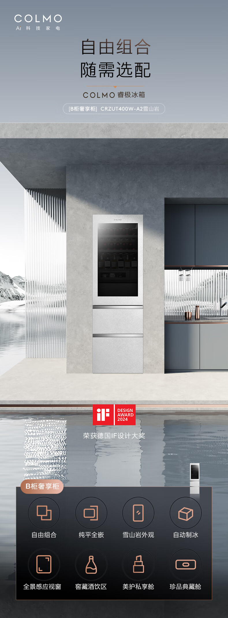 COLMO Ruiji Rubik's Cube Refrigerator 400 liters household variable frequency air-cooled frost-free 0cm ultra-thin fully embedded multi-piece free combination embedded refrigerator wine cabinet automatic ice making machine Xueshanyan CRZUT400W-A2
