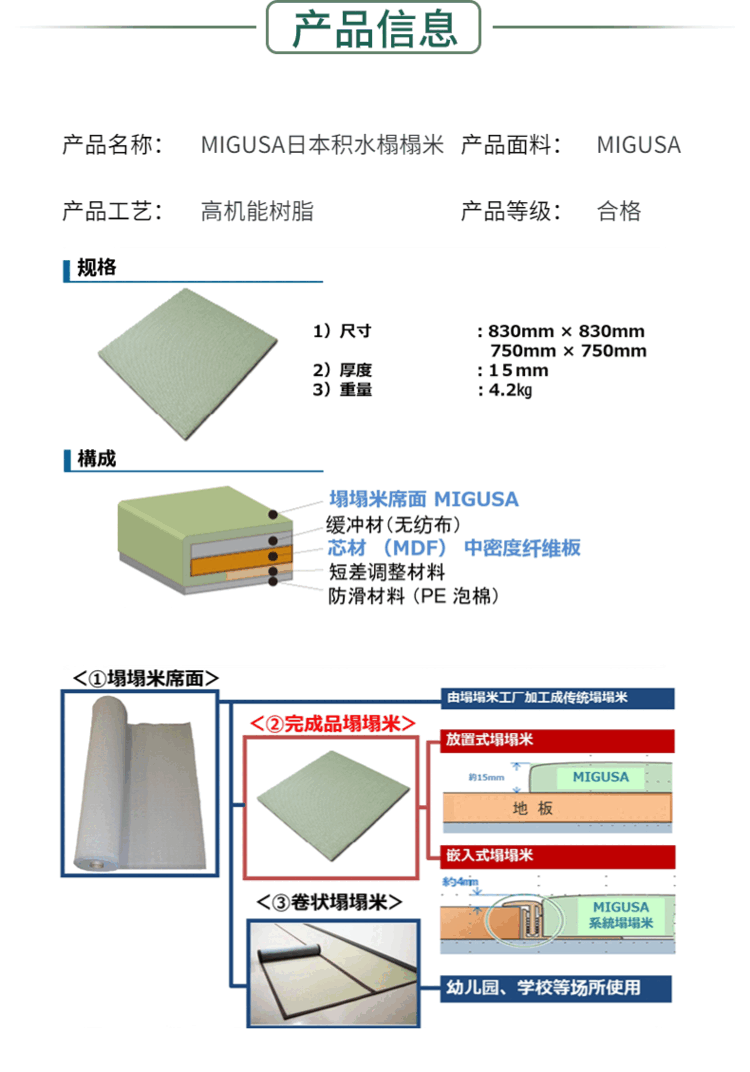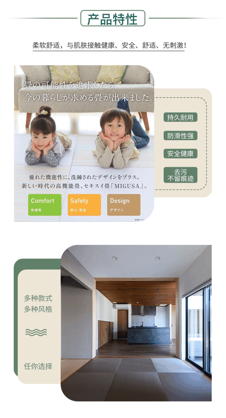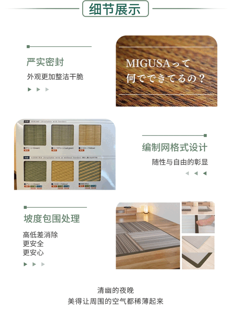 Sekisui Japanese beauty grass tatami original imported floor mat living room bedroom tea table waterproof mat antibacterial 83x83cm leaf green spot 83X83
