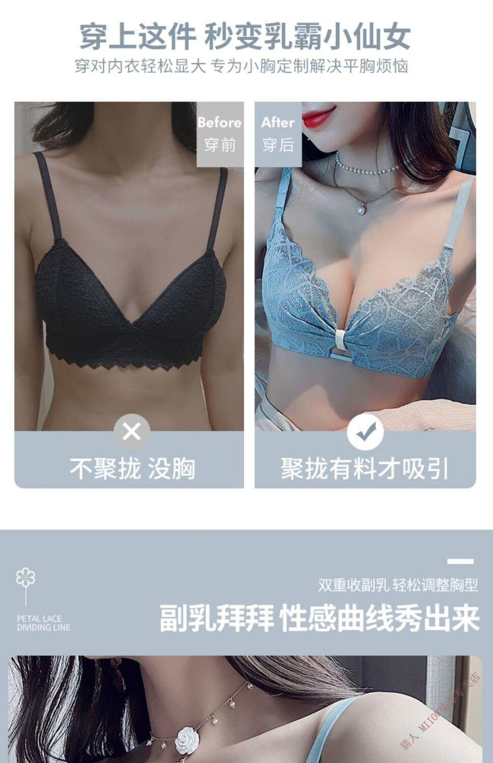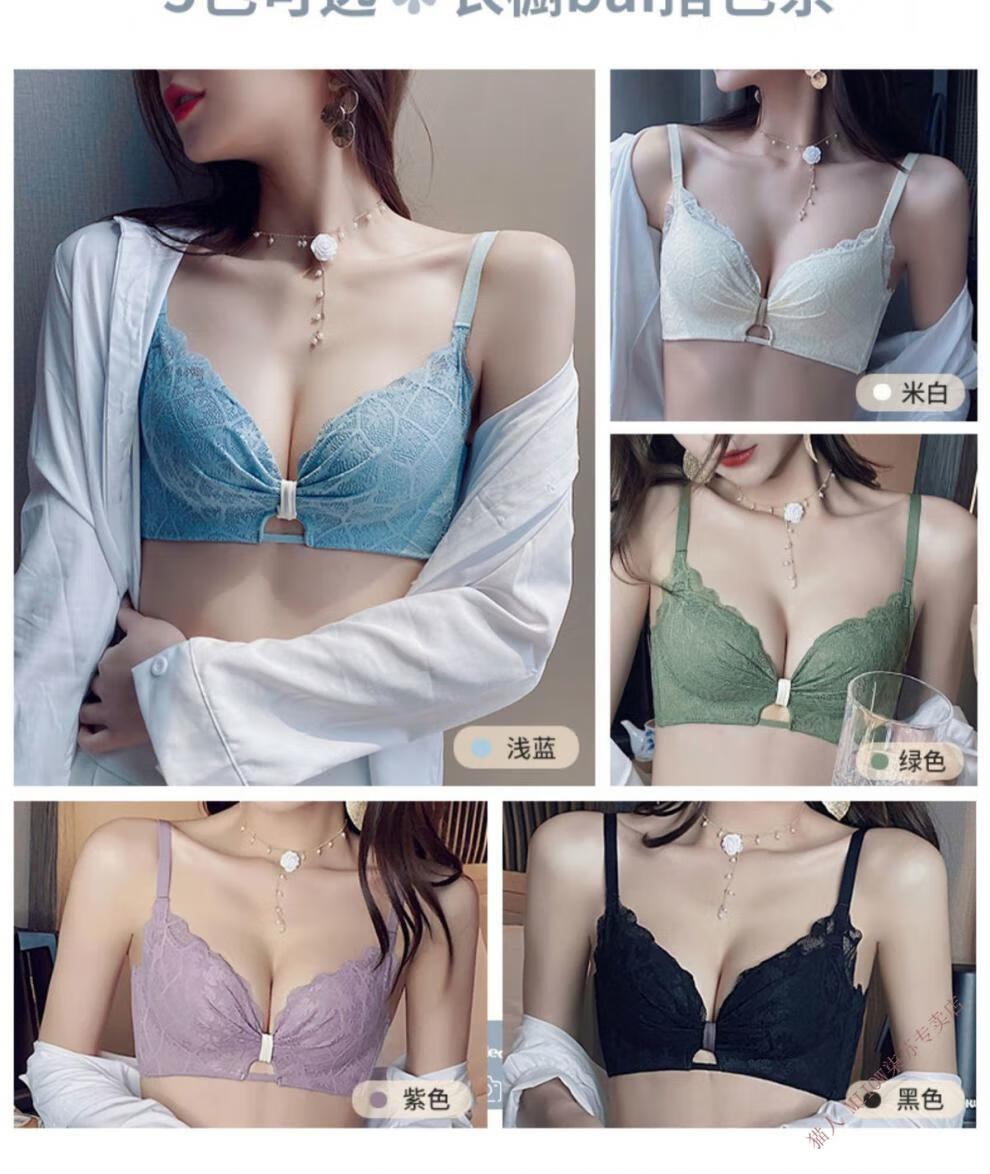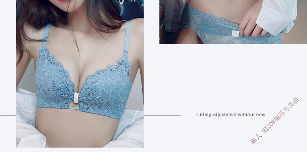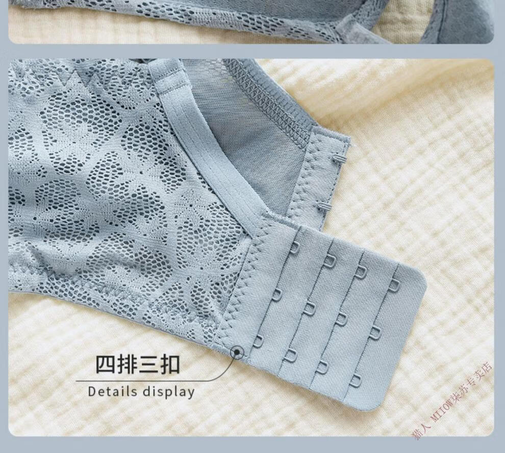 MiiOW underwear for women with small breasts, push-up, sexy lace trim, adjustable anti-sagging, secondary breasts, no wire bra set, moss green (set) 32/70A