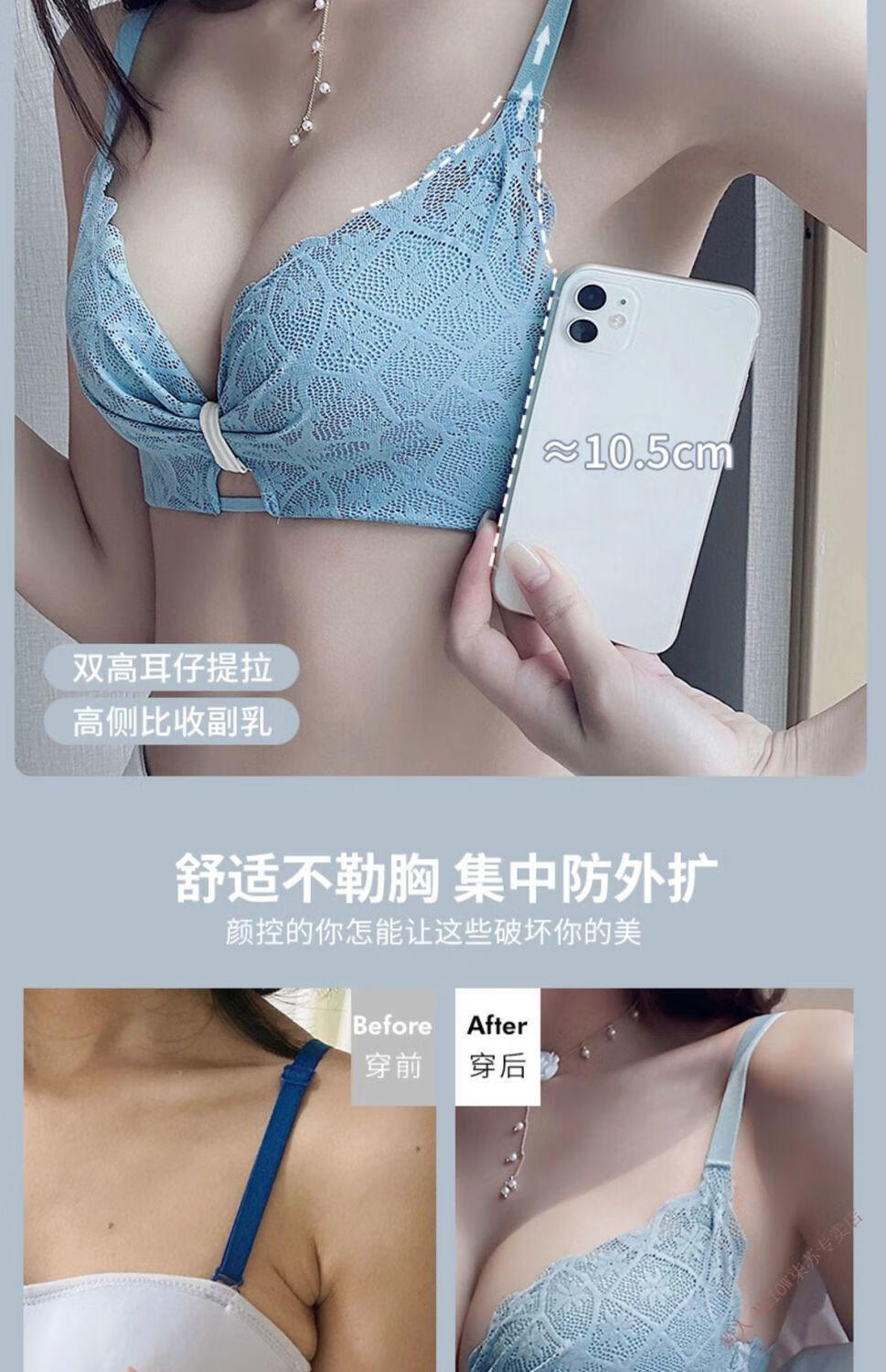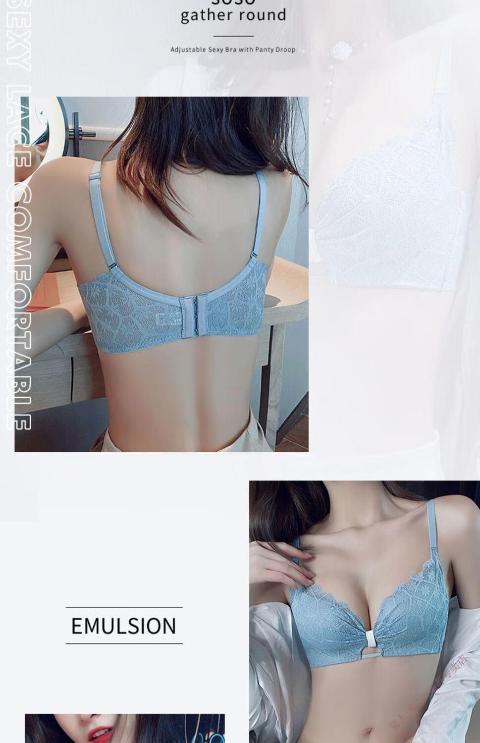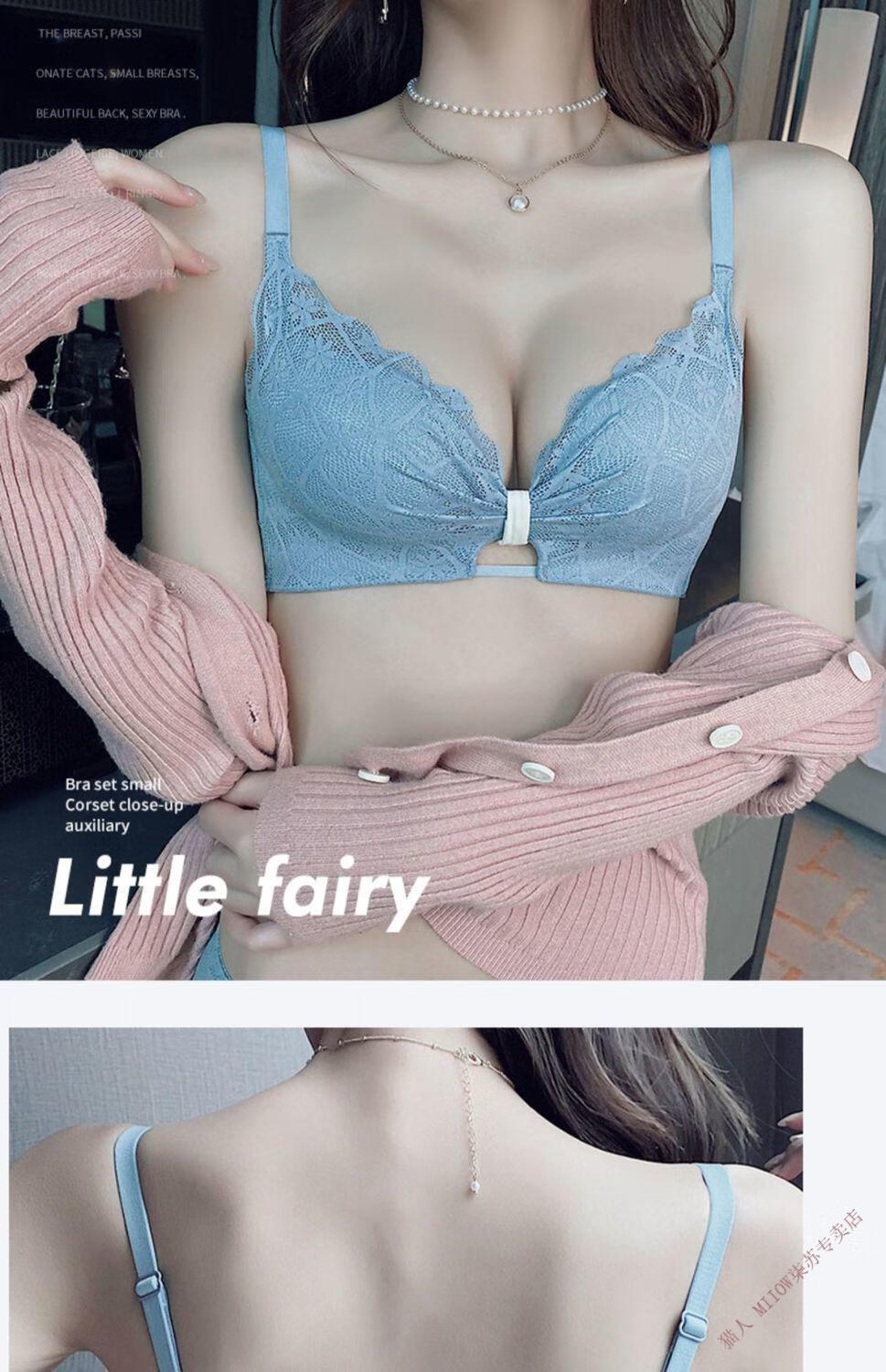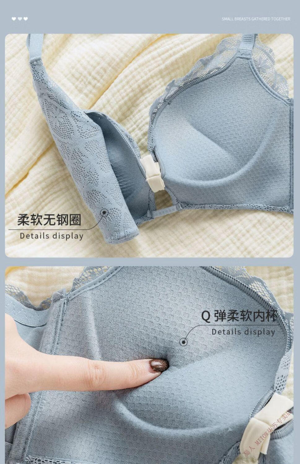 MiiOW underwear for women with small breasts, push-up, sexy lace trim, adjustable anti-sagging, secondary breasts, no wire bra set, moss green (set) 32/70A