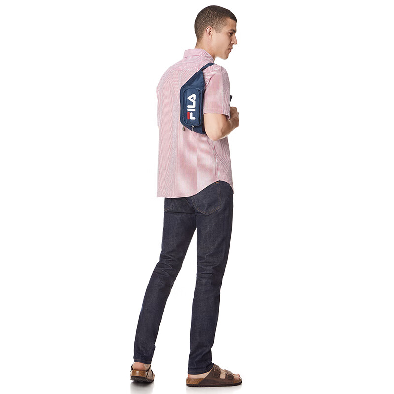 FILA men's and women's waist bags, couple chest bags, shoulder bags, casual sports fashion, cycling travel, simple shoulder bags, LOGO Black, one size