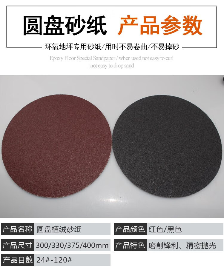 12-inch flocked cloth-based emery cloth 300mm epoxy floor sandpaper disc sandpaper 330mm self-adhesive sanding disc 330mm red sand 120# 5 pieces