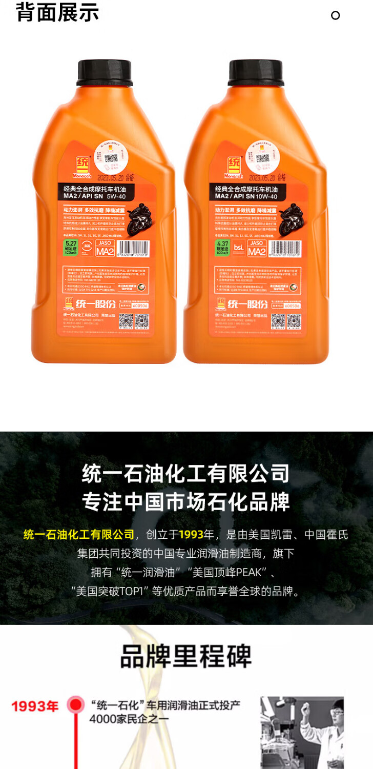 Uniform (Monarch) fully synthetic motorcycle oil SN 10W40 four-stroke all-season Yamaha Suzuki classic 5W40 pedal SN 10W40 1L*1 bottle-free funnel