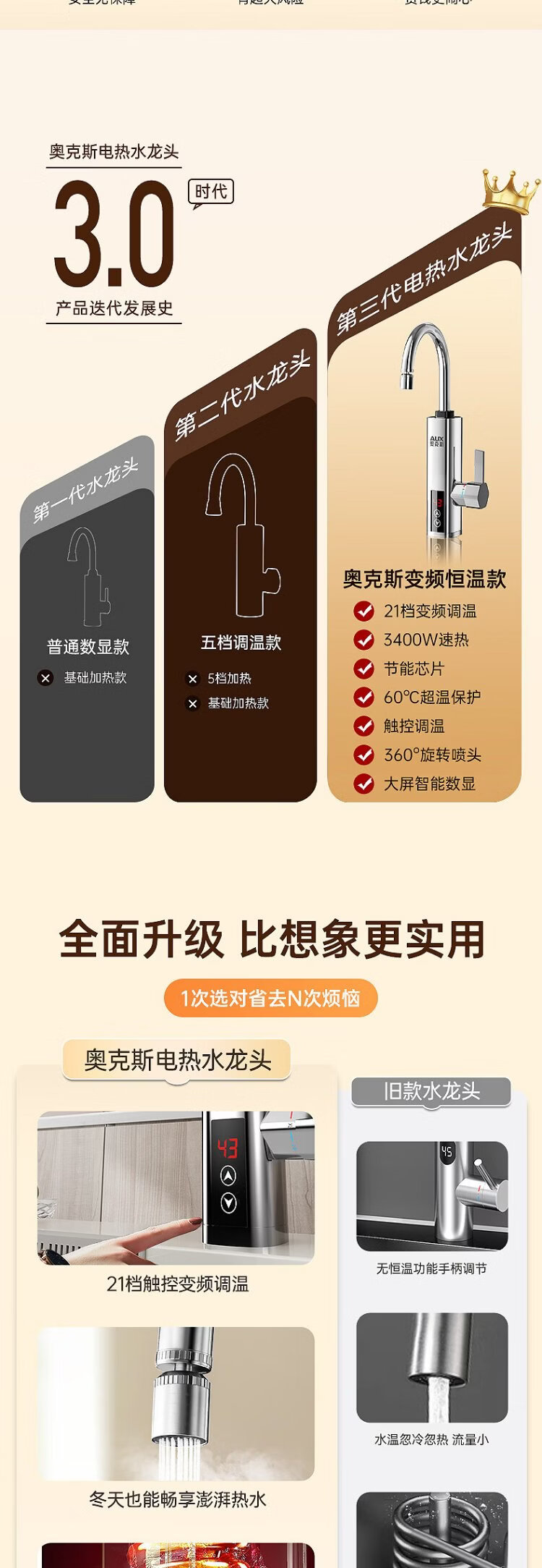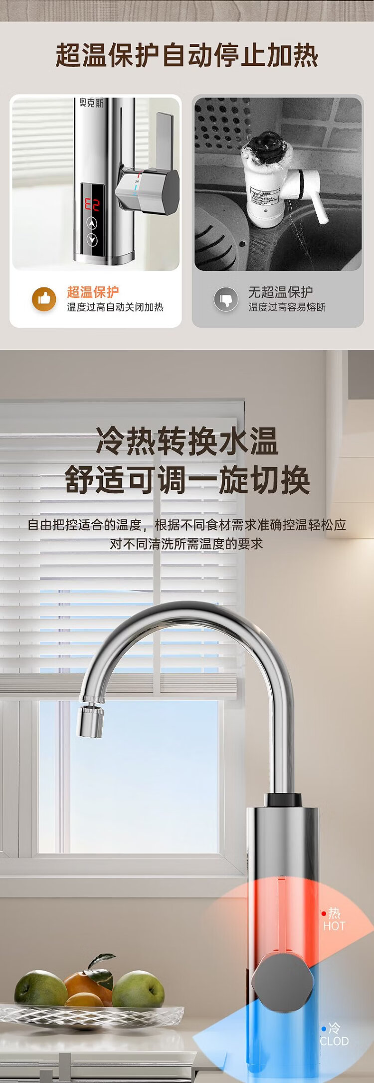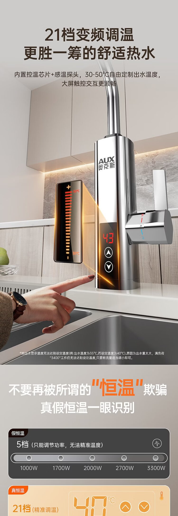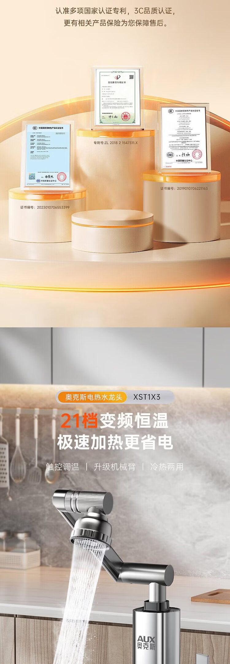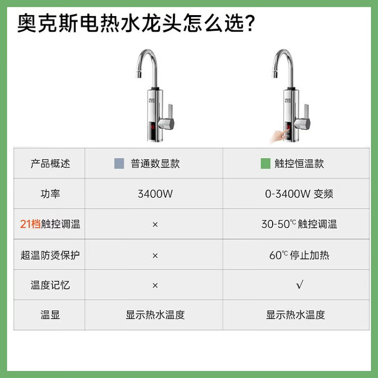 AUX electric faucet water heater heating faucet fast hot water frequency conversion constant temperature kitchen water inlet large screen digital display electroplated silver + upgraded mechanical arm + leakage protection plug