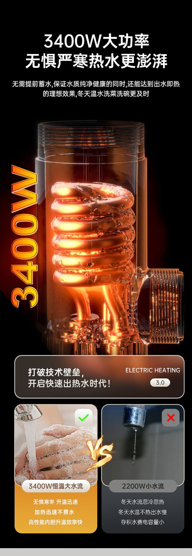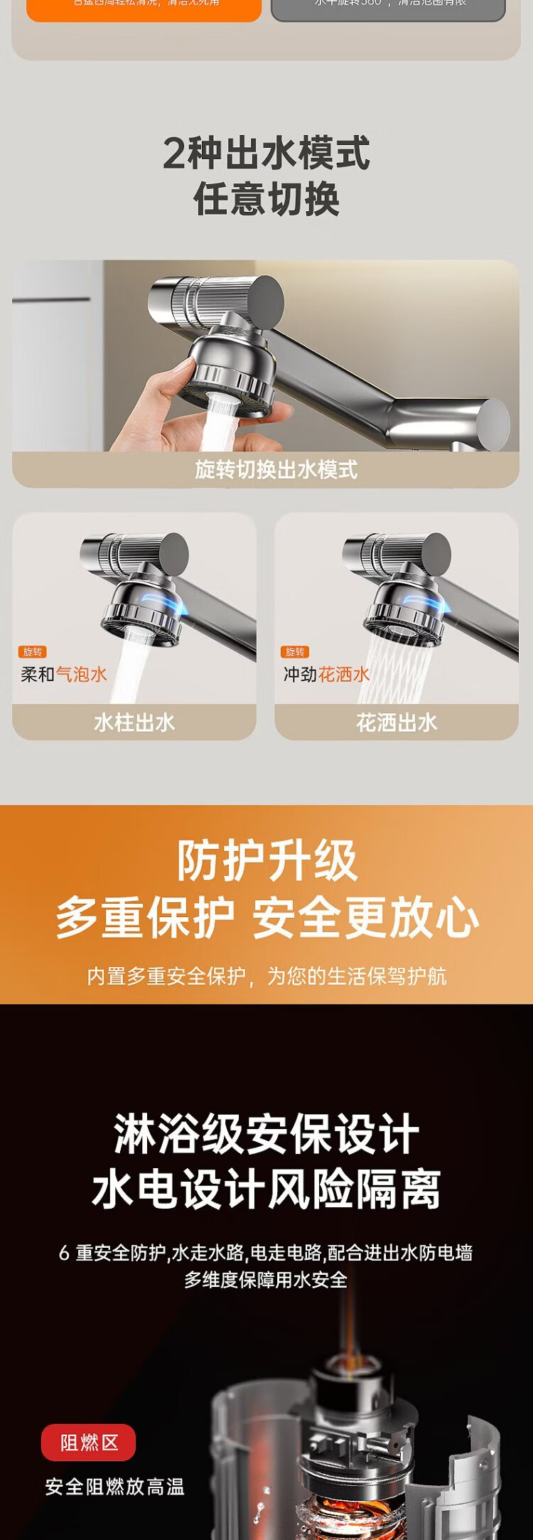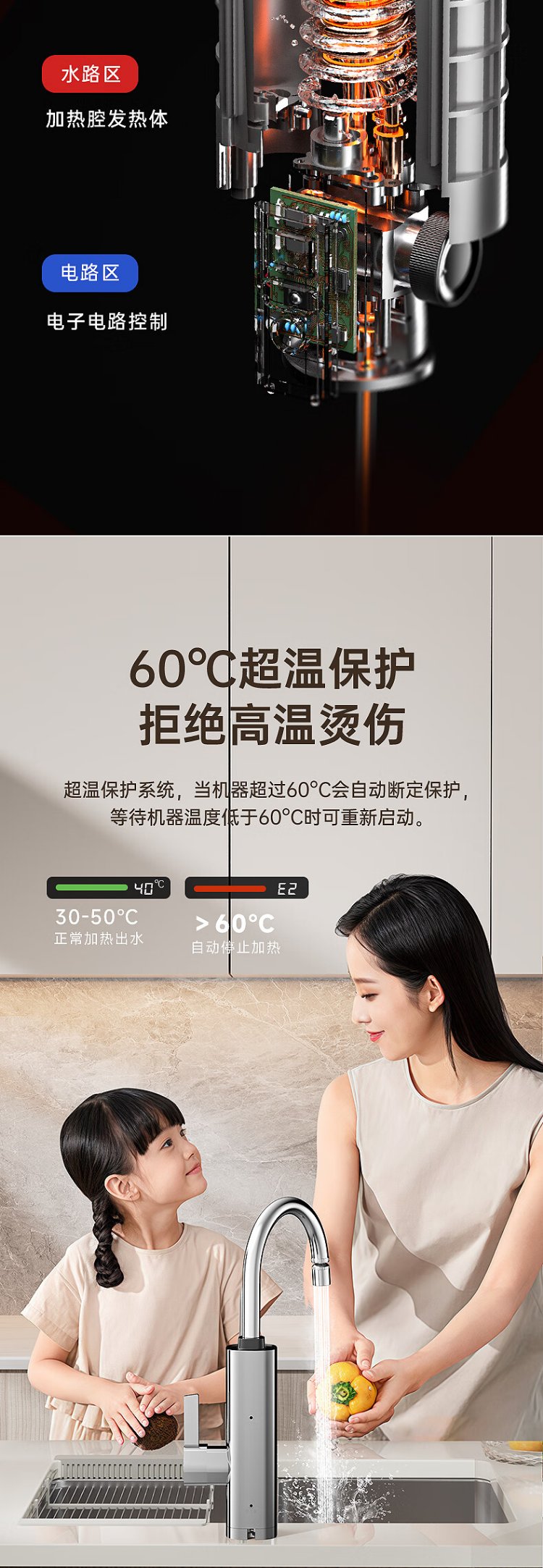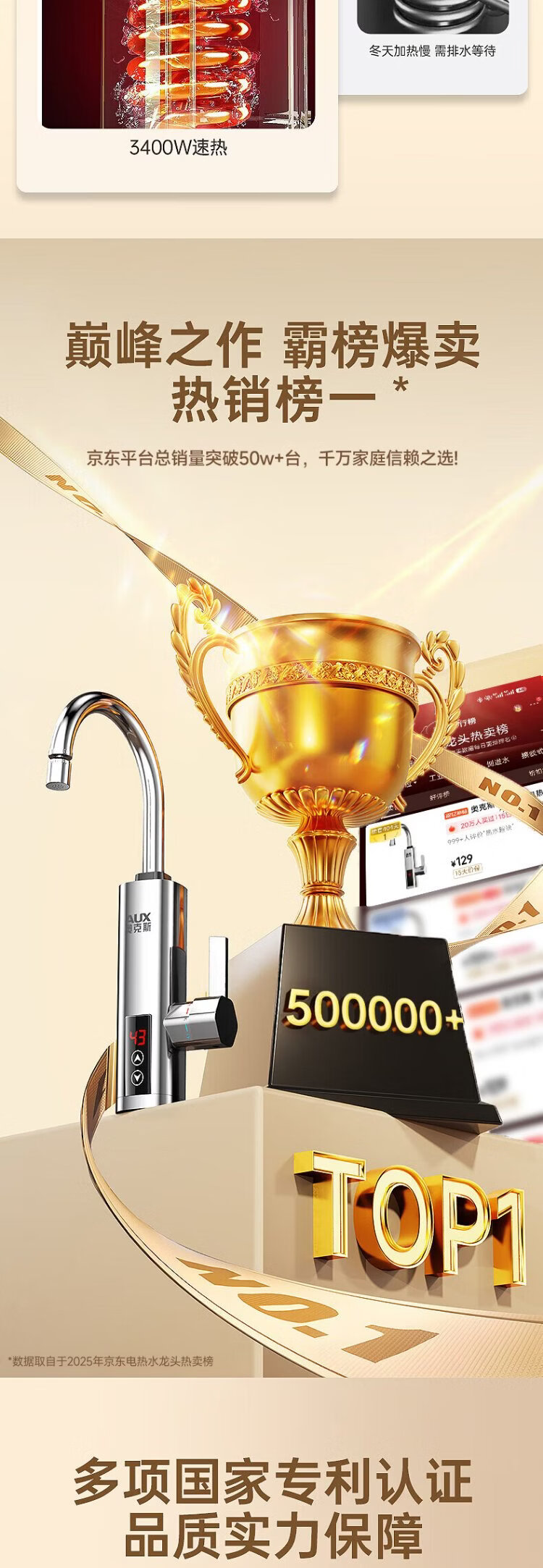 AUX electric faucet water heater heating faucet fast hot water frequency conversion constant temperature kitchen water inlet large screen digital display electroplated silver + upgraded mechanical arm + leakage protection plug