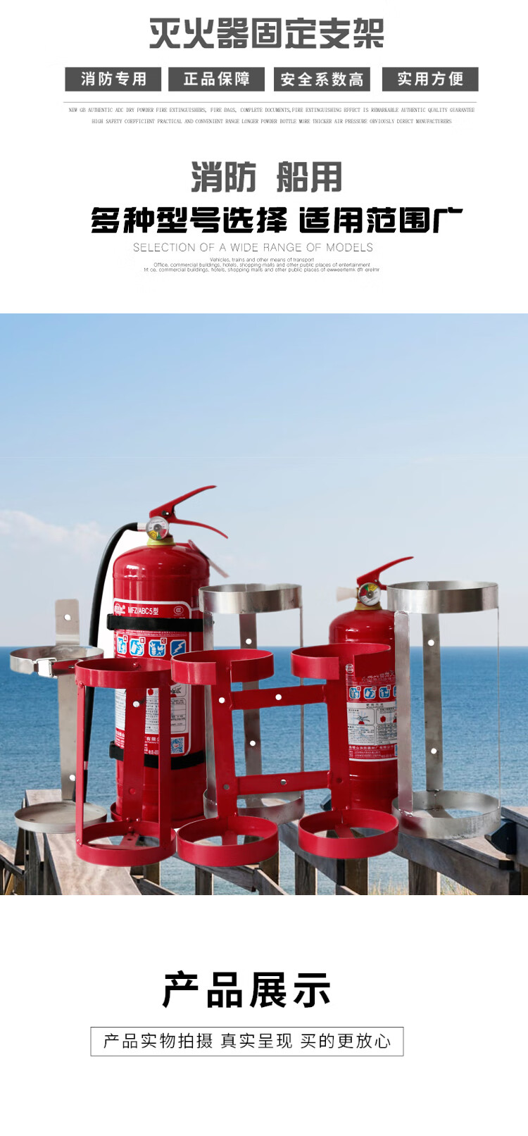 Customized and suitable for marine pure stainless steel fire extinguisher holder universal bracket iron wall fixed frame iron hanger 3-4KG stainless steel tray buckle