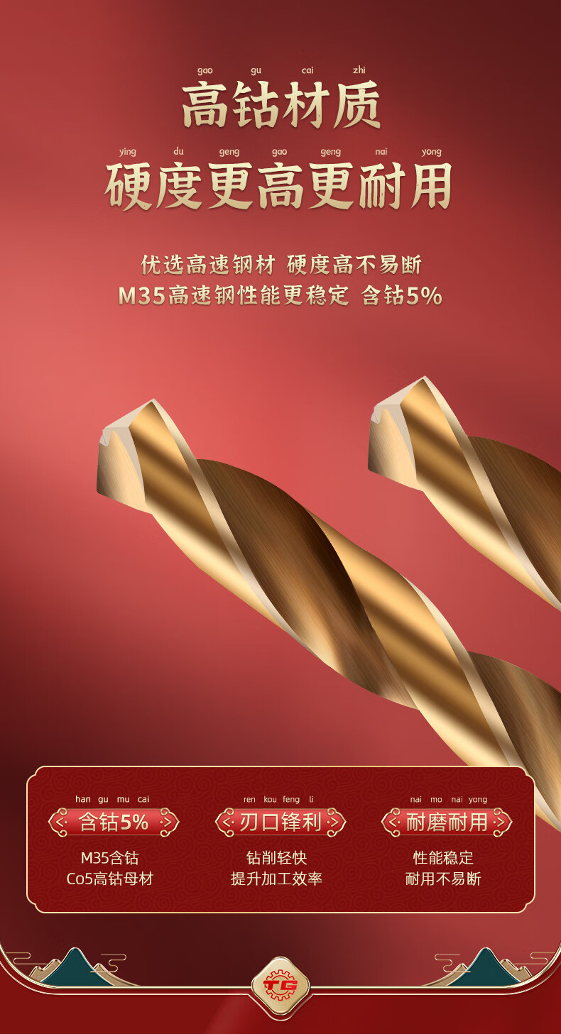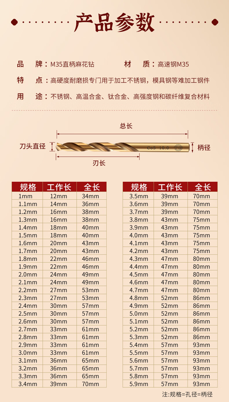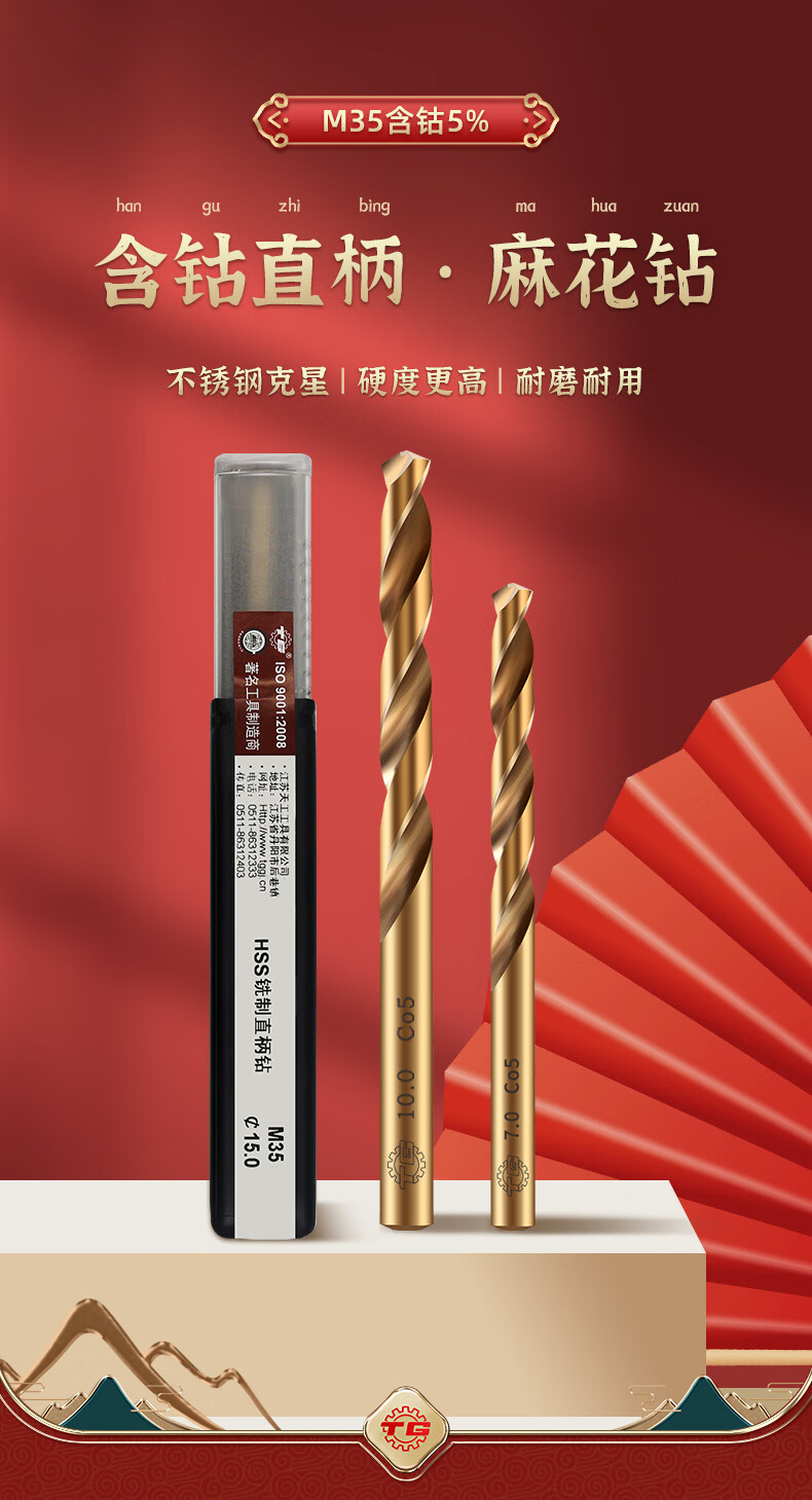 Tiangong (TIANGONG) M35 twist drill bit cobalt-containing stainless steel special drill bit for drilling steel super-hard high cobalt drill set 6mm 2 pieces