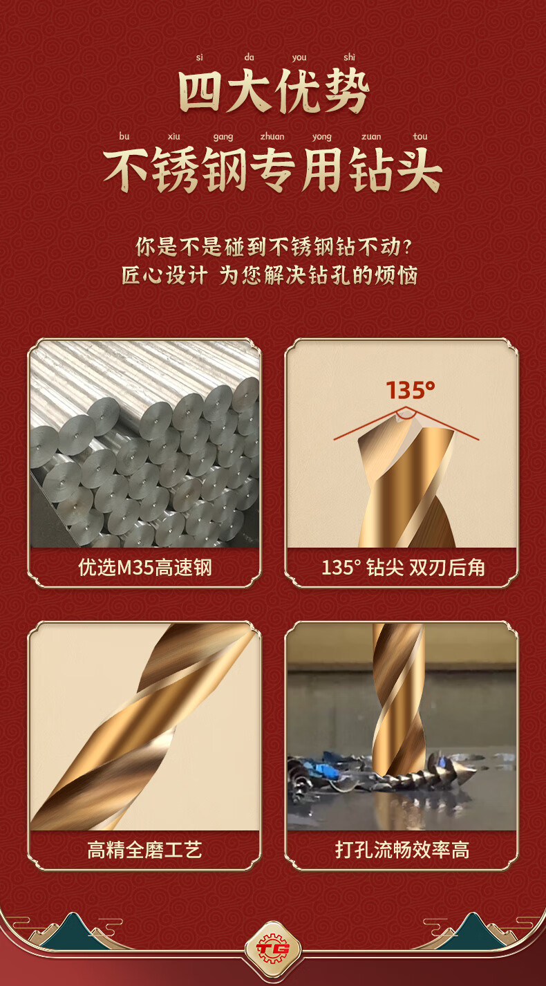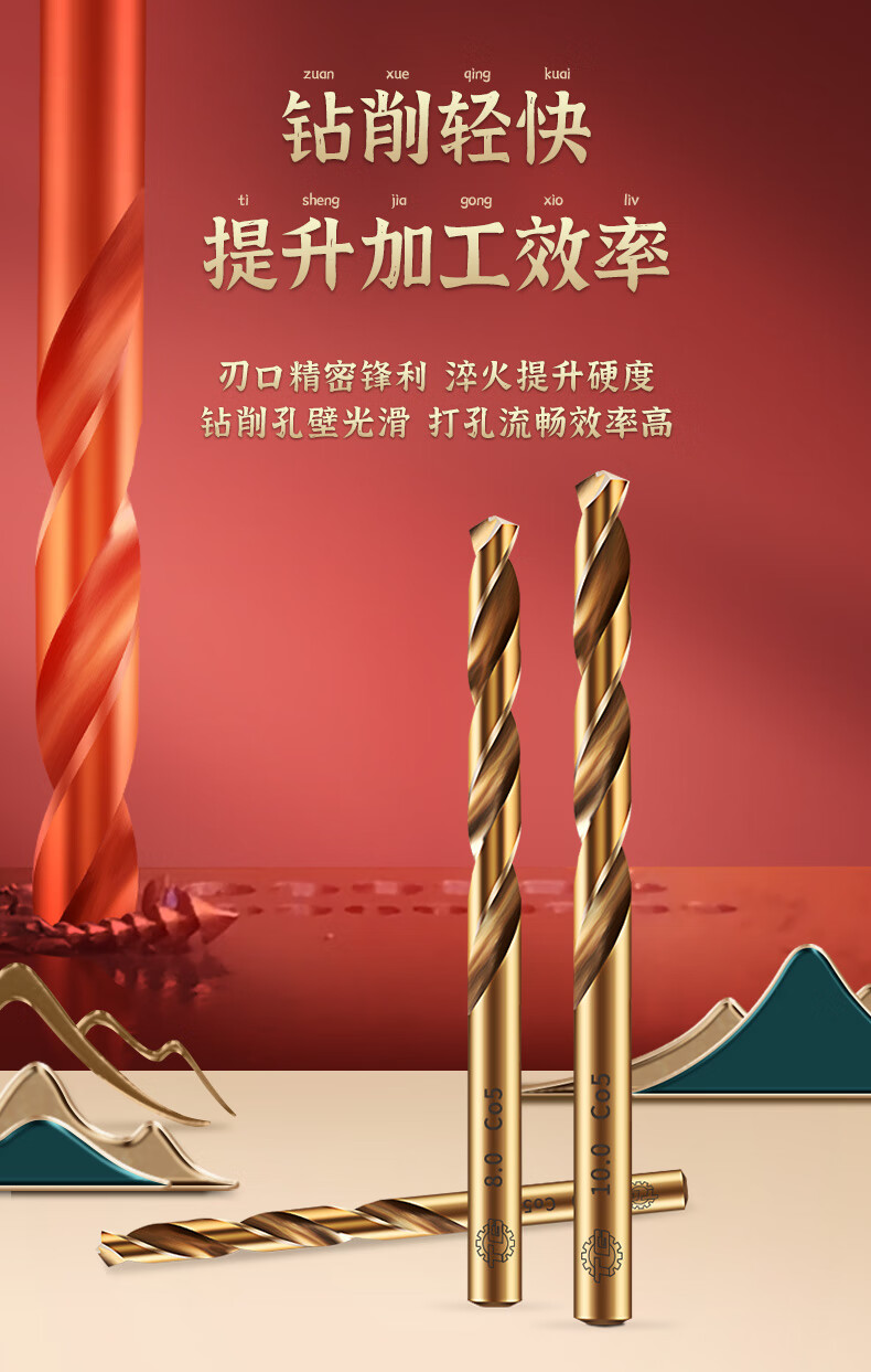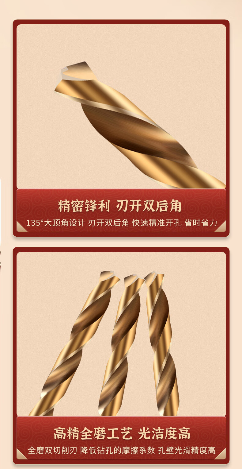 Tiangong (TIANGONG) M35 twist drill bit cobalt-containing stainless steel special drill bit for drilling steel super-hard high cobalt drill set 6mm 2 pieces