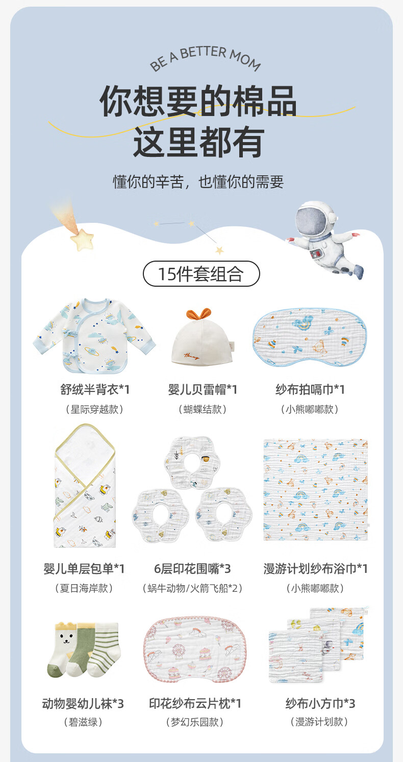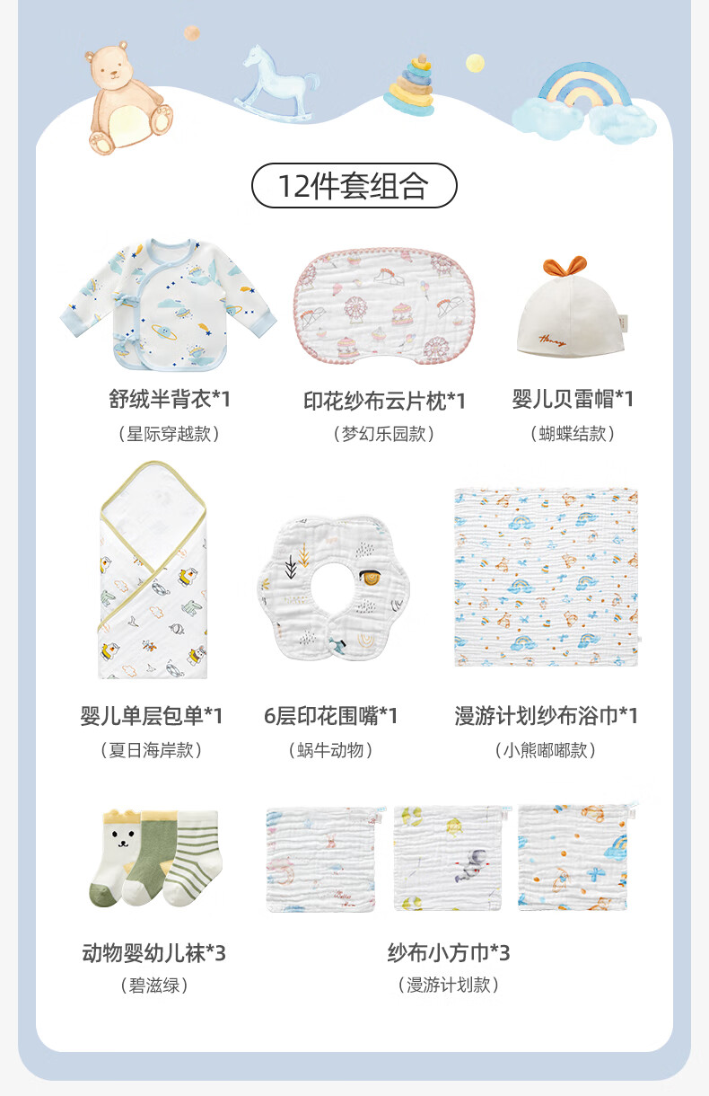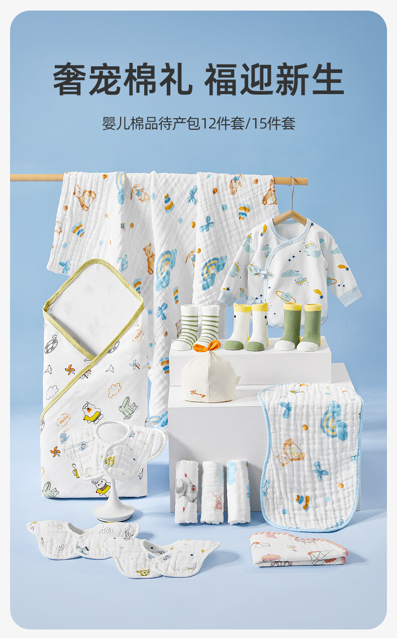 October Crystal Newborn Baby Gift Box Maternity Package One Hundred Days Gift Baby Clothes Pure Cotton Bath Towel Square Bag Single Autumn and Winter Newborn Gift Pack 15-piece Set (Spring and Autumn)