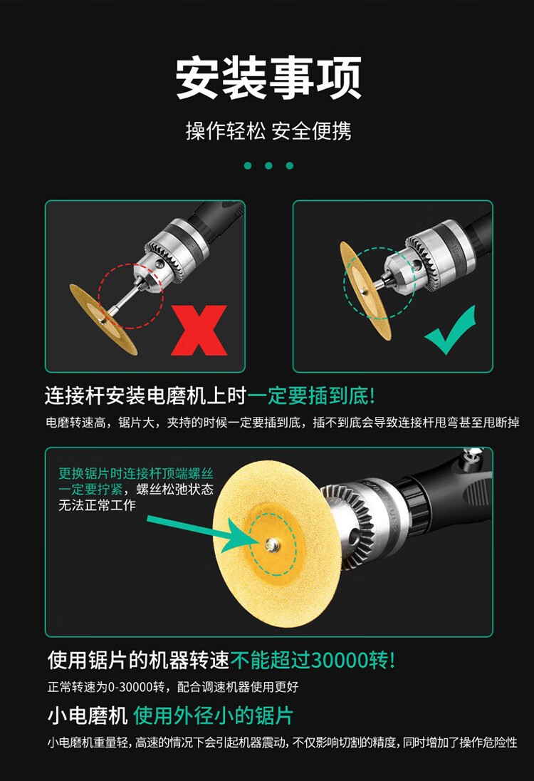 Shantou Lincun ceramic tile seam clearing sheet beautiful seam cutting sheet electric grinding slice saw blade beautiful seam clearing glass jade polishing wheel grinding disc electric grinder seam clearing sheet titanium-coated emery 30mm 10 pieces + 2 connecting rods