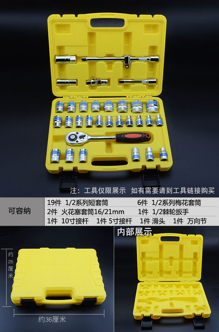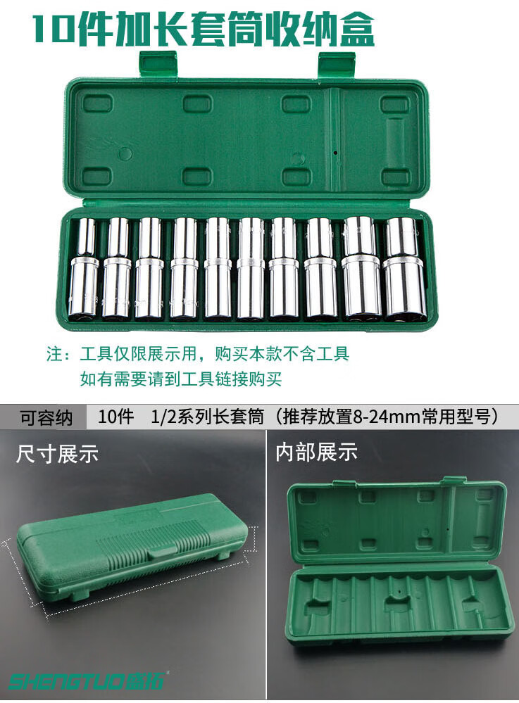 Du Zhunyu hardware tool empty box 1/2 extended socket ratchet wrench set tool box storage box 1/2 inch 32-piece socket storage box green