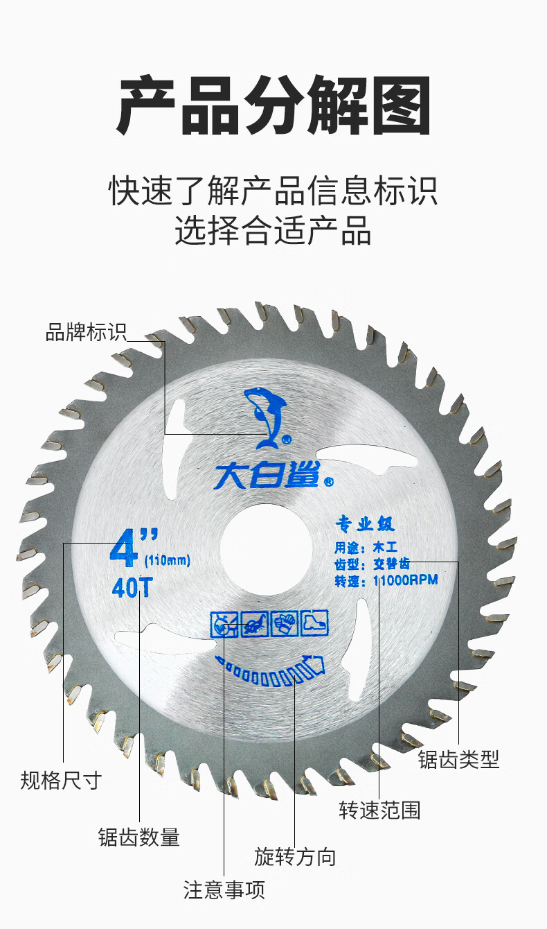 Xiong Zhecha Great White Shark Saw Blade Woodworking Special Saw Blade 4-inch 40-tooth 30-tooth woodworking saw blade decoration grade Great White Shark 4-inch 30T alternating teeth
