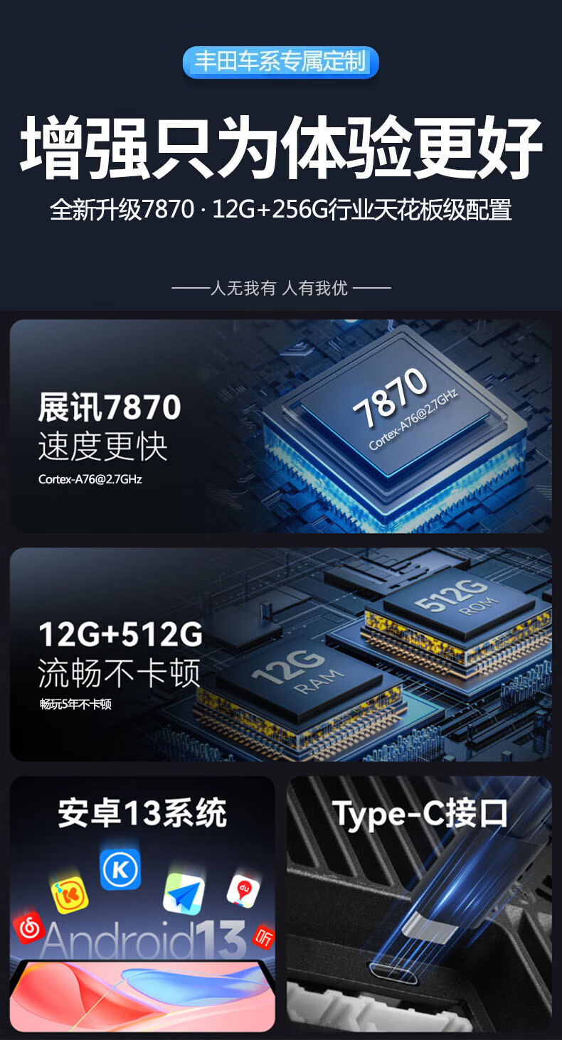 Hangmeng is suitable for 21-23 Toyota Camry central control display large screen navigation all-in-one modified Carplay 360 panoramic 7870 12+256G +AR+ installation
