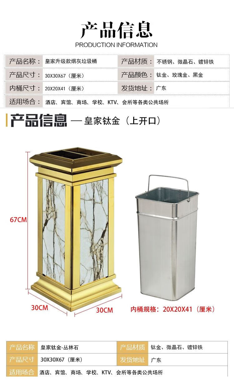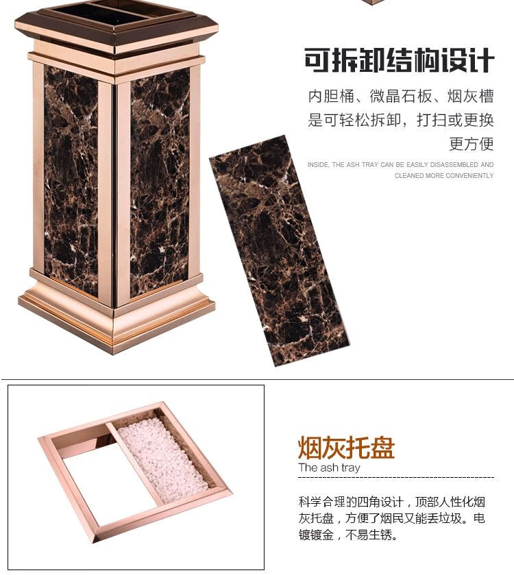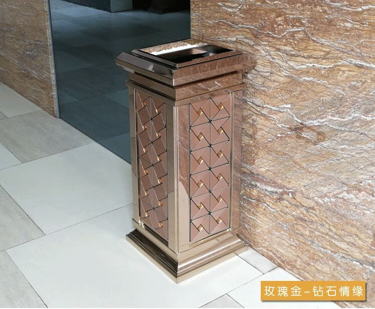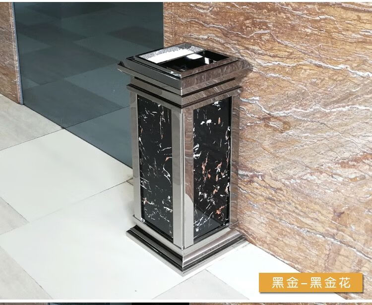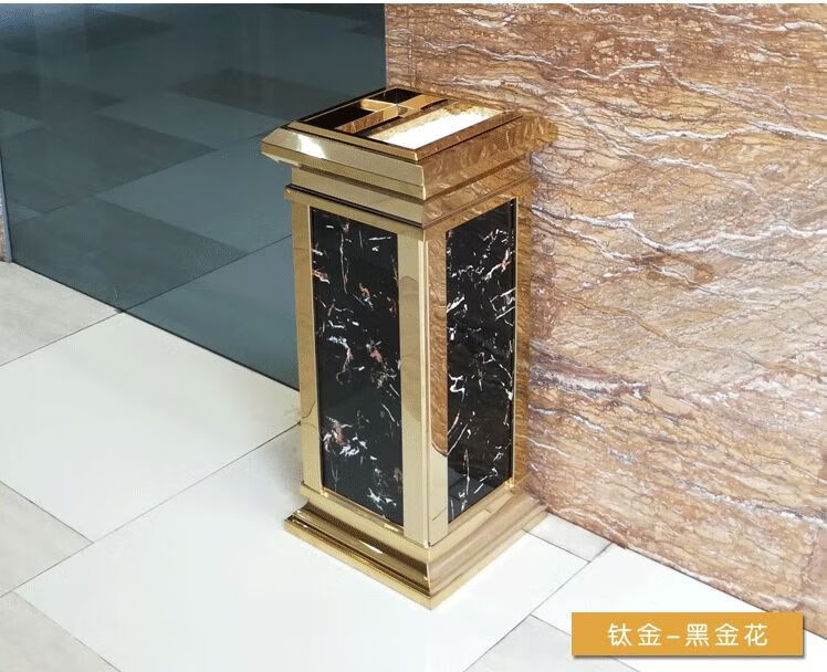 Hotel lobby trash can hotel ktv property corridor elevator entrance vertical ashtray with ashtray black gold black gold flower (upgraded and thickened)