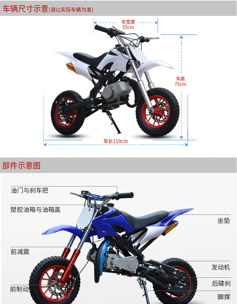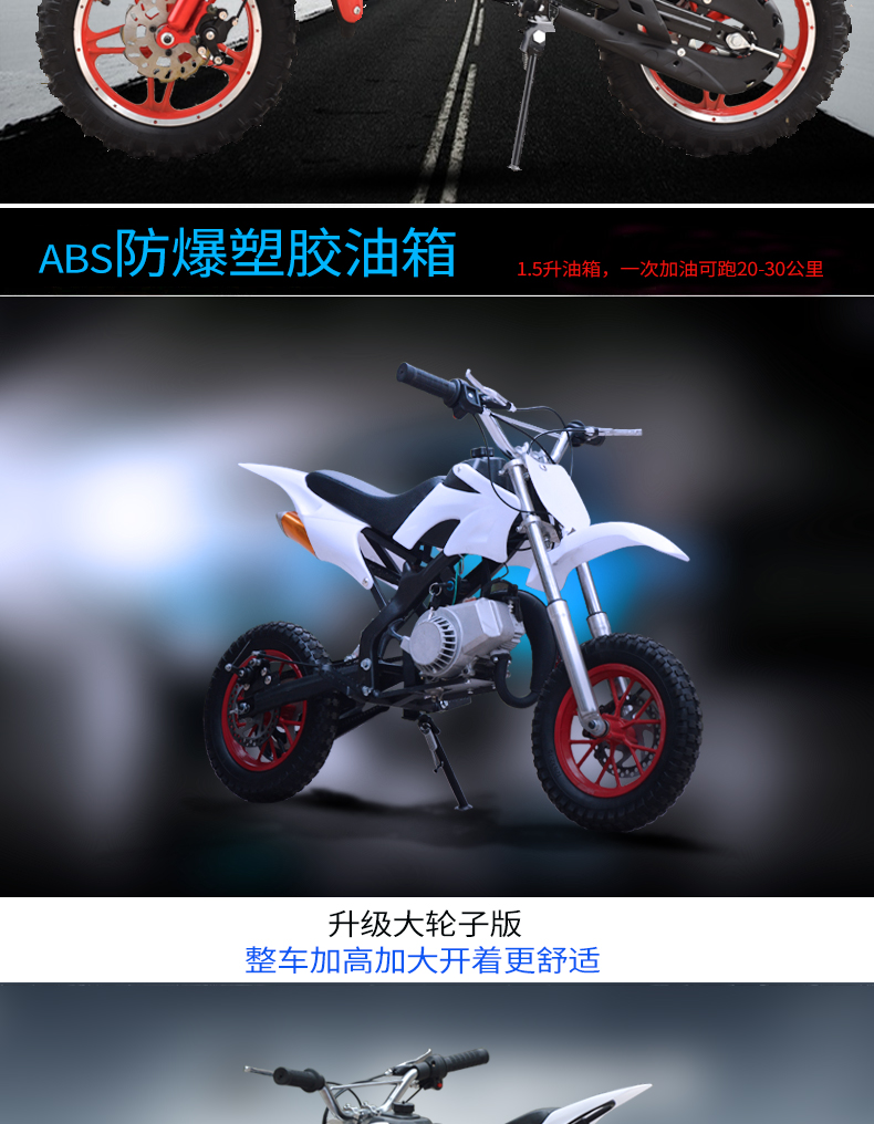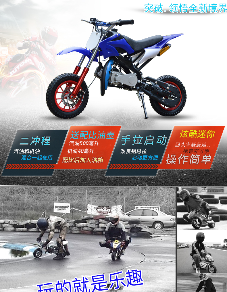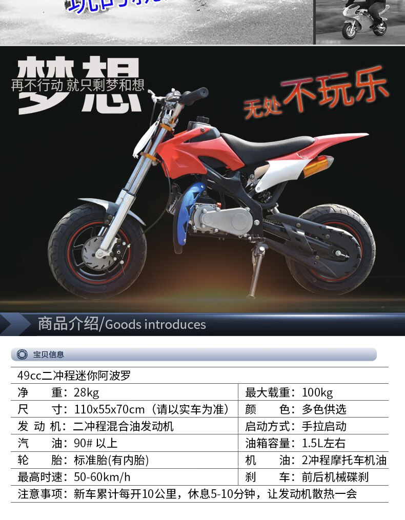 Langchuang 49cc mini motorcycle two-stroke small off-road vehicle fuel model uses electric charging mini sports car 2-stroke white small wheels