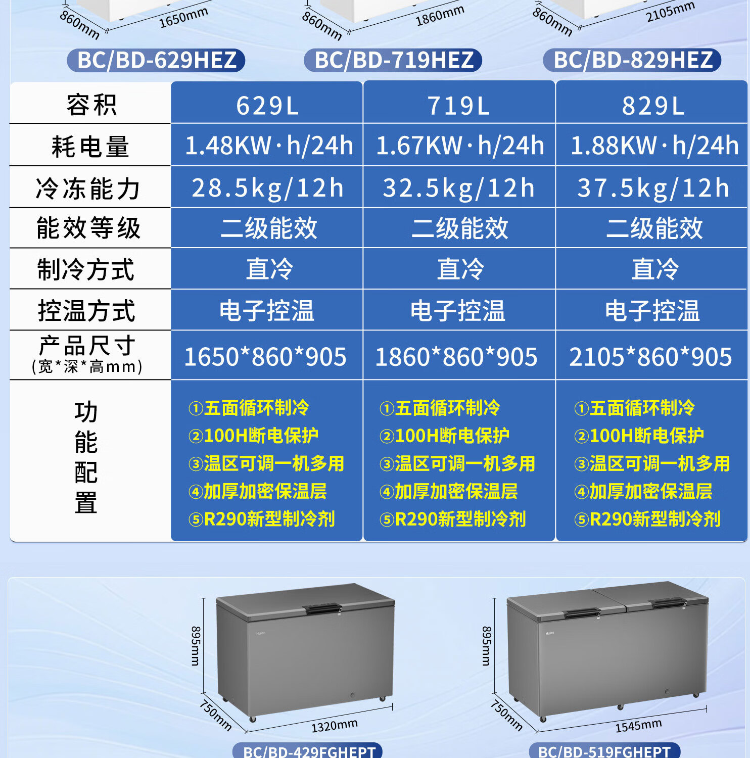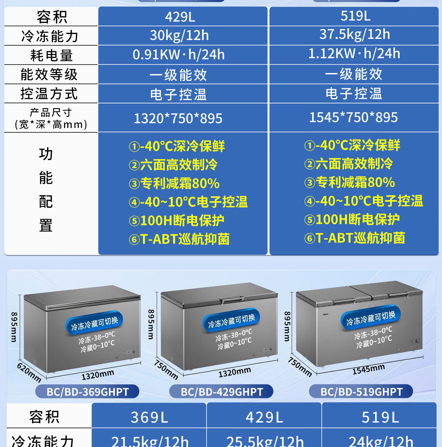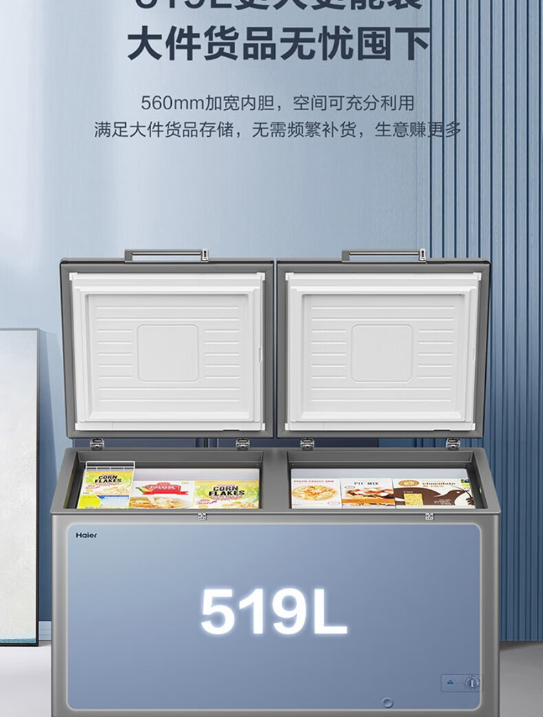 Haier Freezer 519/829 liter commercial household large capacity freezer conversion ultra-low temperature seafood deep freezing quick freezing 519FGHEPT first level energy efficiency - 40 degrees electronic temperature control