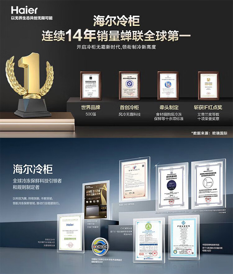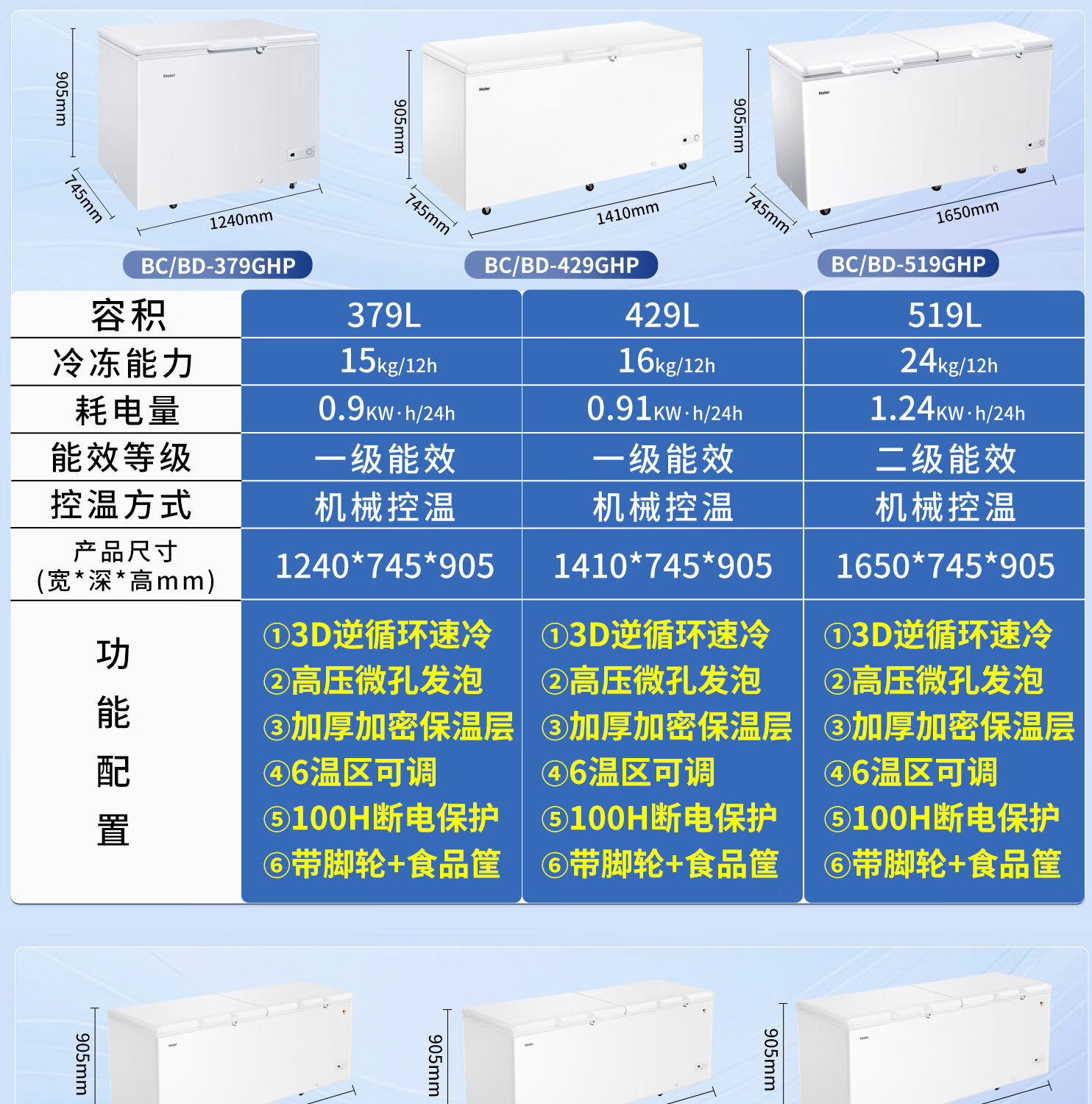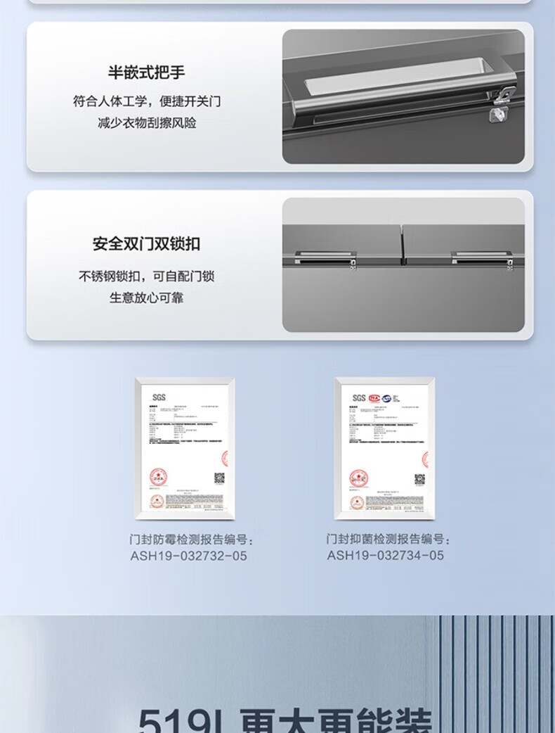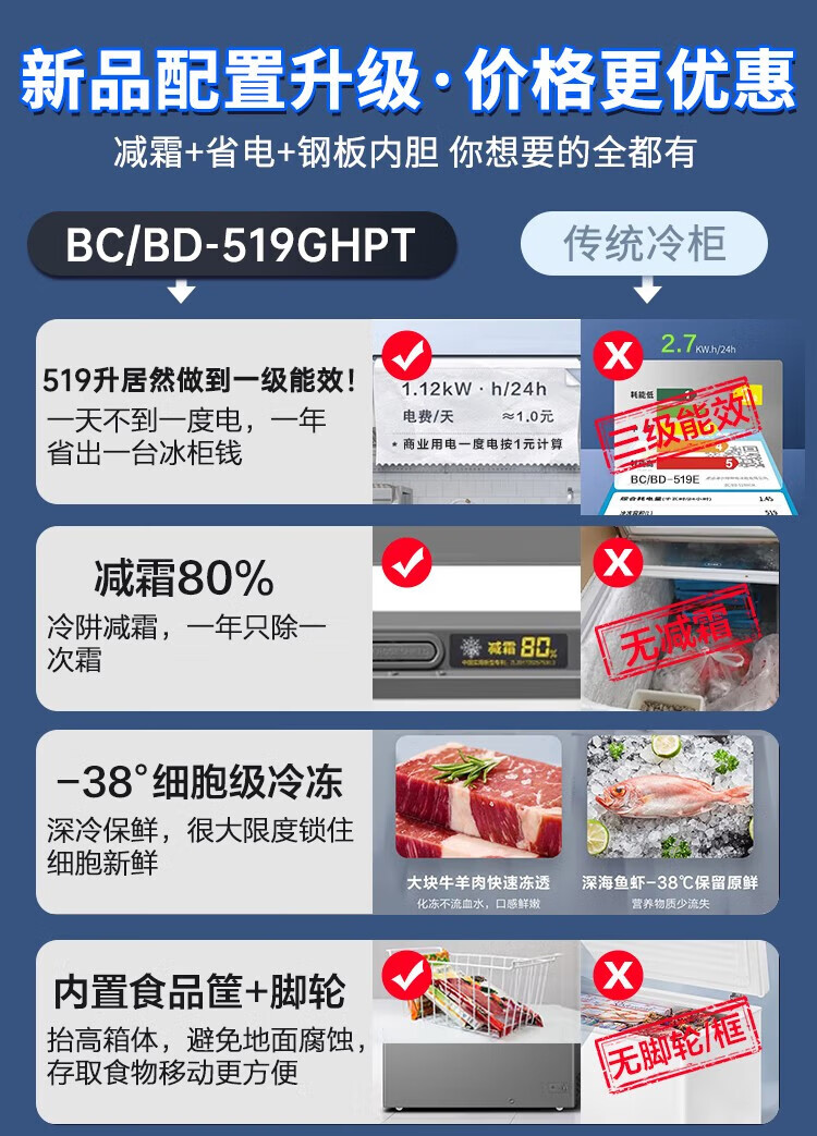 Haier Freezer 519/829 liter commercial household large capacity freezer conversion ultra-low temperature seafood deep freezing quick freezing 519FGHEPT first level energy efficiency - 40 degrees electronic temperature control