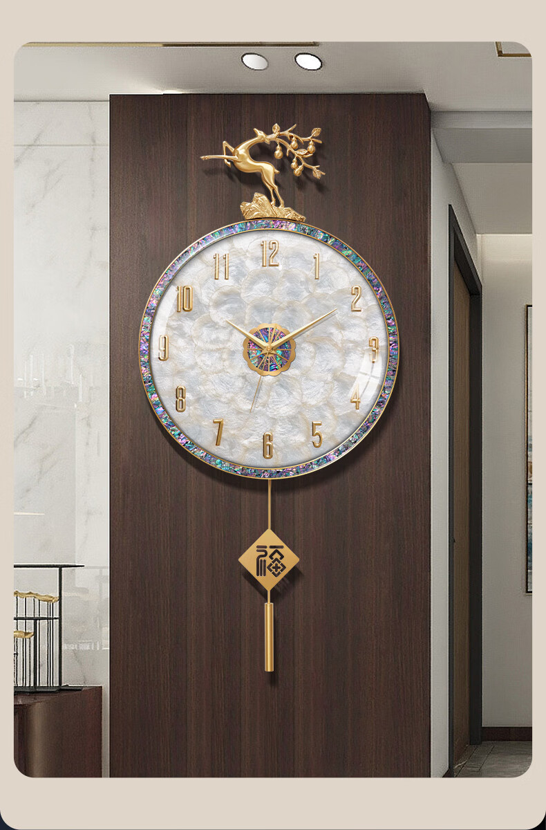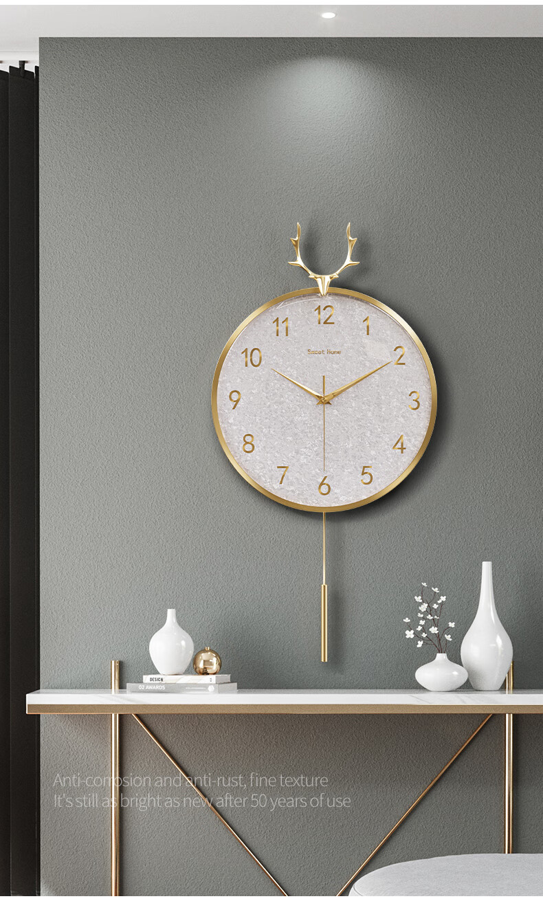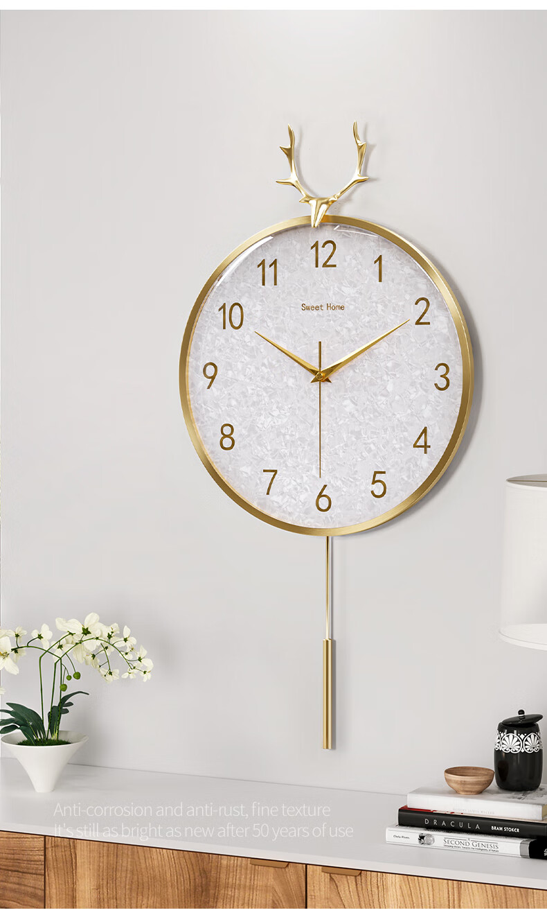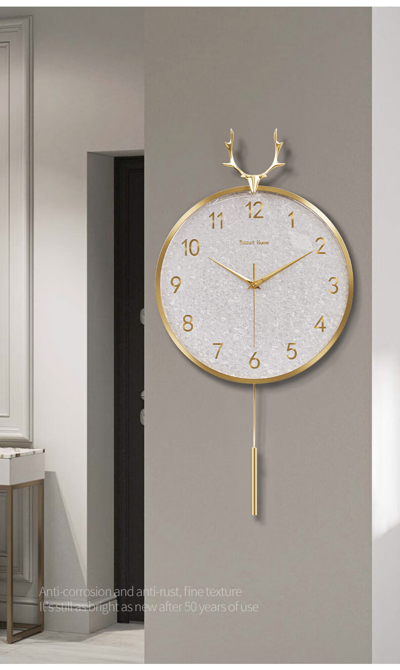 Copper Master light luxury wall clock living room prosperous house high-end modern simple Internet celebrity home fashion clock Nordic silent wall clock 35CM-full digital disk-radio wave movement-cylindrical pendulum.