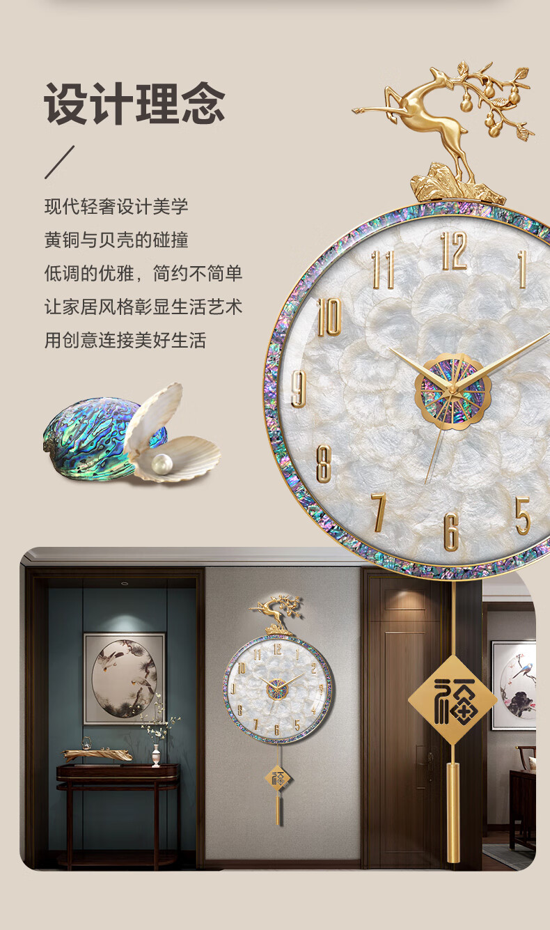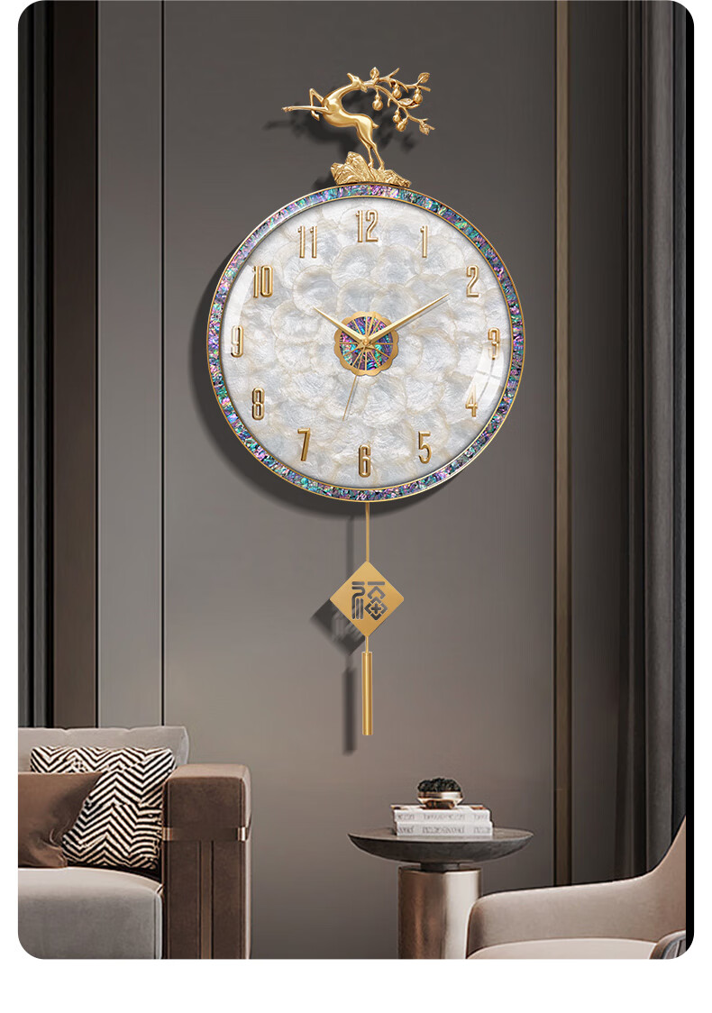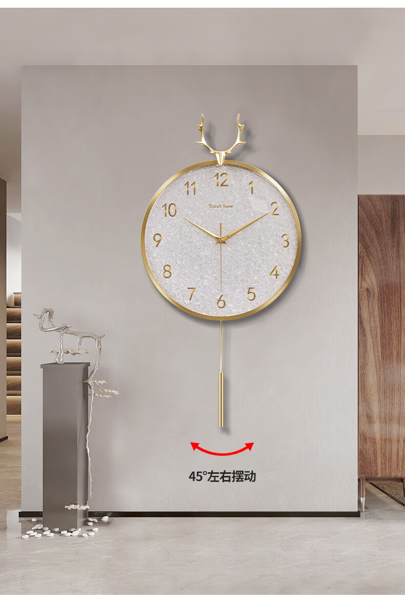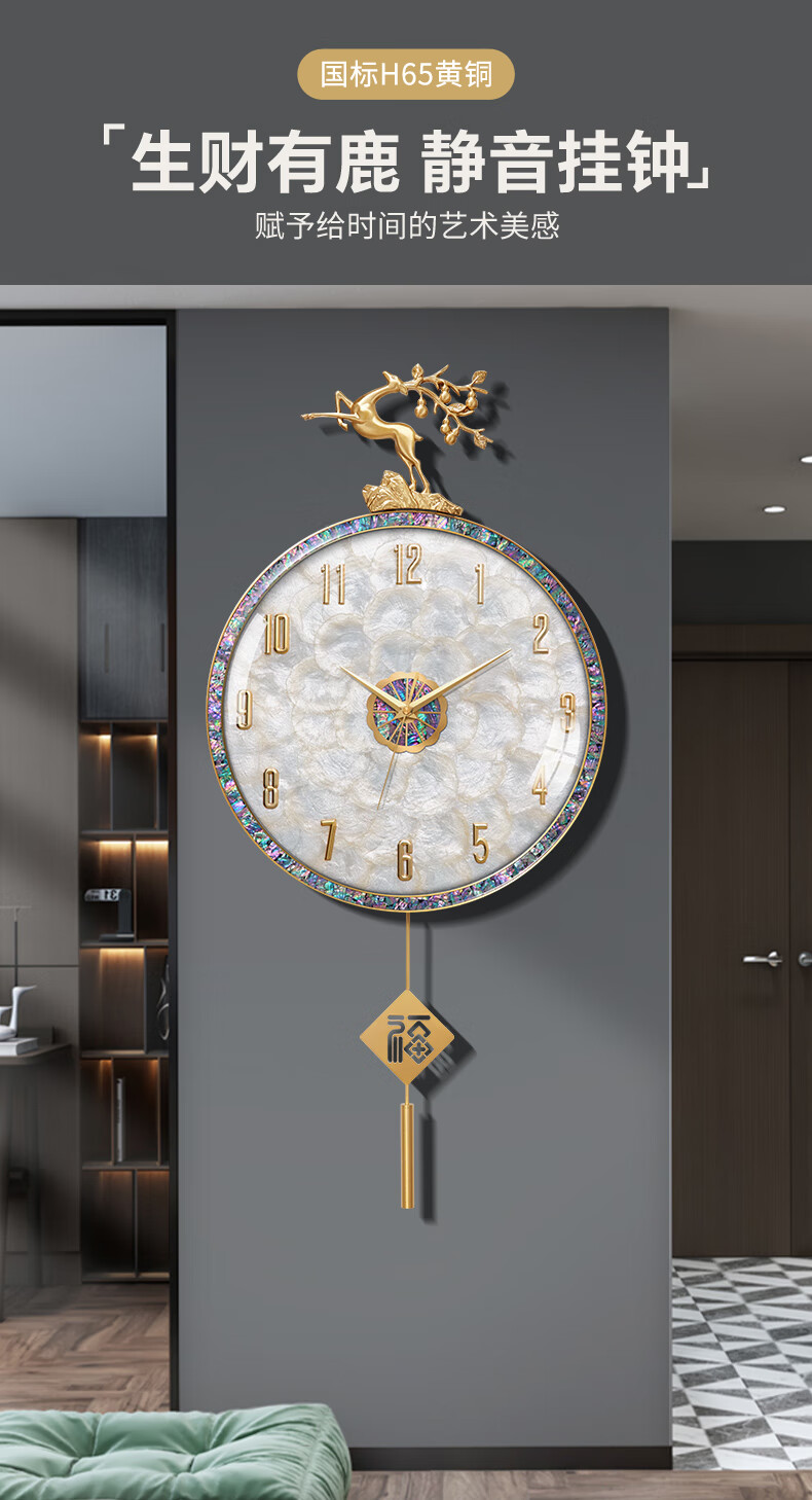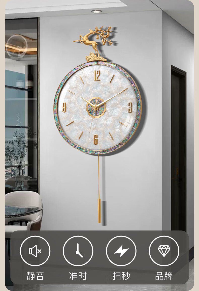 Copper Master light luxury wall clock living room prosperous house high-end modern simple Internet celebrity home fashion clock Nordic silent wall clock 35CM-full digital disk-radio wave movement-cylindrical pendulum.