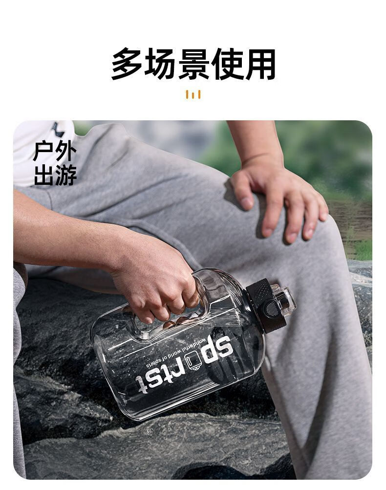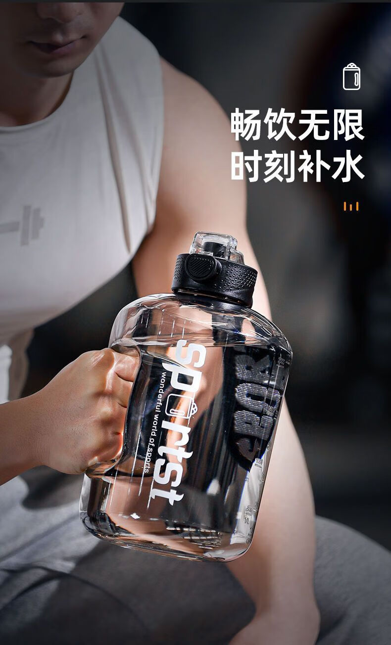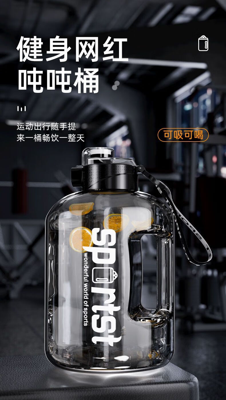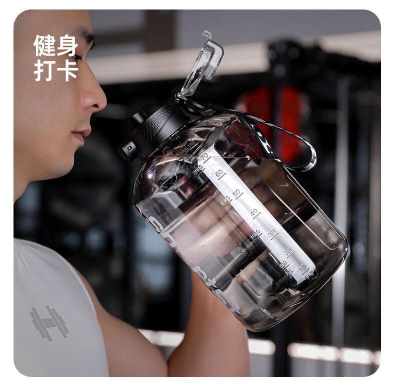 AISHUBEI Welfare 2024 New Water Cup Large Capacity Men's and Women's Ton Bucket Construction Site Anti-fall Space Cup Pot Sports Explosion-proof Black 1800ml + Straw + Rope + Cup Brush