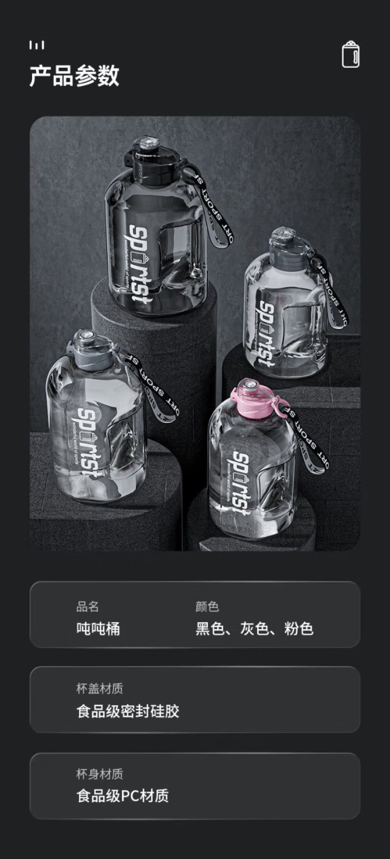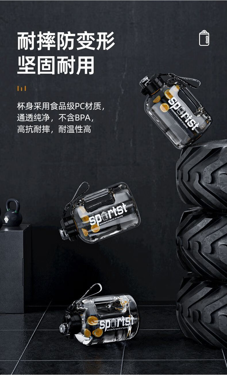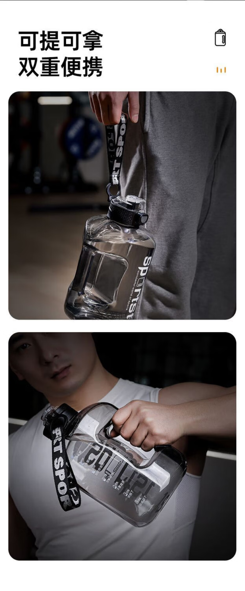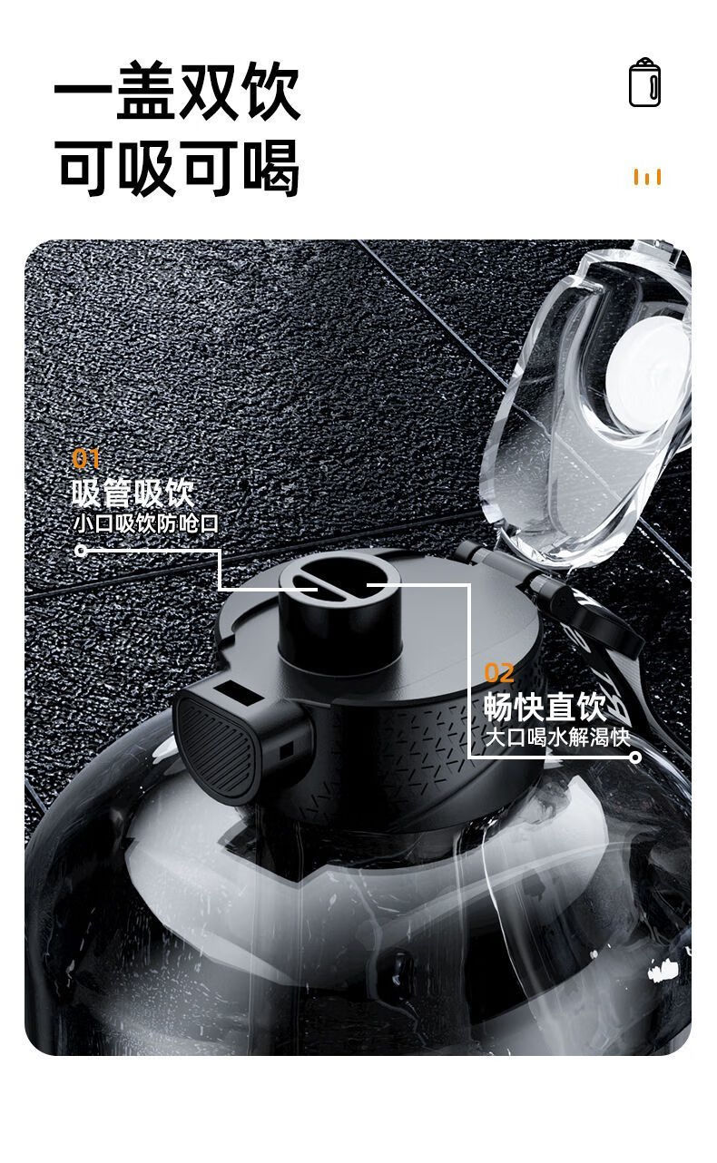 AISHUBEI Welfare 2024 New Water Cup Large Capacity Men's and Women's Ton Bucket Construction Site Anti-fall Space Cup Pot Sports Explosion-proof Black 1800ml + Straw + Rope + Cup Brush