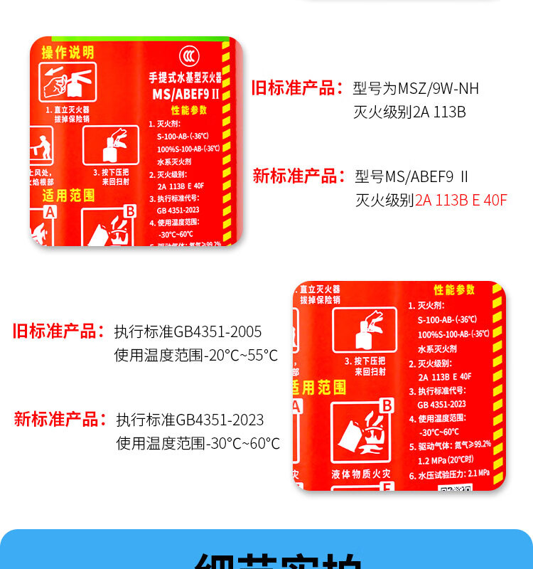 Jiangjing 25-year new national standard minus 30 degree water-based fire extinguisher 9L shop factory factory fire equipment MS/ABEF9 II 9L water-based MS/ABEF9