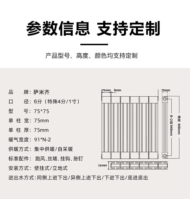 Samiqi copper-aluminum composite radiator household water heating radiator 7575 wall-mounted decorative central heating 600mm high