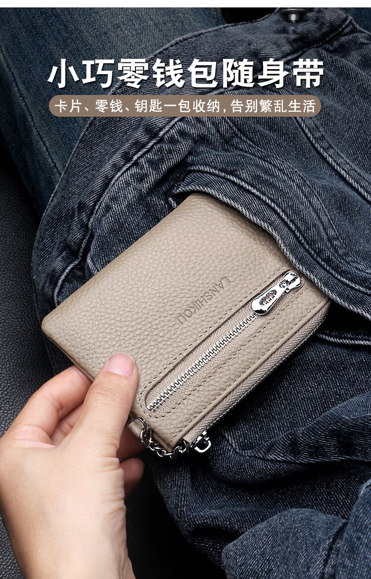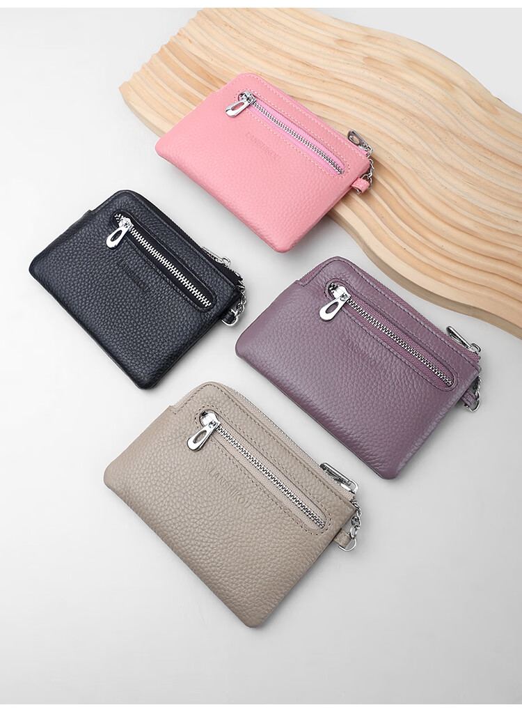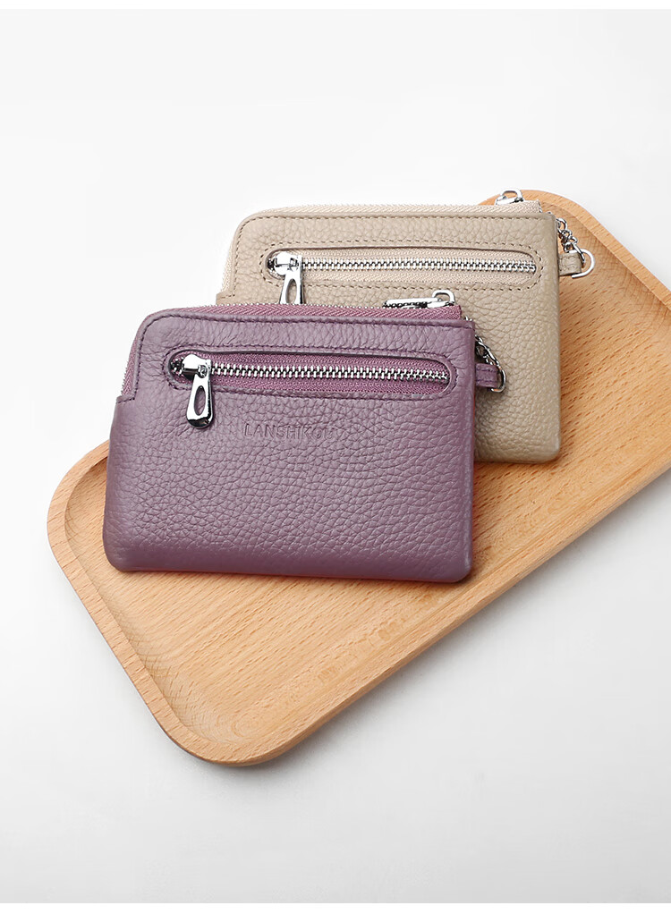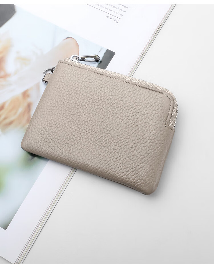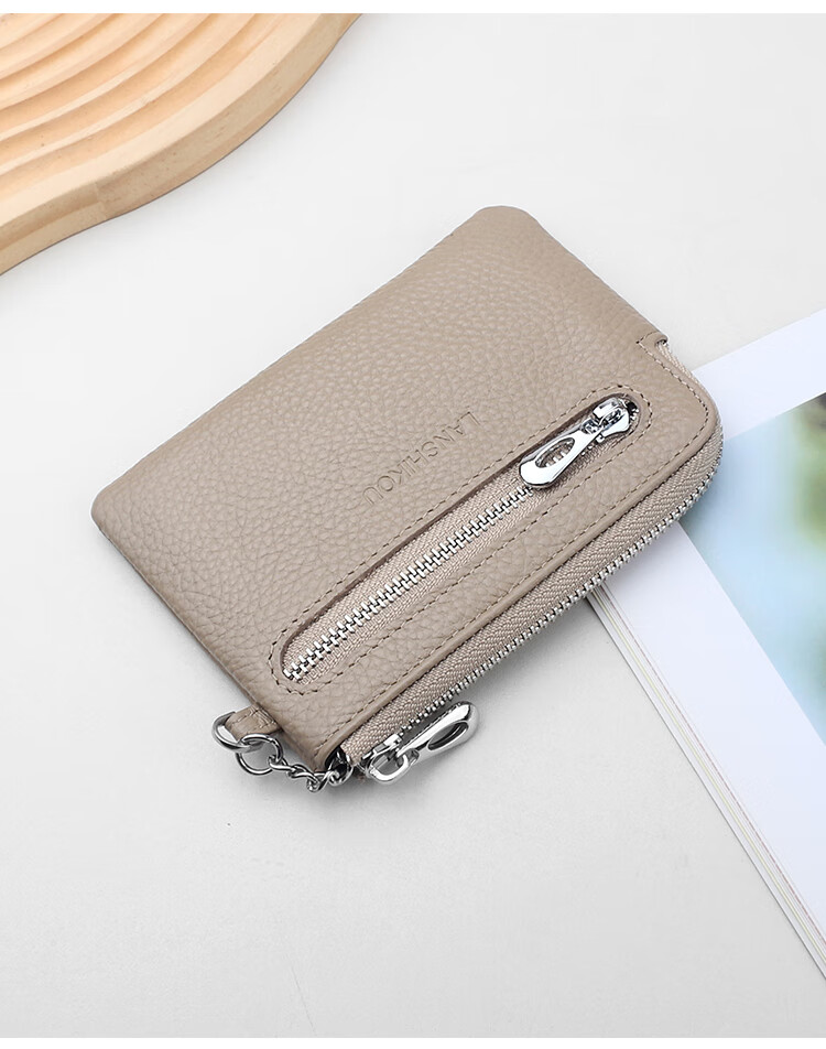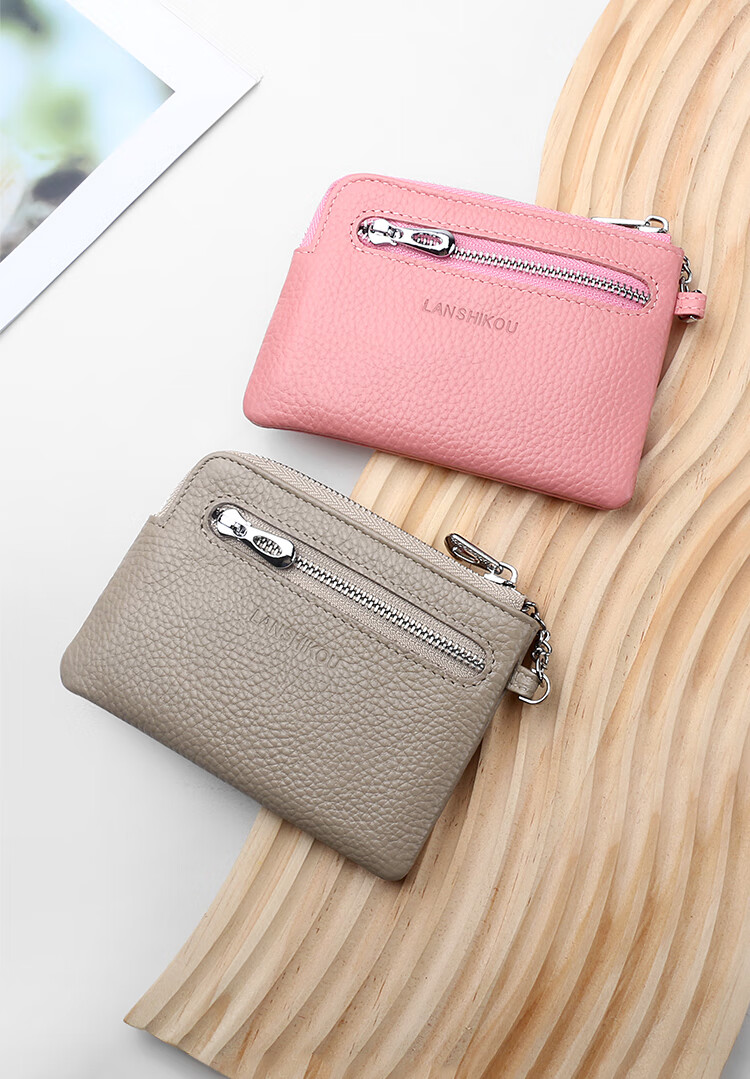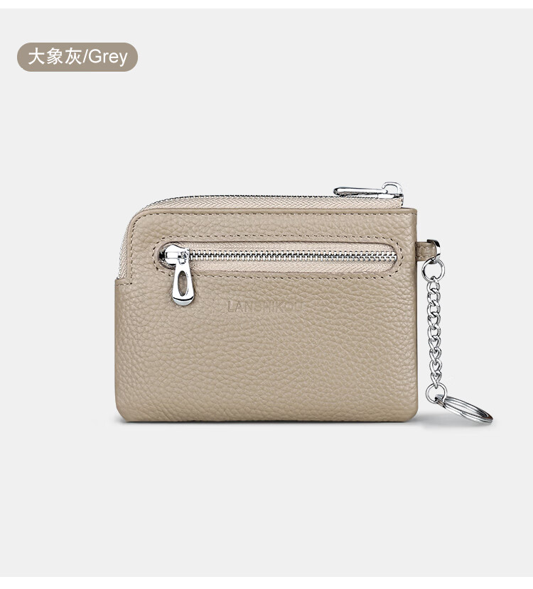 Lanshikou Coin Purse Genuine Leather Cute Compact Wallet Women's Key Bag Short Coin Bag Korean Style Wallet Mini Coin Bag Gray