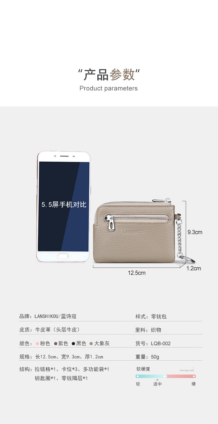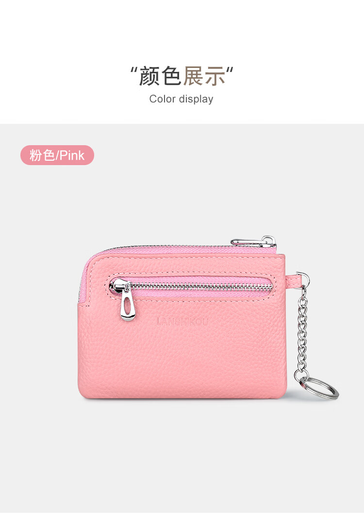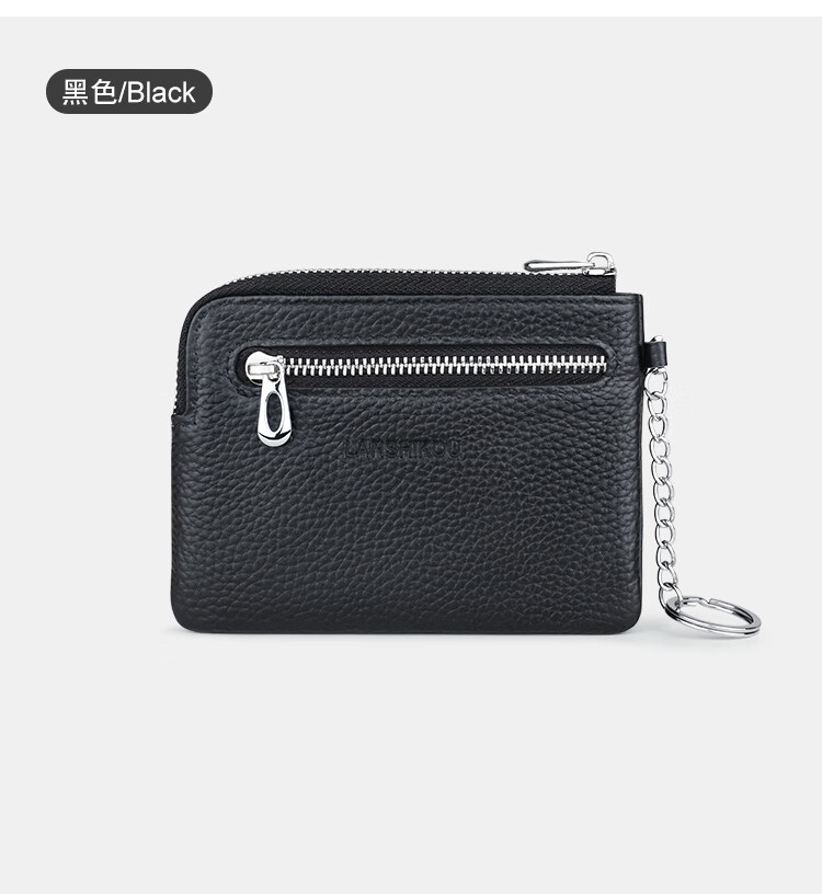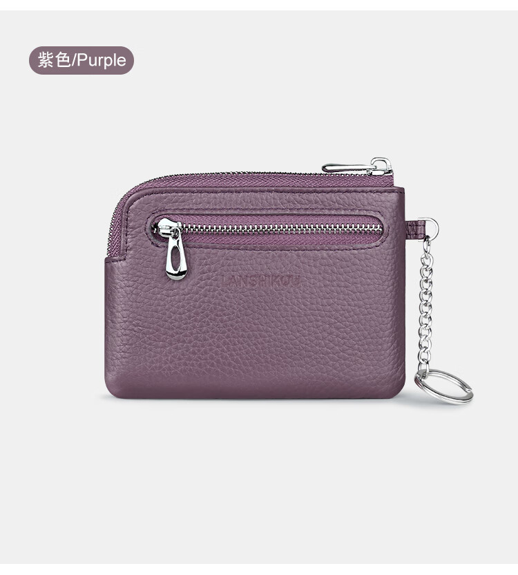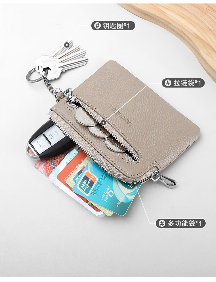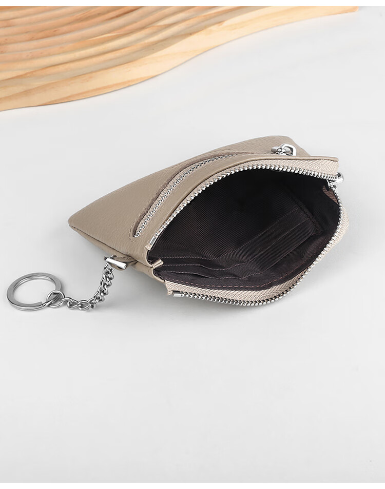 Lanshikou Coin Purse Genuine Leather Cute Compact Wallet Women's Key Bag Short Coin Bag Korean Style Wallet Mini Coin Bag Gray