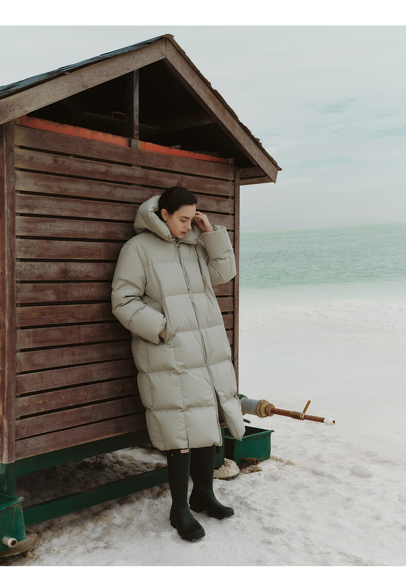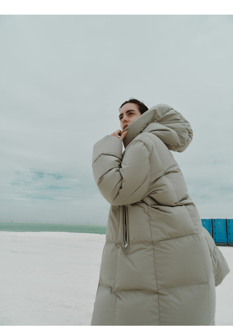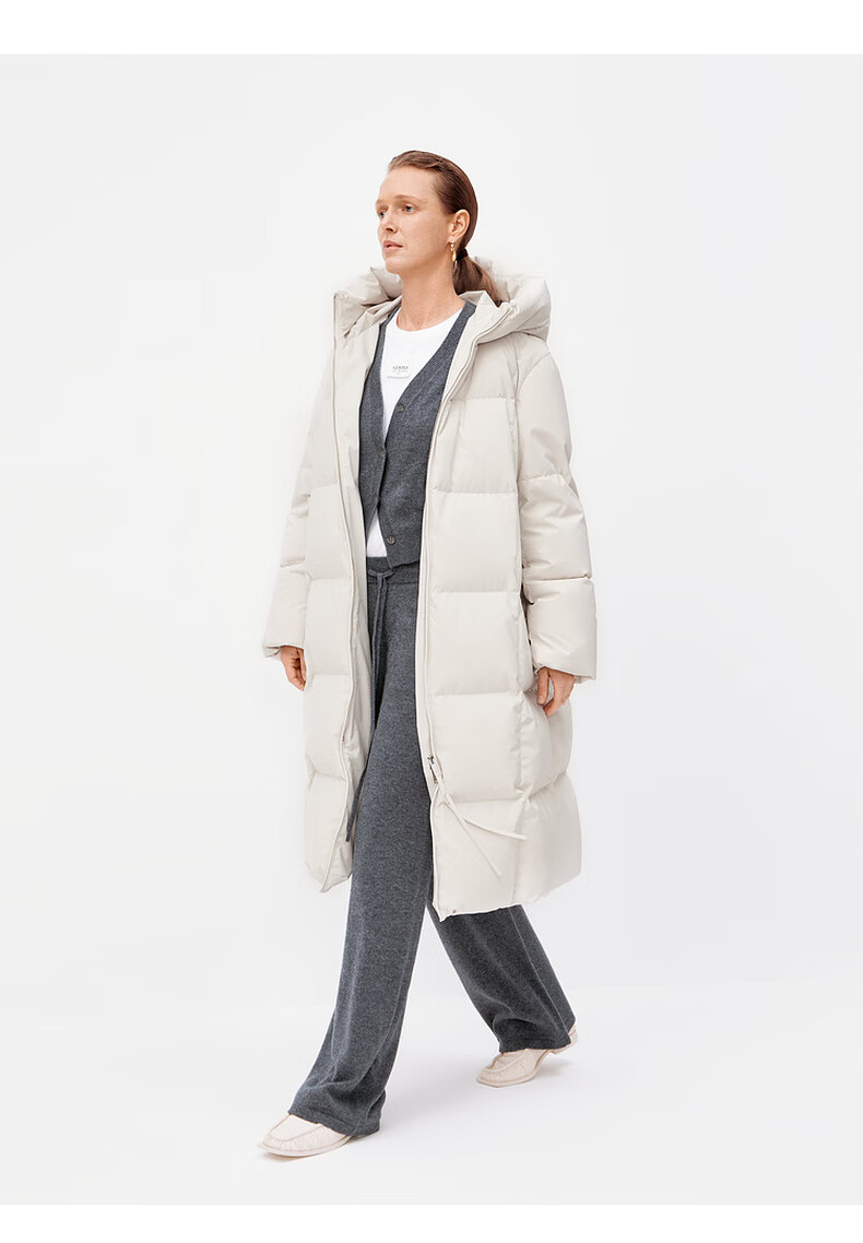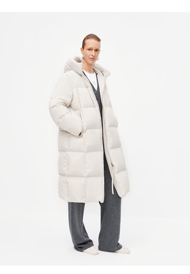 Edition down jacket for women autumn new long hooded white goose down silhouette puff down jacket off-white T01 S 160 The size is too large, it is recommended to order one size smaller