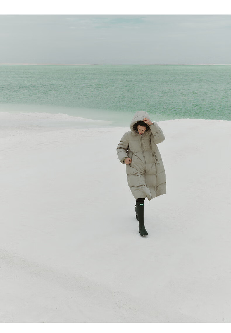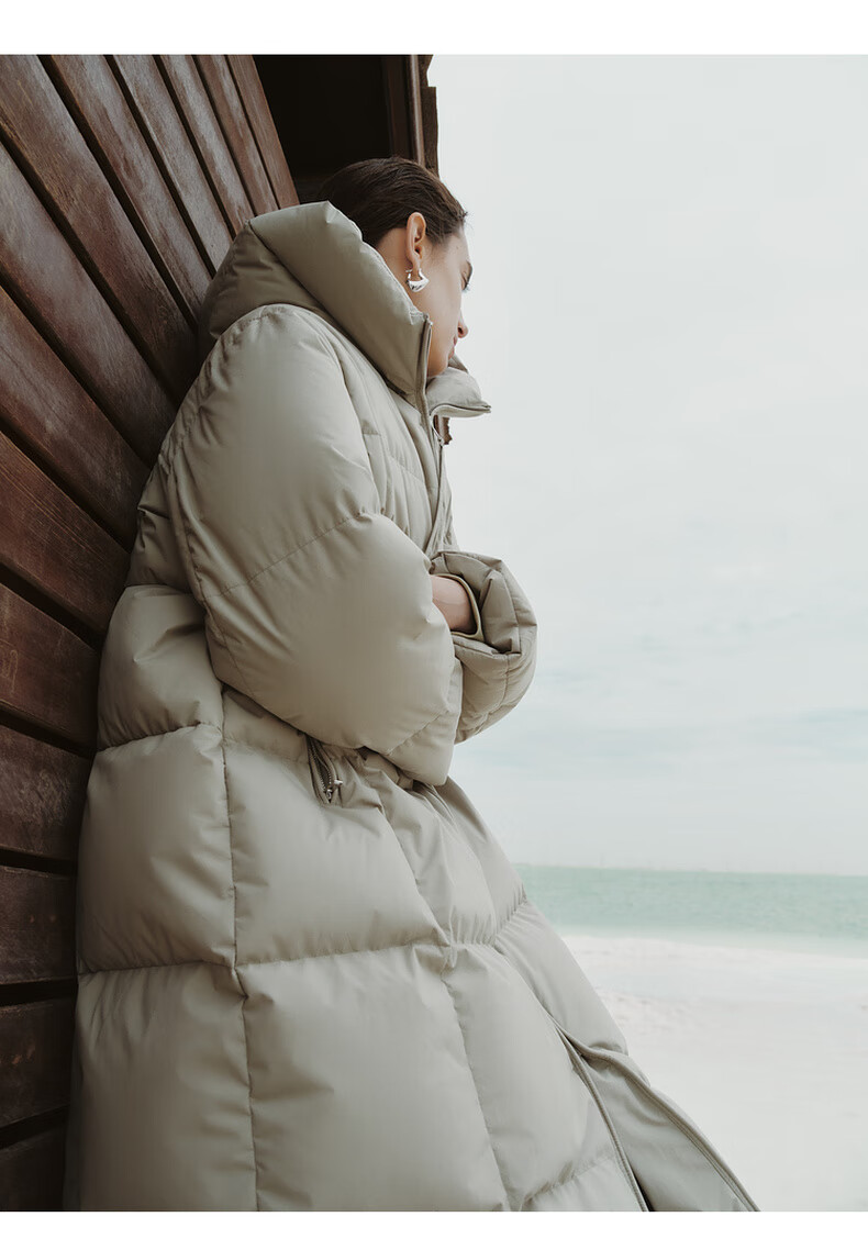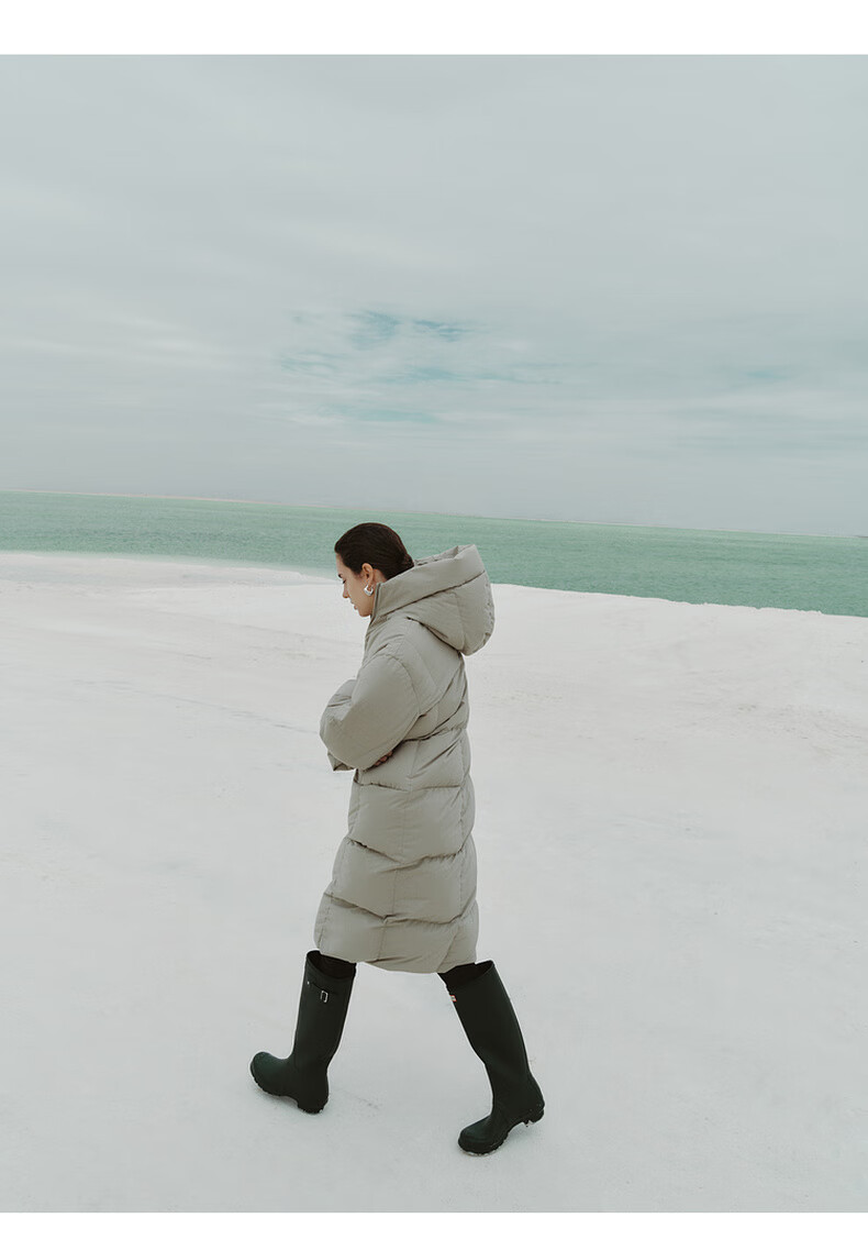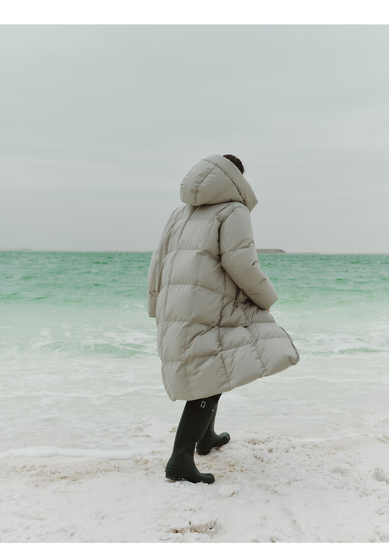 Edition down jacket for women autumn new long hooded white goose down silhouette puff down jacket off-white T01 S 160 The size is too large, it is recommended to order one size smaller