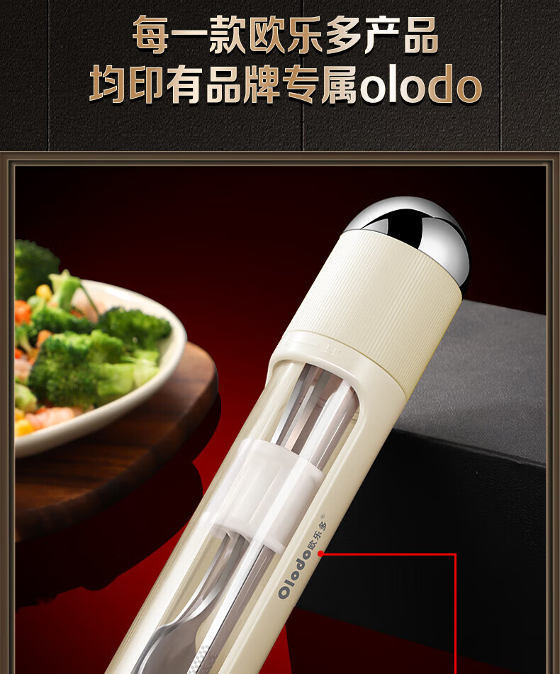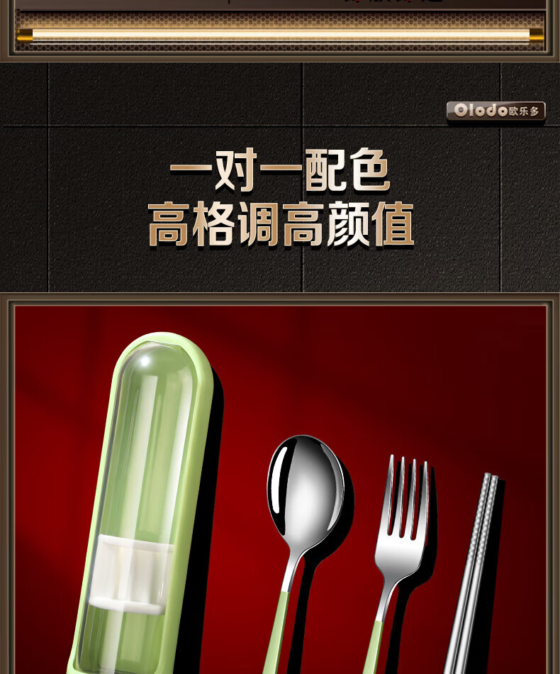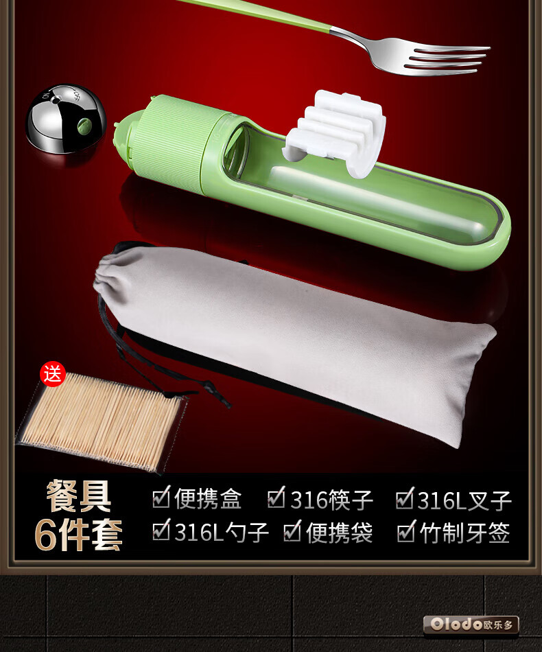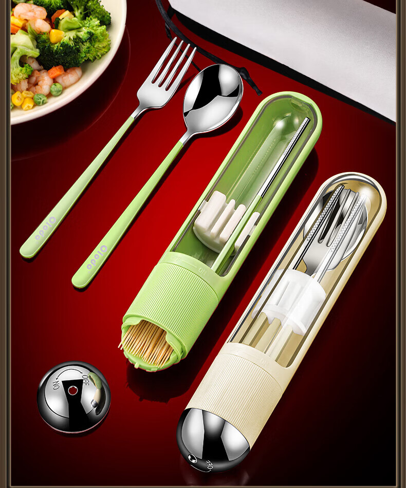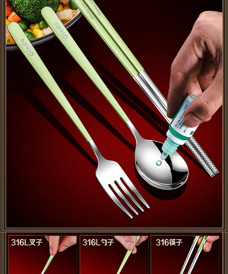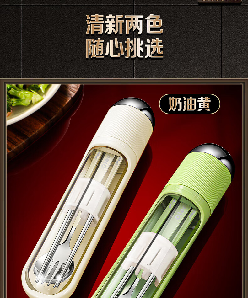 Olodo 316 stainless steel chopsticks and spoon set, portable tableware set for students and office workers, chopstick box, chopsticks and spoon three-piece set, cream yellow + yellow 316 spoon, fork, chopsticks + storage bag