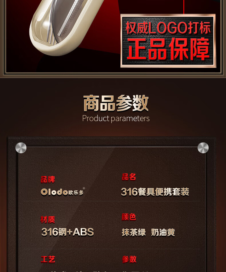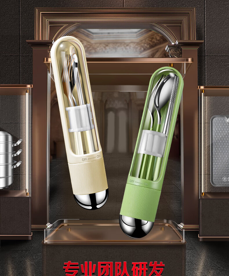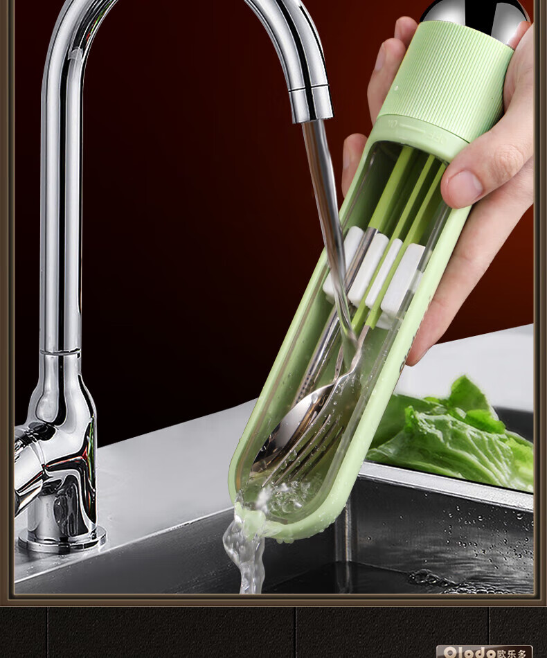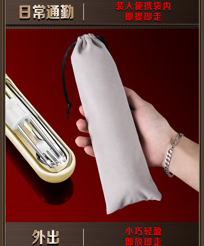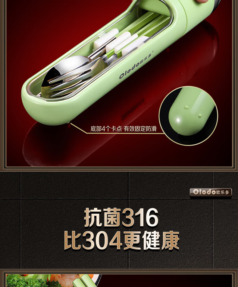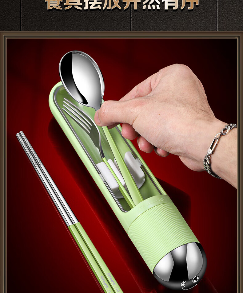 Olodo 316 stainless steel chopsticks and spoon set, portable tableware set for students and office workers, chopstick box, chopsticks and spoon three-piece set, cream yellow + yellow 316 spoon, fork, chopsticks + storage bag