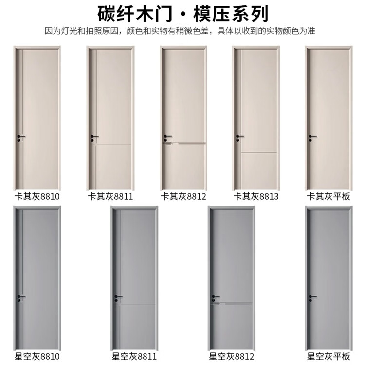 New bedroom door environmentally friendly carbon fiber technology wooden door interior door solid wood composite paint-free door light luxury simple door sound insulation set door customization molded model TQ-110 khaki gray/starry sky gray top set door (solid wood board filling + upgraded thickening one-piece set)