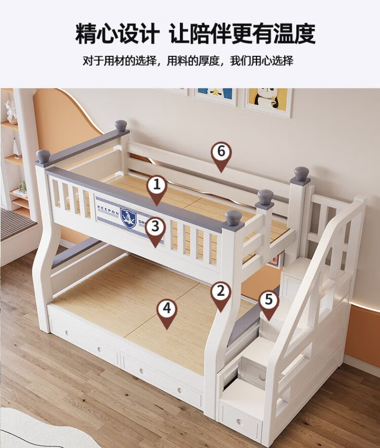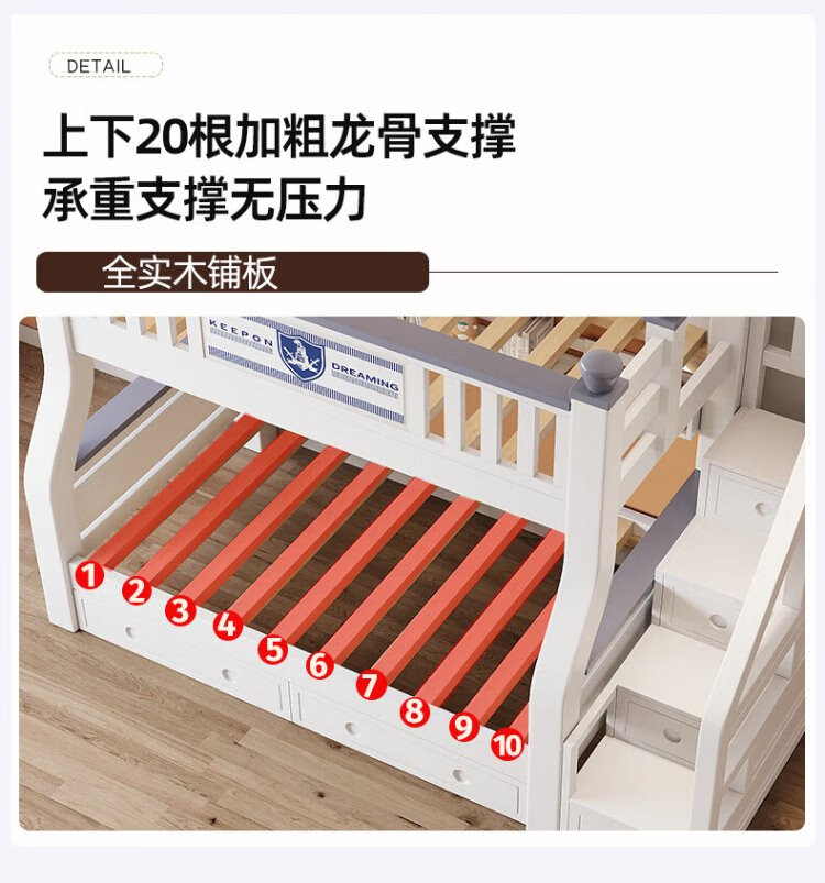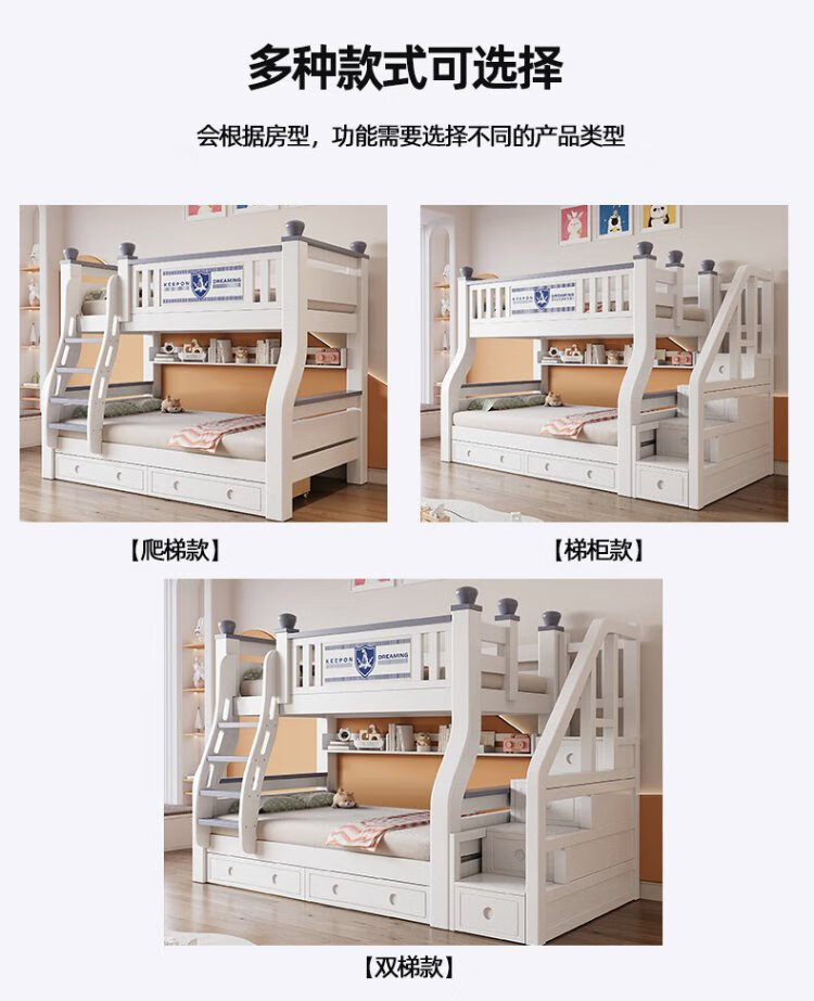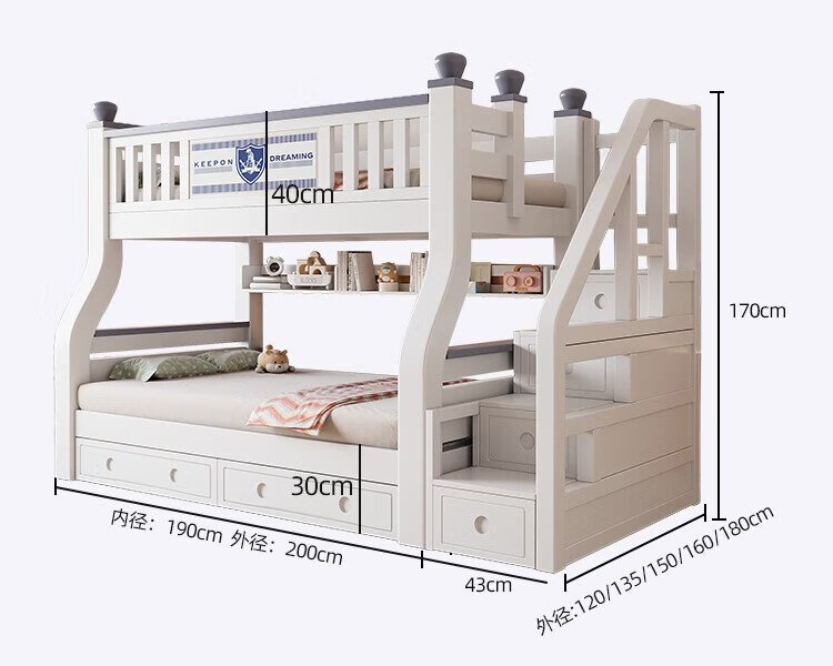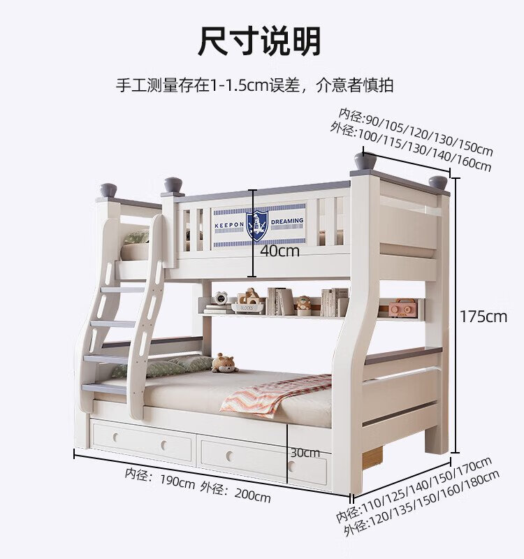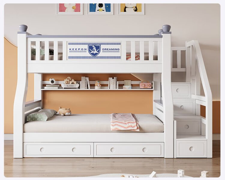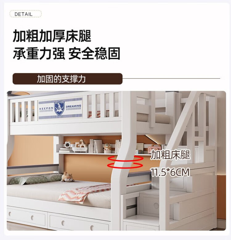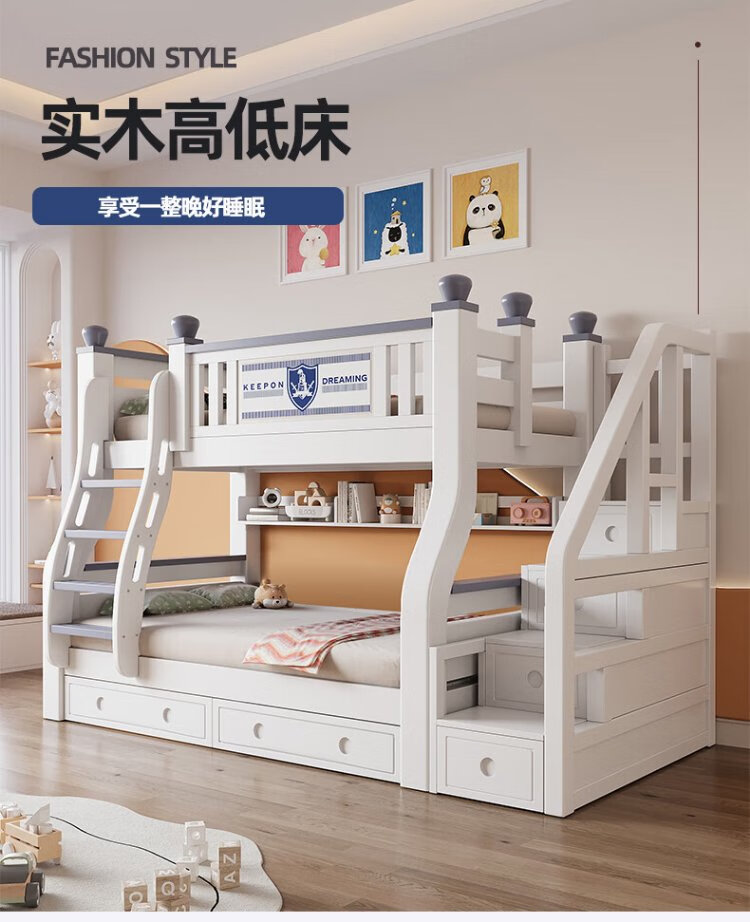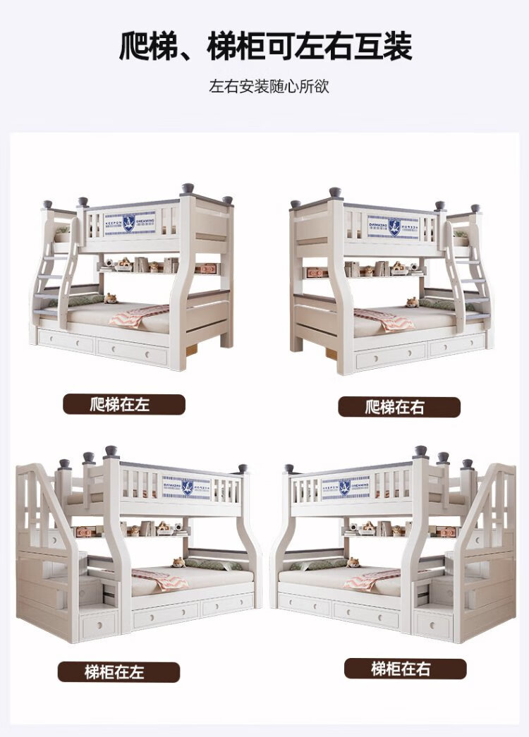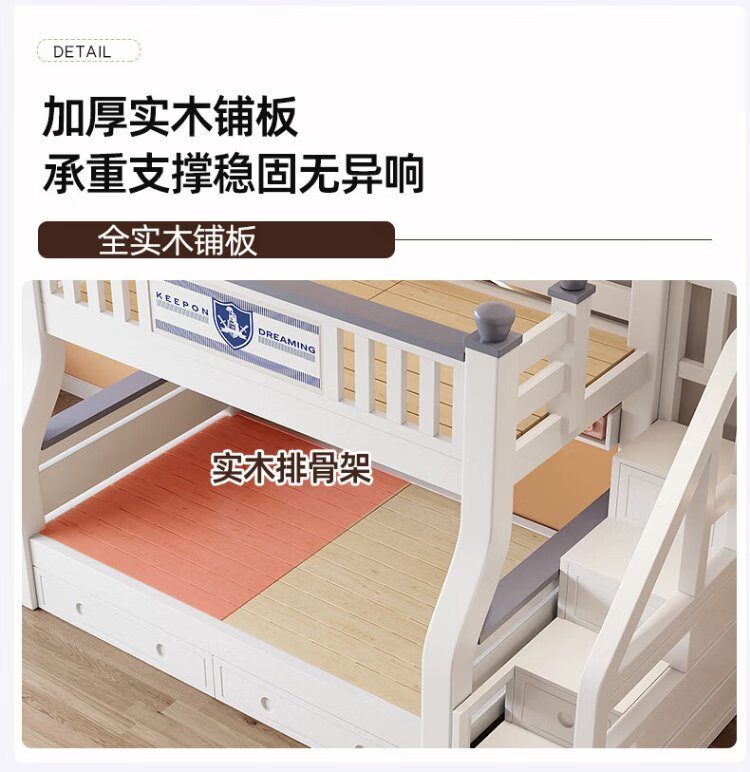 Tuoji full solid wood bunk bed, multifunctional bed, double bunk bed, children's two-story bunk bed, household adult bunk bed, ladder type + bookshelf + drawer + mattress * 2, mattress top 120 bottom 140 * length 190 | bed 130 bottom 150