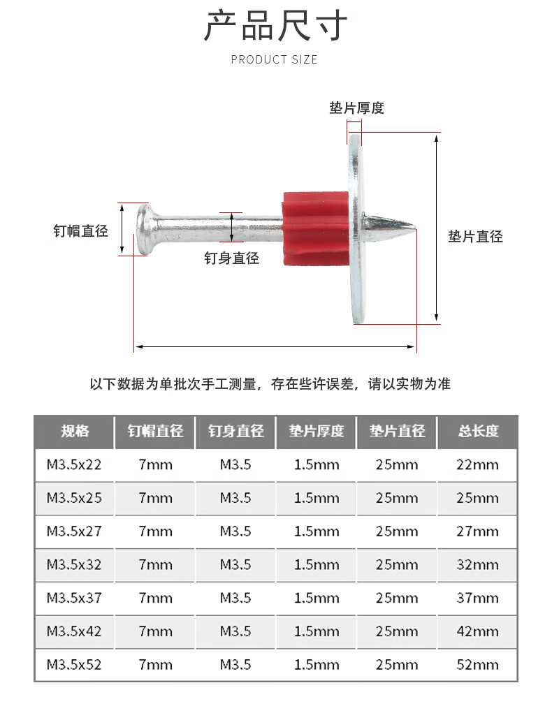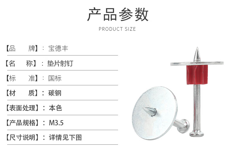 Baodefeng high-strength gasket nail steel nail cement nail ceiling barbed wire concrete gasket nail wall nail fixing artifact M3.5x22 (100 pieces)