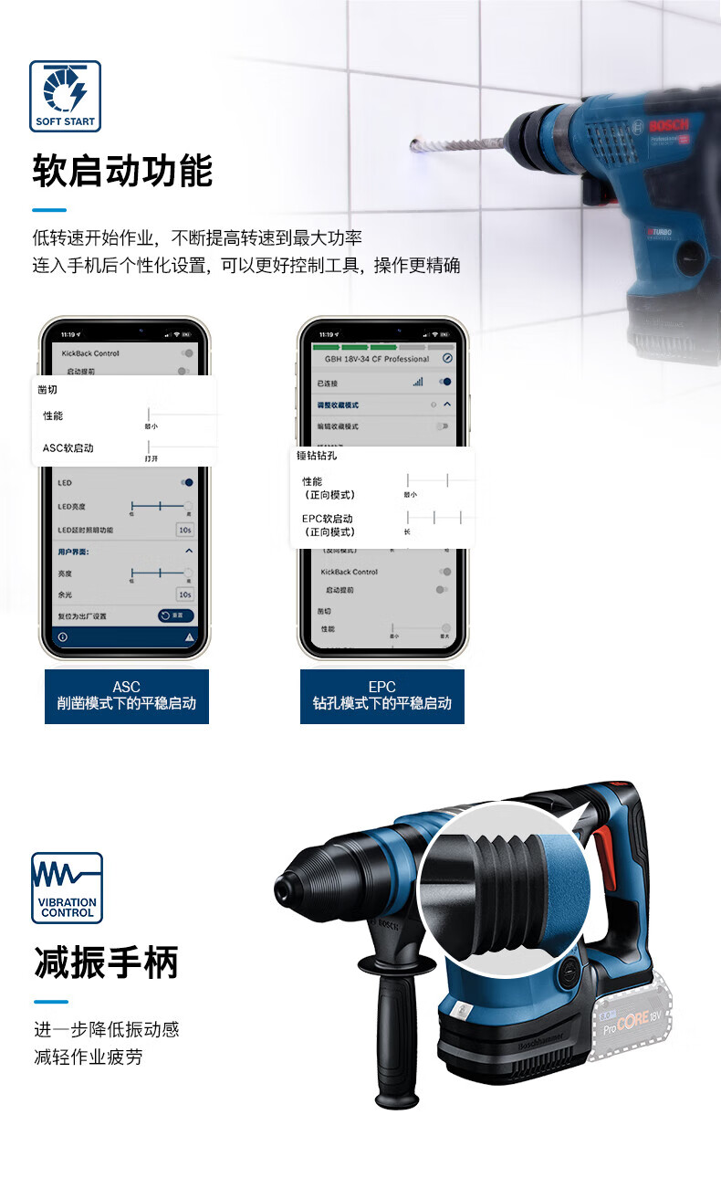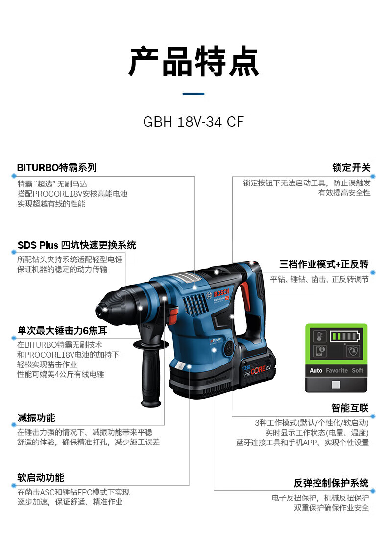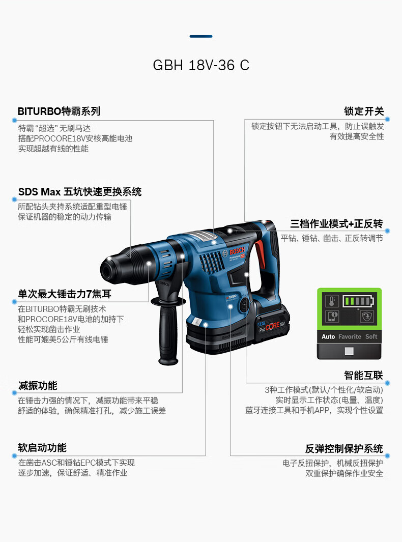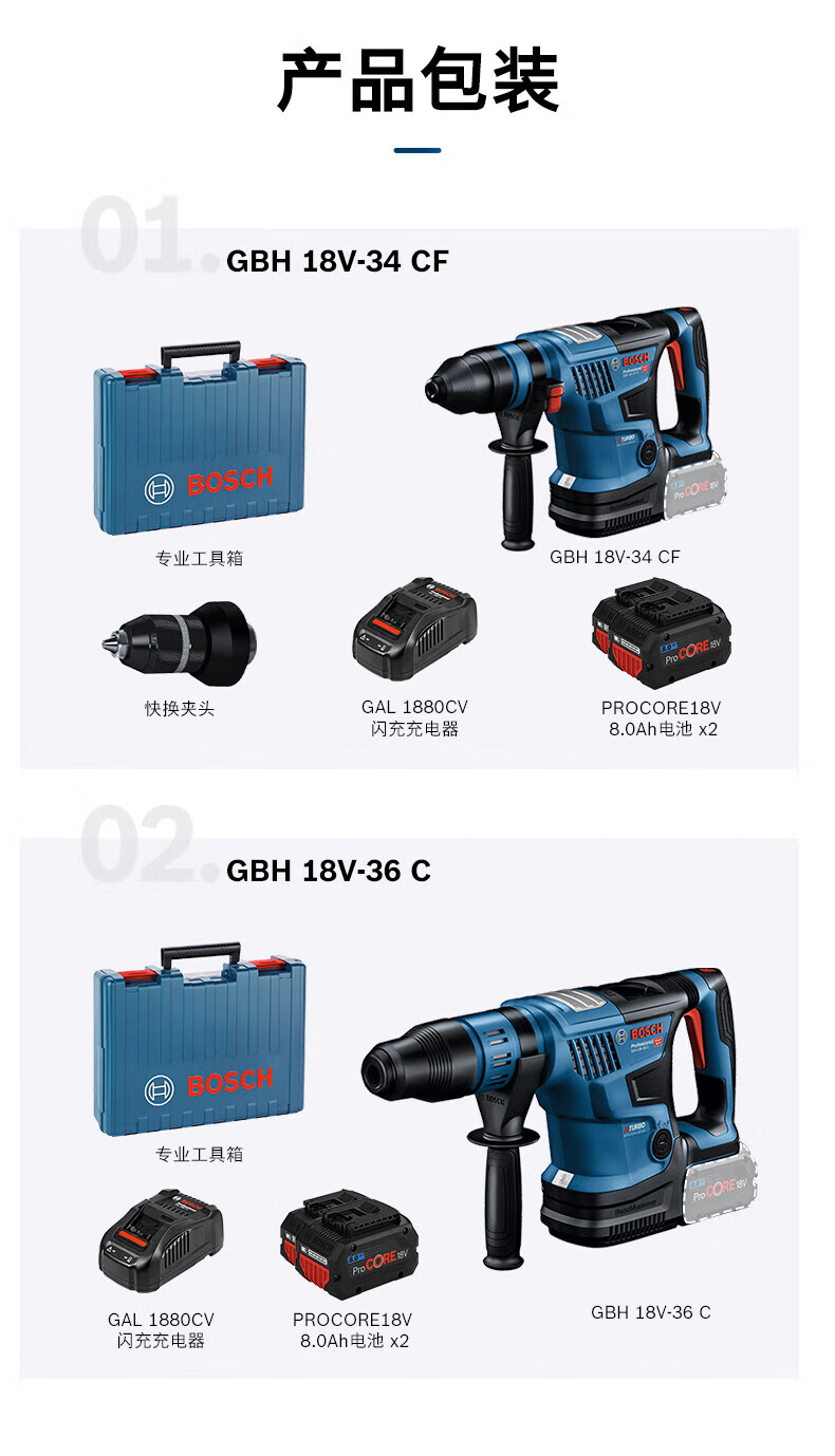 Bosch (BOSCH) GBH18V-36 heavy-duty lithium-ion brushless hammer drill battery charger electric hammer set special series impact drill GBH18V-36C without battery charger