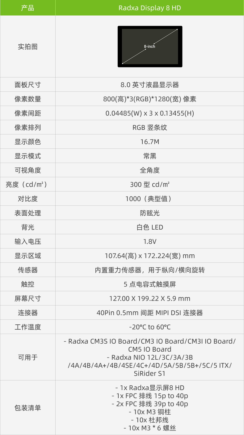 RADXA Renesas 8-inch HD touch screen MIPI 800*1280 Renesas multiple SBC adaptation, one-line plug and play 8-inch screen HD 800*1280, gravity sensing