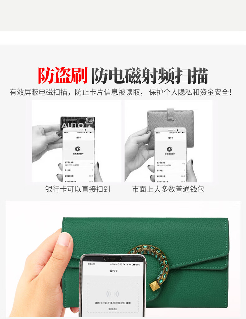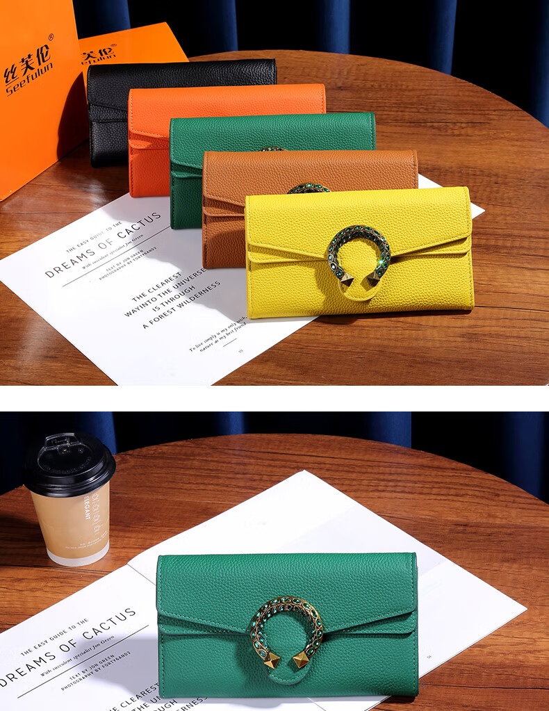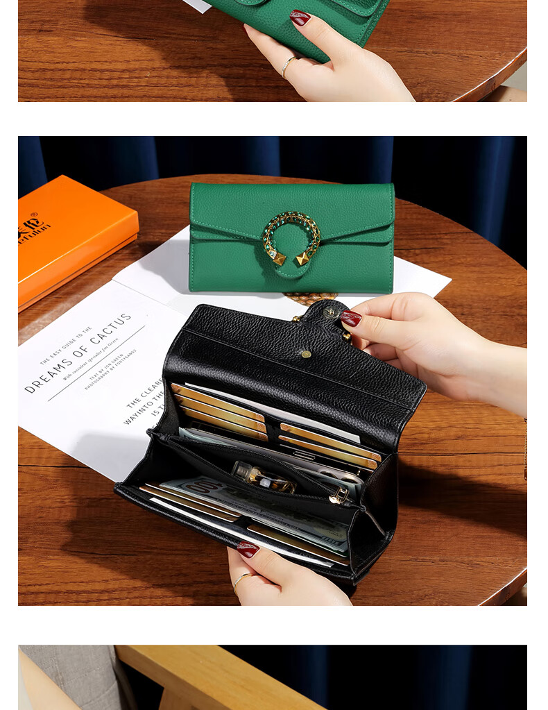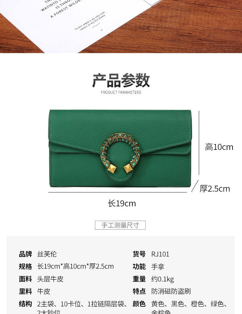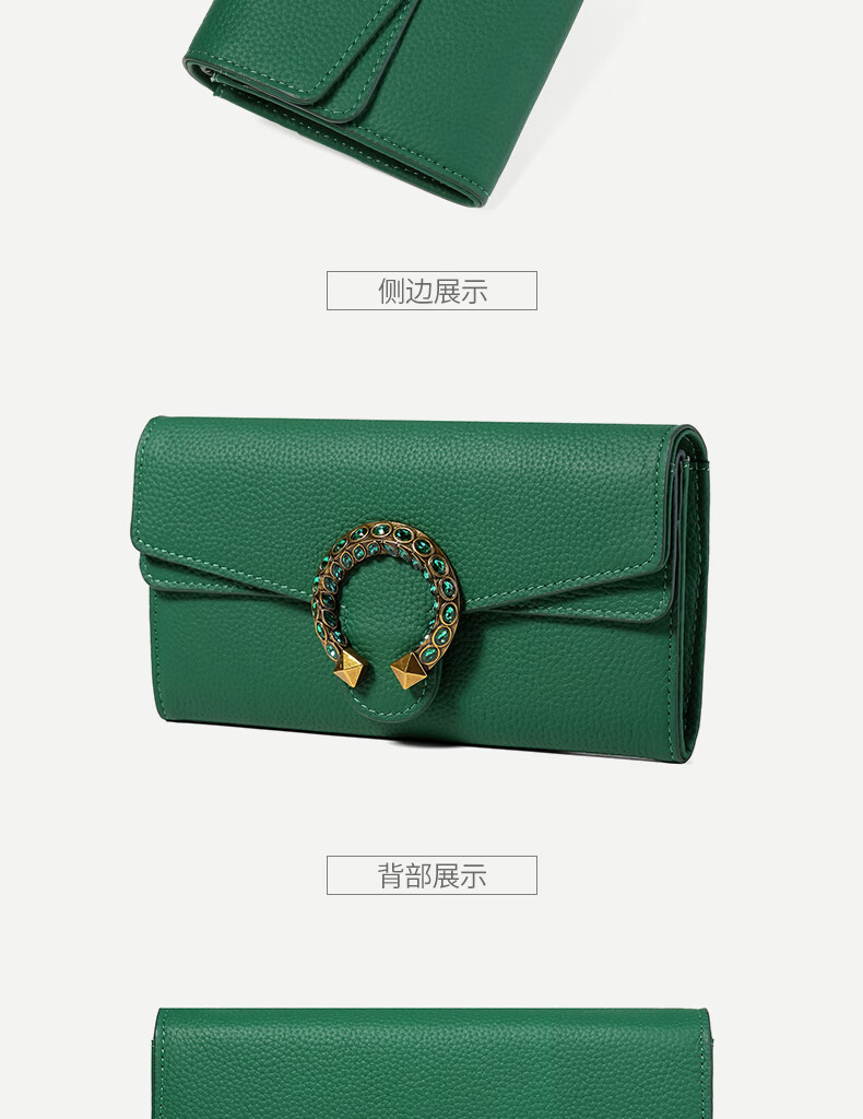 Sephoron high-end diamond-encrusted fashionable long hand wallet with feminine temperament 2026 new first-layer cowhide large-capacity wallet handbag green-first-layer cowhide high-end gift box packaging