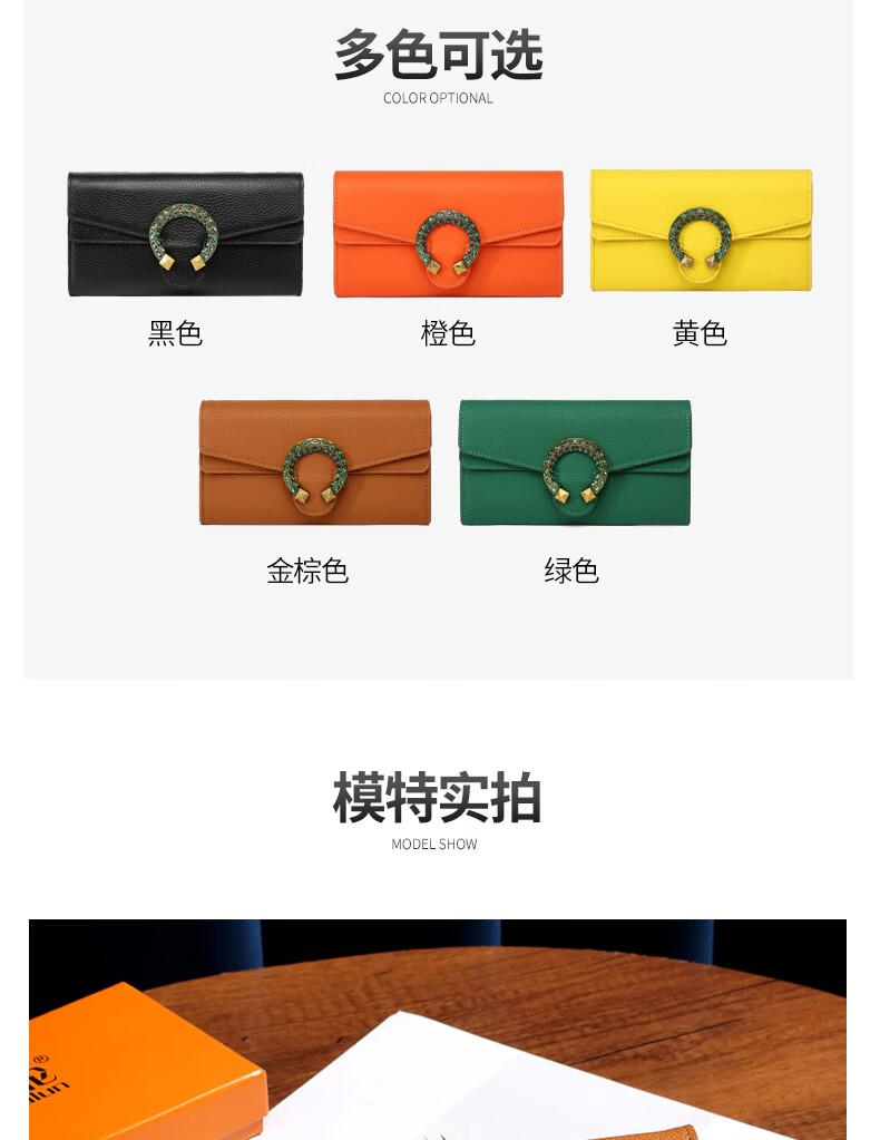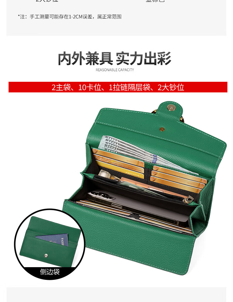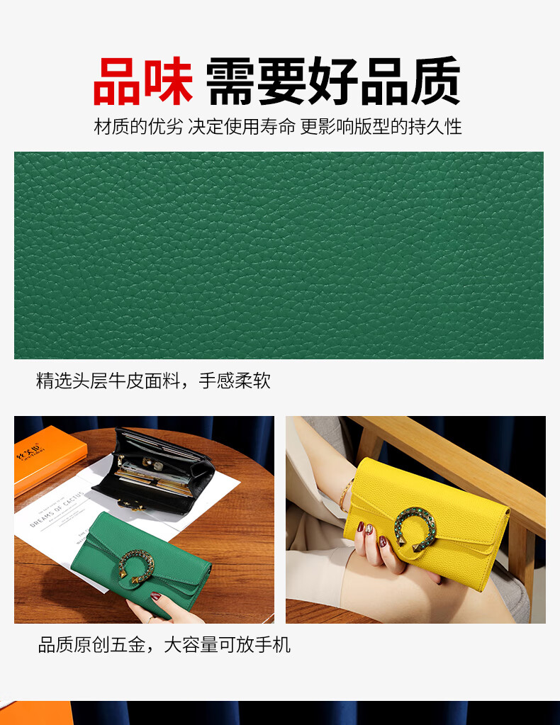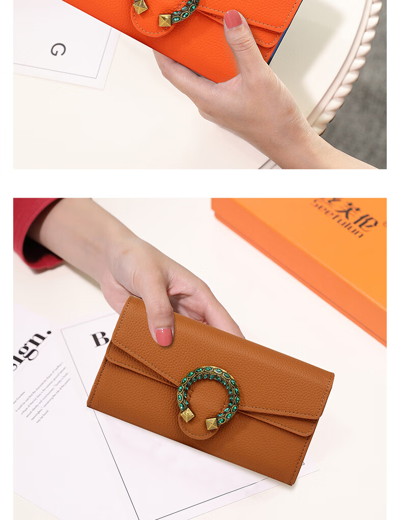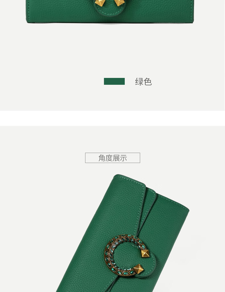 Sephoron high-end diamond-encrusted fashionable long hand wallet with feminine temperament 2026 new first-layer cowhide large-capacity wallet handbag green-first-layer cowhide high-end gift box packaging