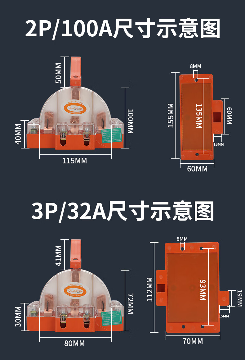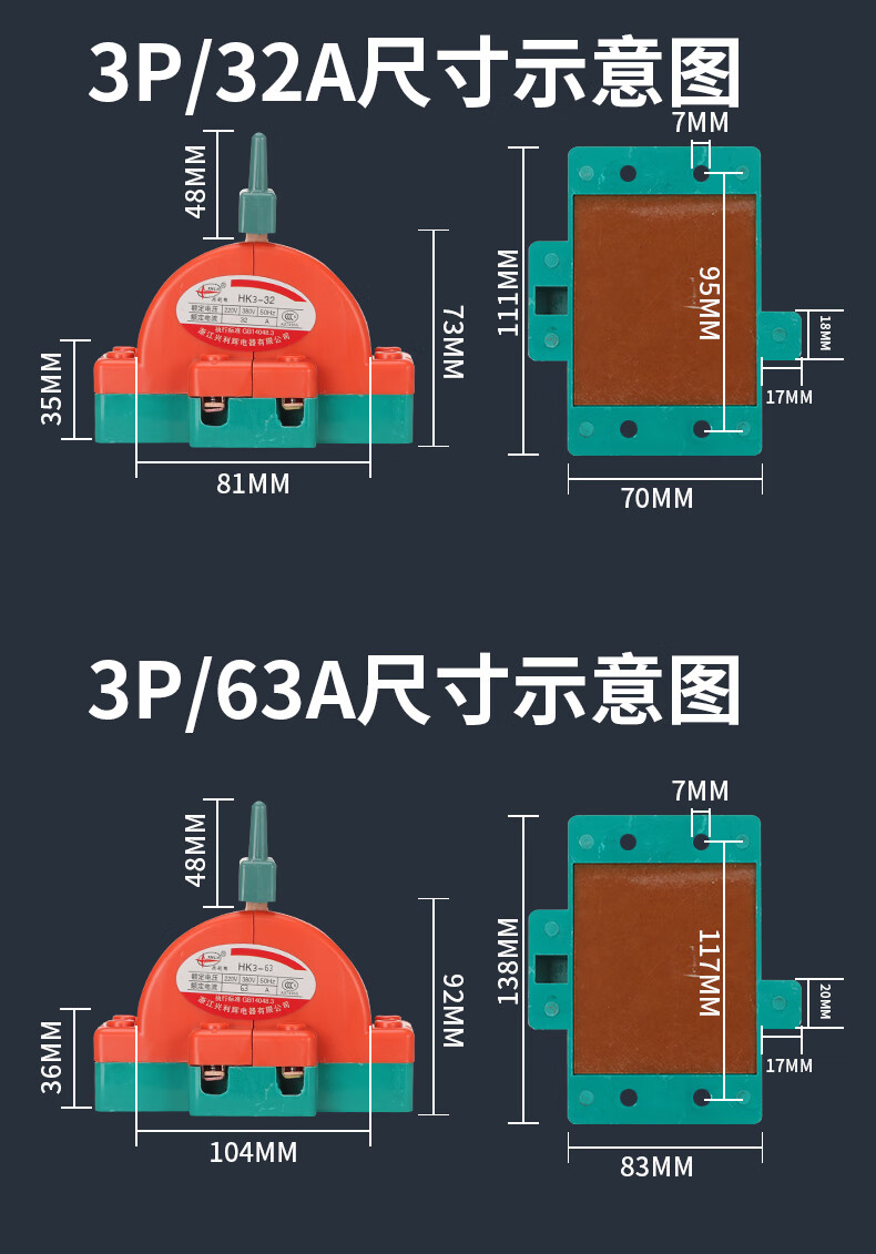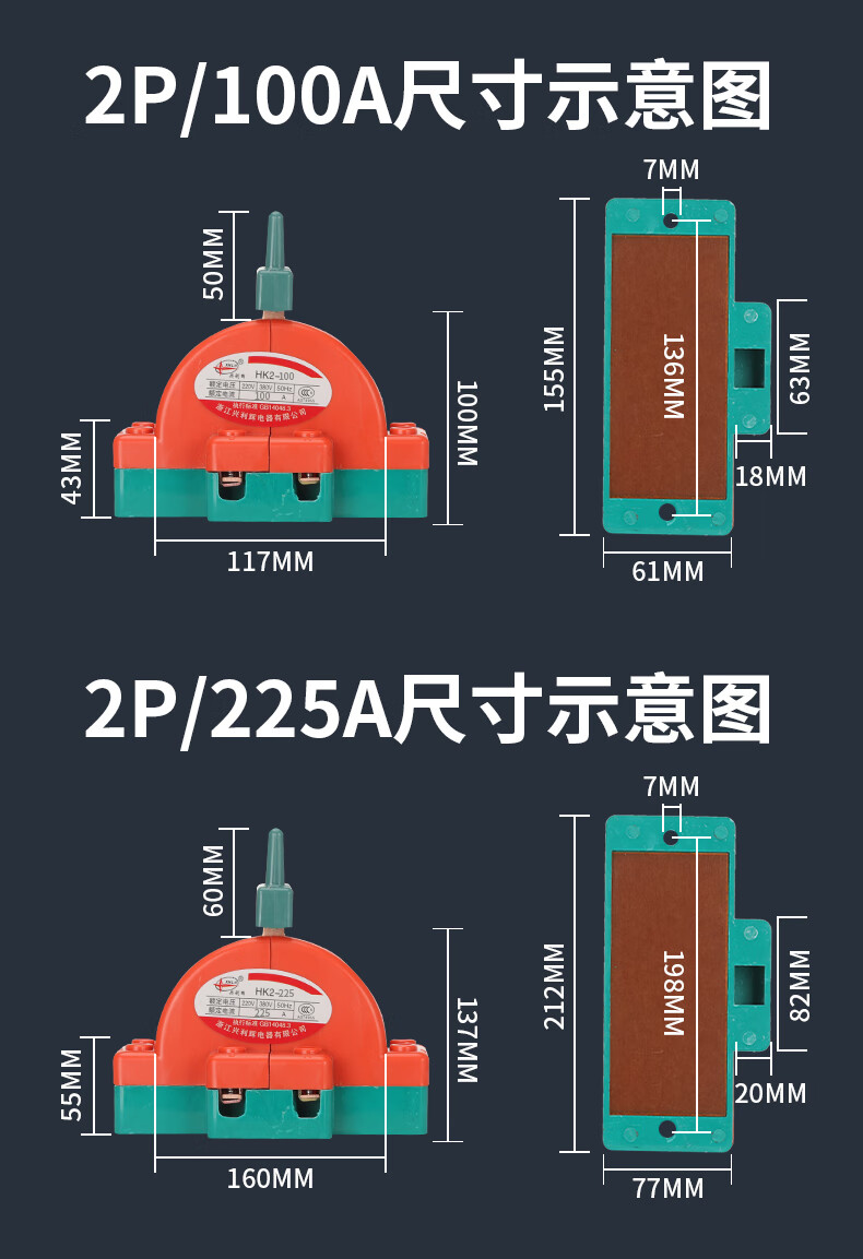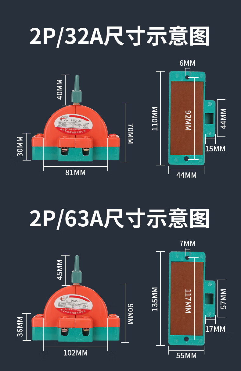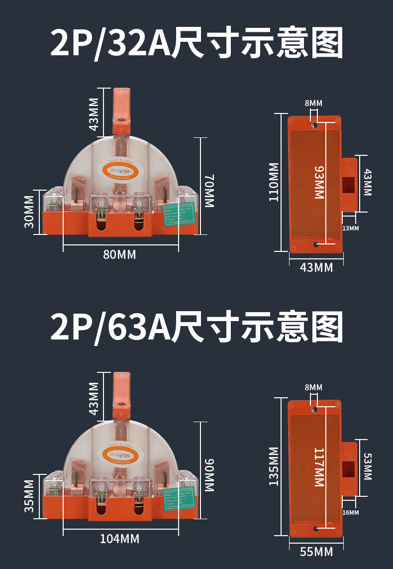 Two-way knife switch, dual power switch, double-throw reverse knife gate, two-phase double-head gate and head gate, two-way knife 2P*63A