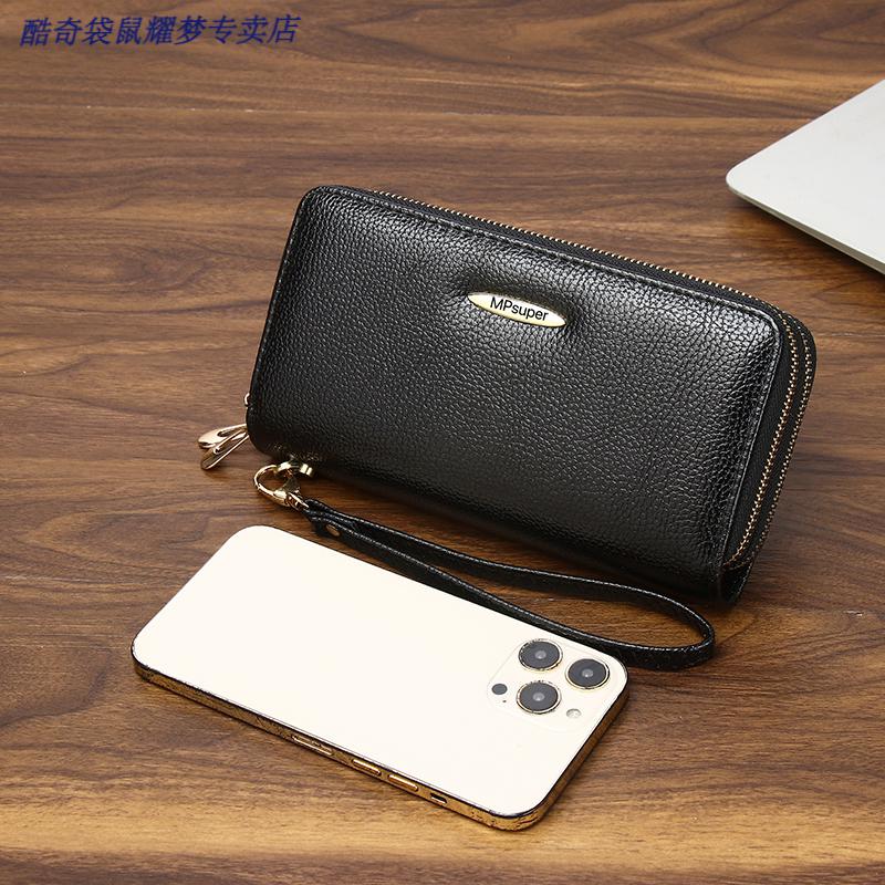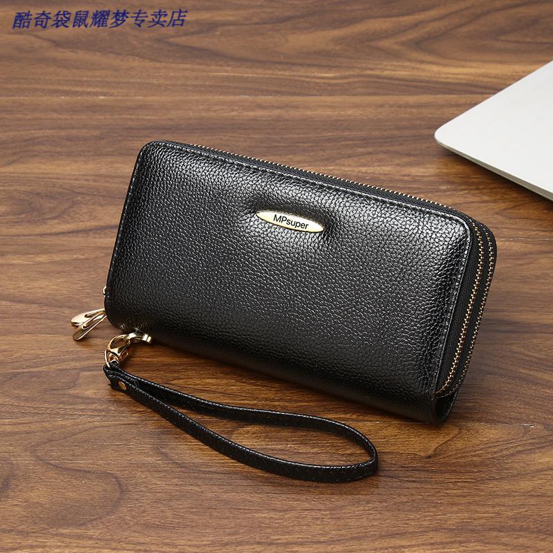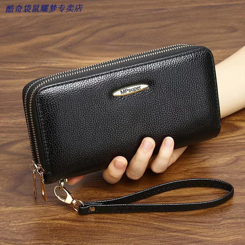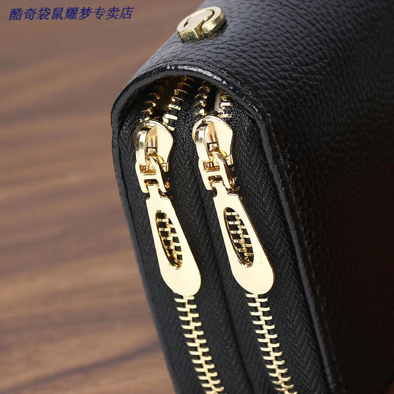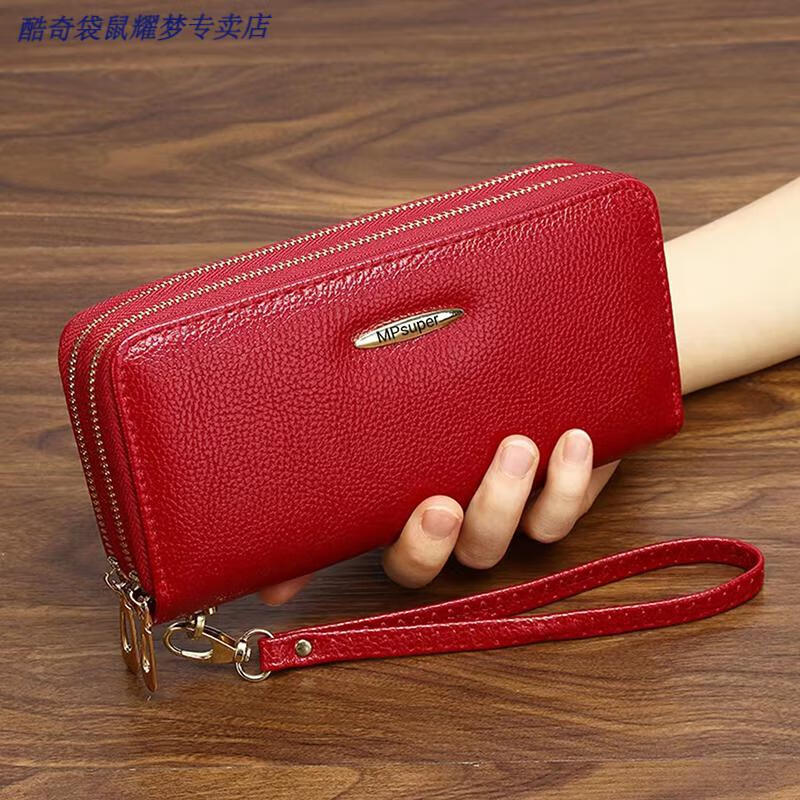 Kuqi Kangaroo Double Zipper Wallet 2025 Chinese Valentine's Day Clutch Women's Long Zipper Wallet Large Capacity Korean Card Holder Coin Purse 0015#Zoran Red With Wrist + Concealed Compartment + Card Slot