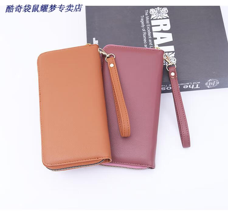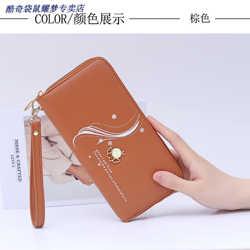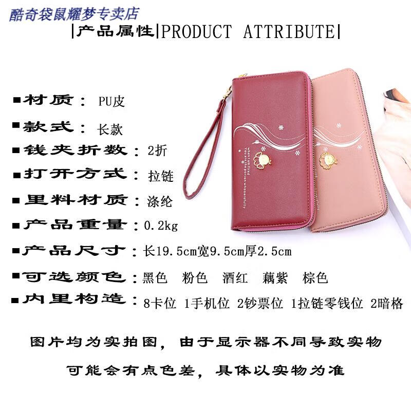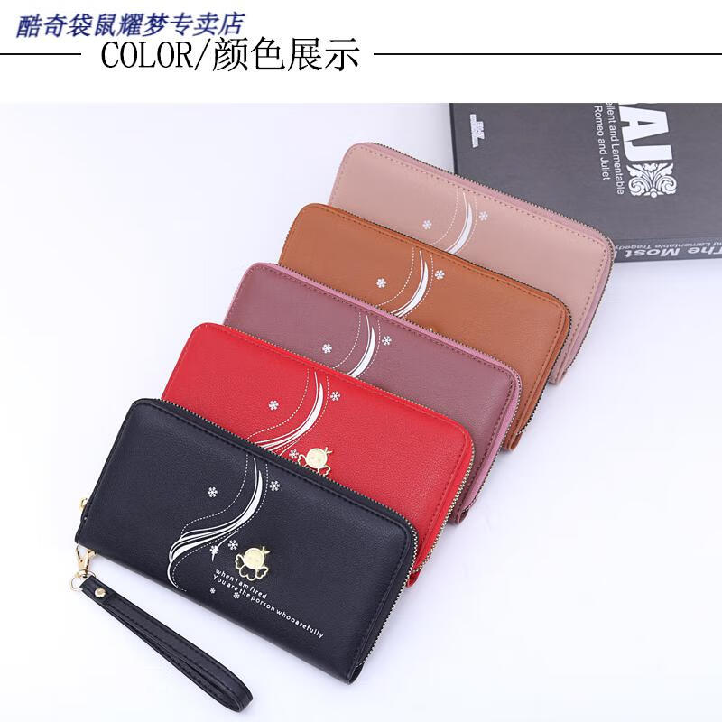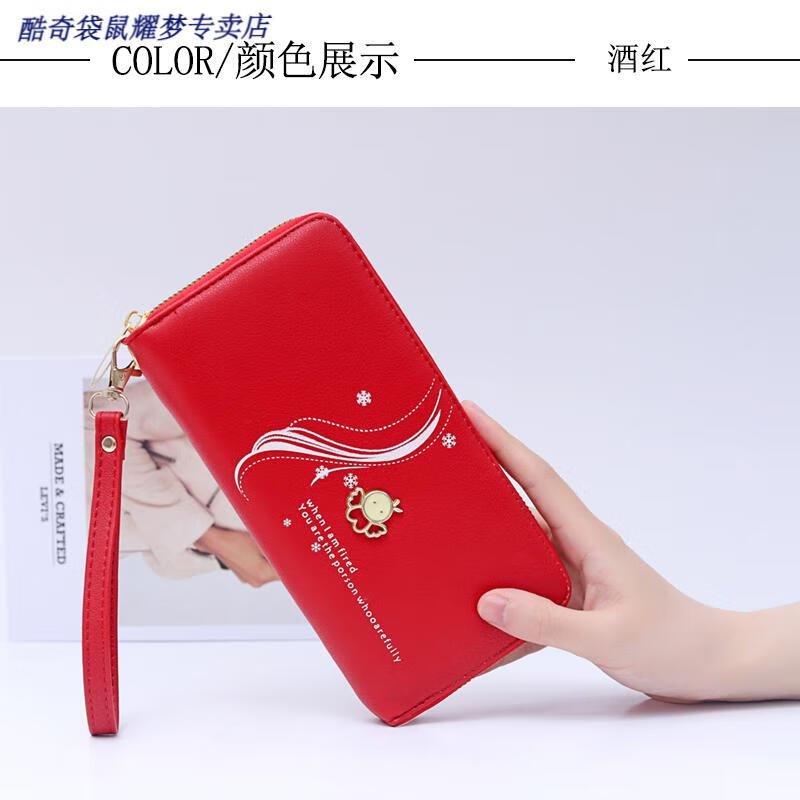 Kuqi Kangaroo Qixi Wallet Women's Long Simple Fashion Zipper Bag Can Hold Mobile Phone Clutch Bag Mom Bag Large Capacity Wallet Burgundy Liuhua Wallet