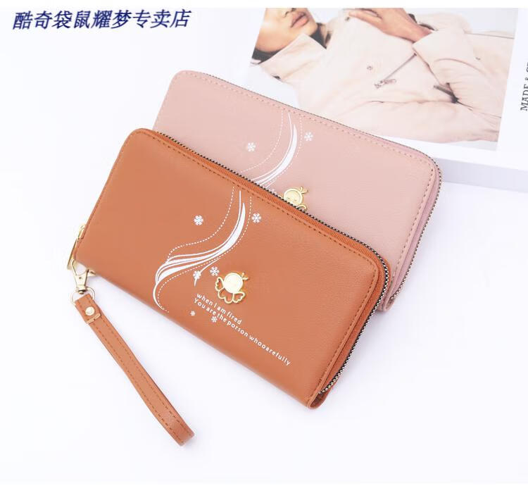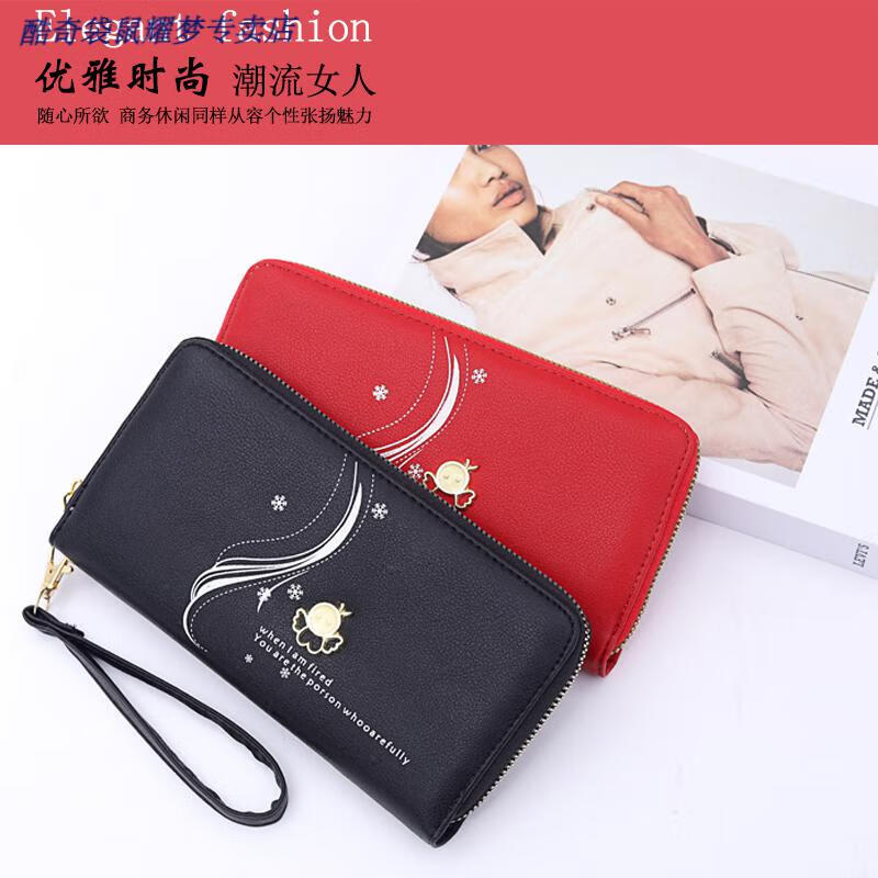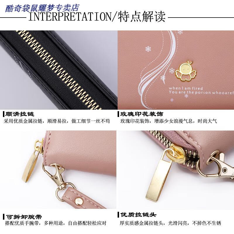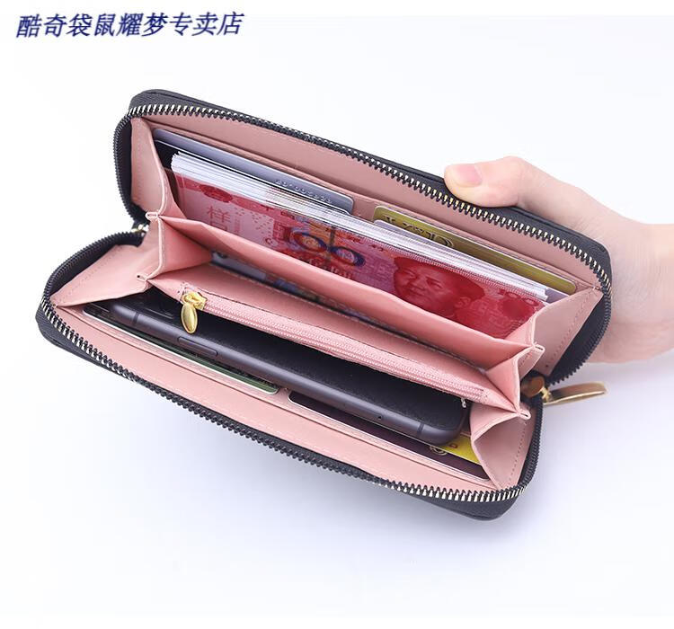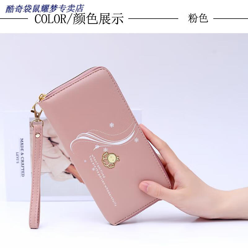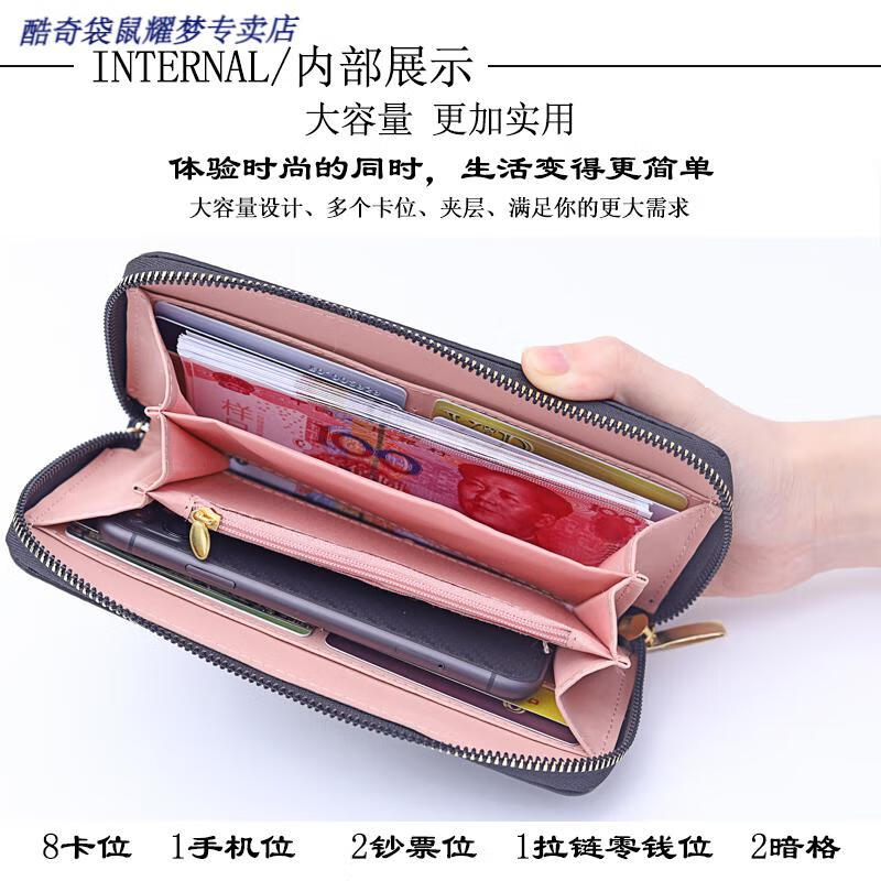 Kuqi Kangaroo Qixi Wallet Women's Long Simple Fashion Zipper Bag Can Hold Mobile Phone Clutch Bag Mom Bag Large Capacity Wallet Burgundy Liuhua Wallet